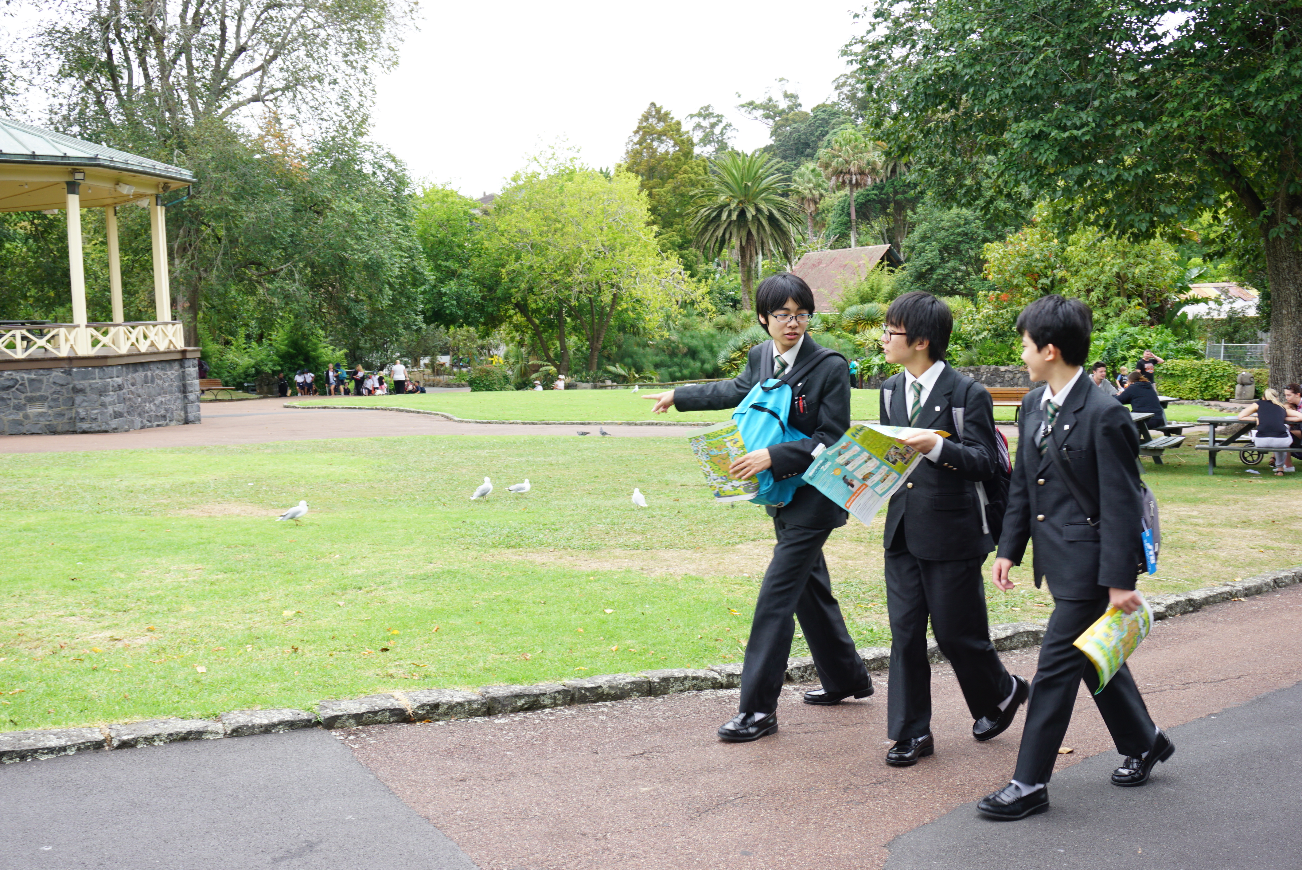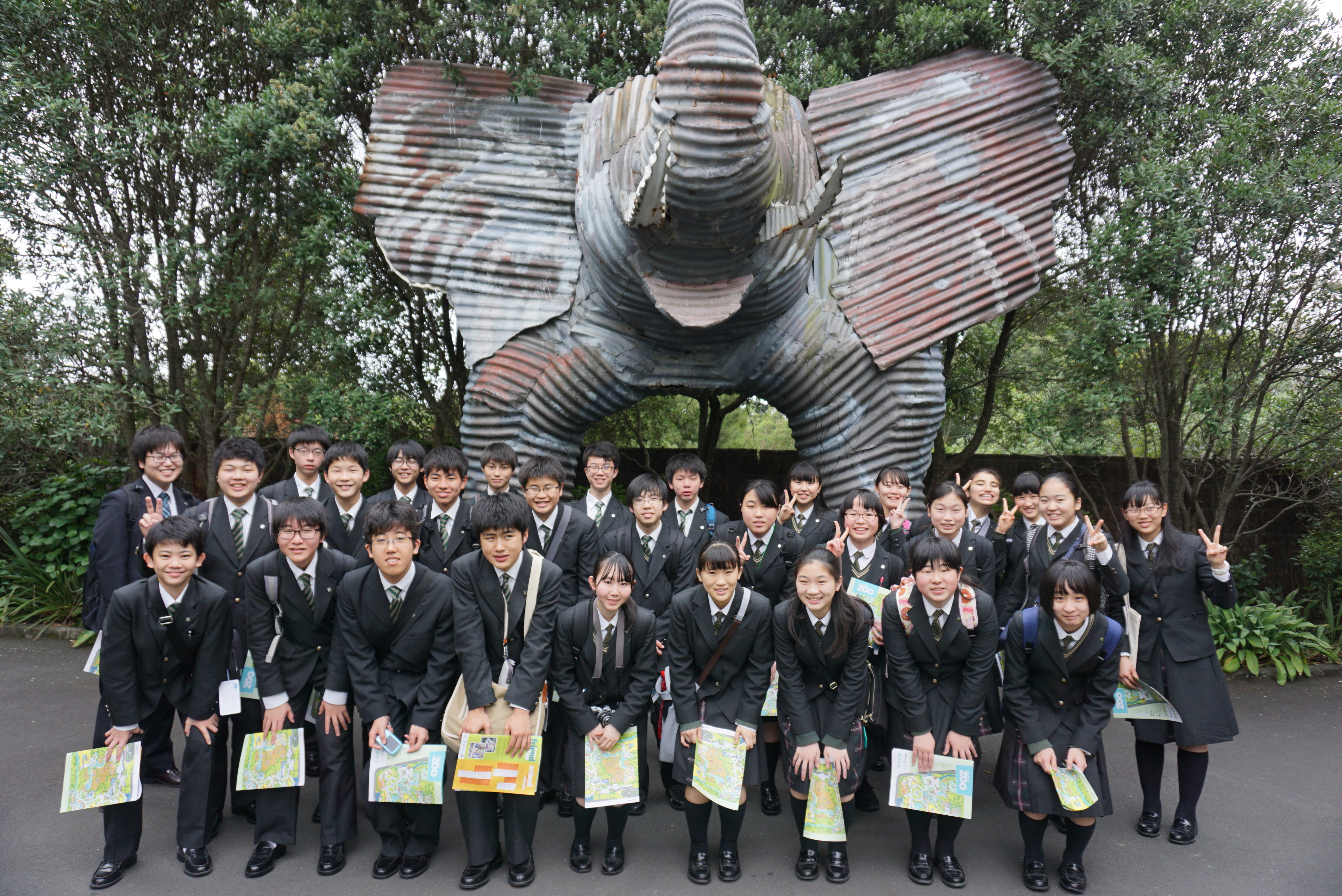 6日朝にニュージーランドのオークランドに無事到着しました。入国審査、税関を通り終えた生徒の中にはホッと胸をなでおろしている生徒もいました。午後から雨の予報が出ていたために予定を変更して、晴れているうちに空港からすぐにバスでオークランド動物園を見学し、幸運なことに多くの者がニュージーランドの国鳥であるキウィを見ることができました。昼食はスカイタワーの中にあるレストランでバイキングでした。おかわりを何回もする生徒が多かったです。食事の後はオークランドを一望できるスカイタワーの展望台に上り、その後、オークランド戦争記念博物館を見学しました。歴史、先住民族マオリ族、ニュージーランドの自然に関する展示が数多くありました。 夕食は港近くのレストランで中華料理を食べました。本日はホテルに宿泊します。明日からはいよいよファームステイが始まります。