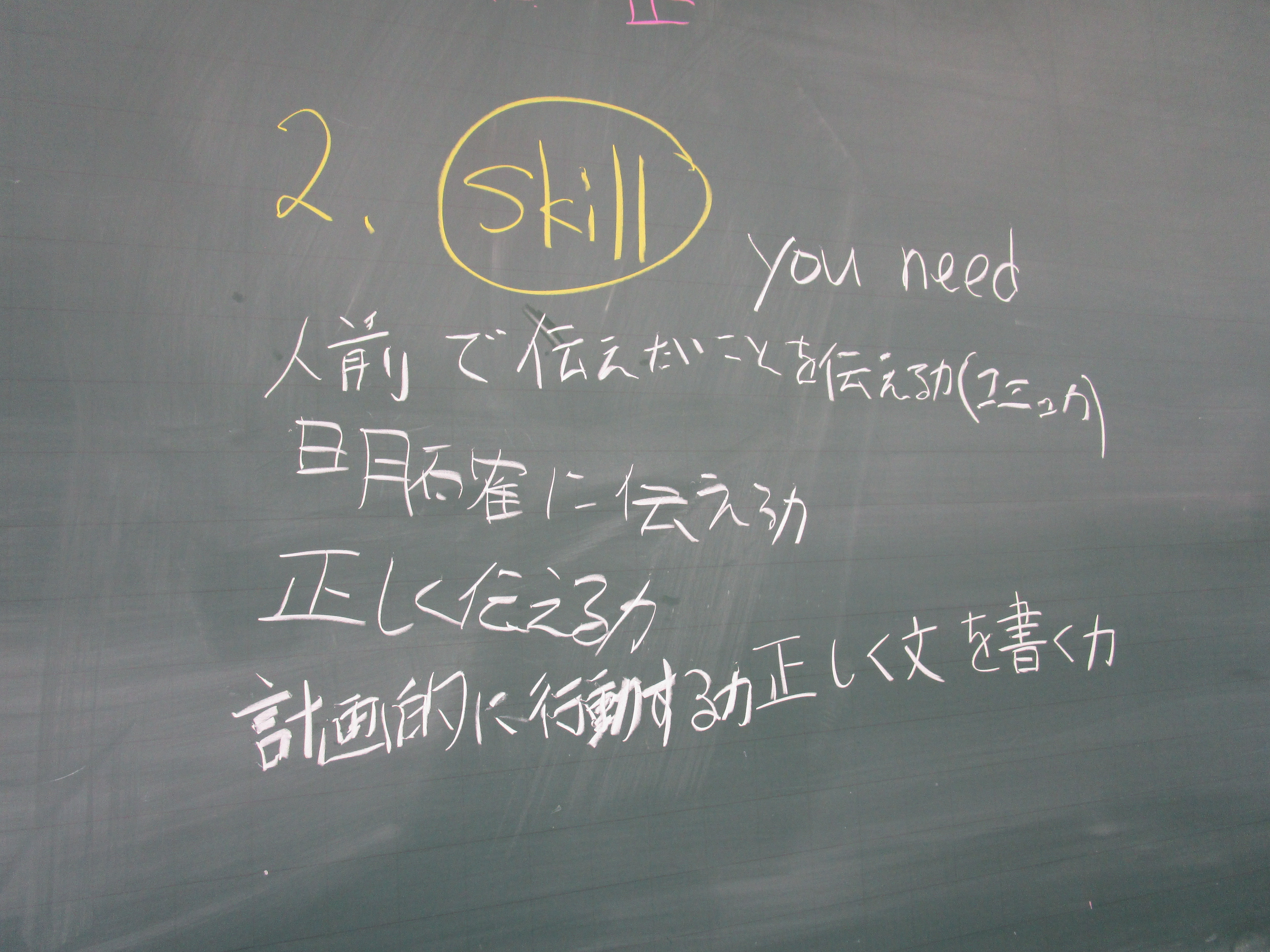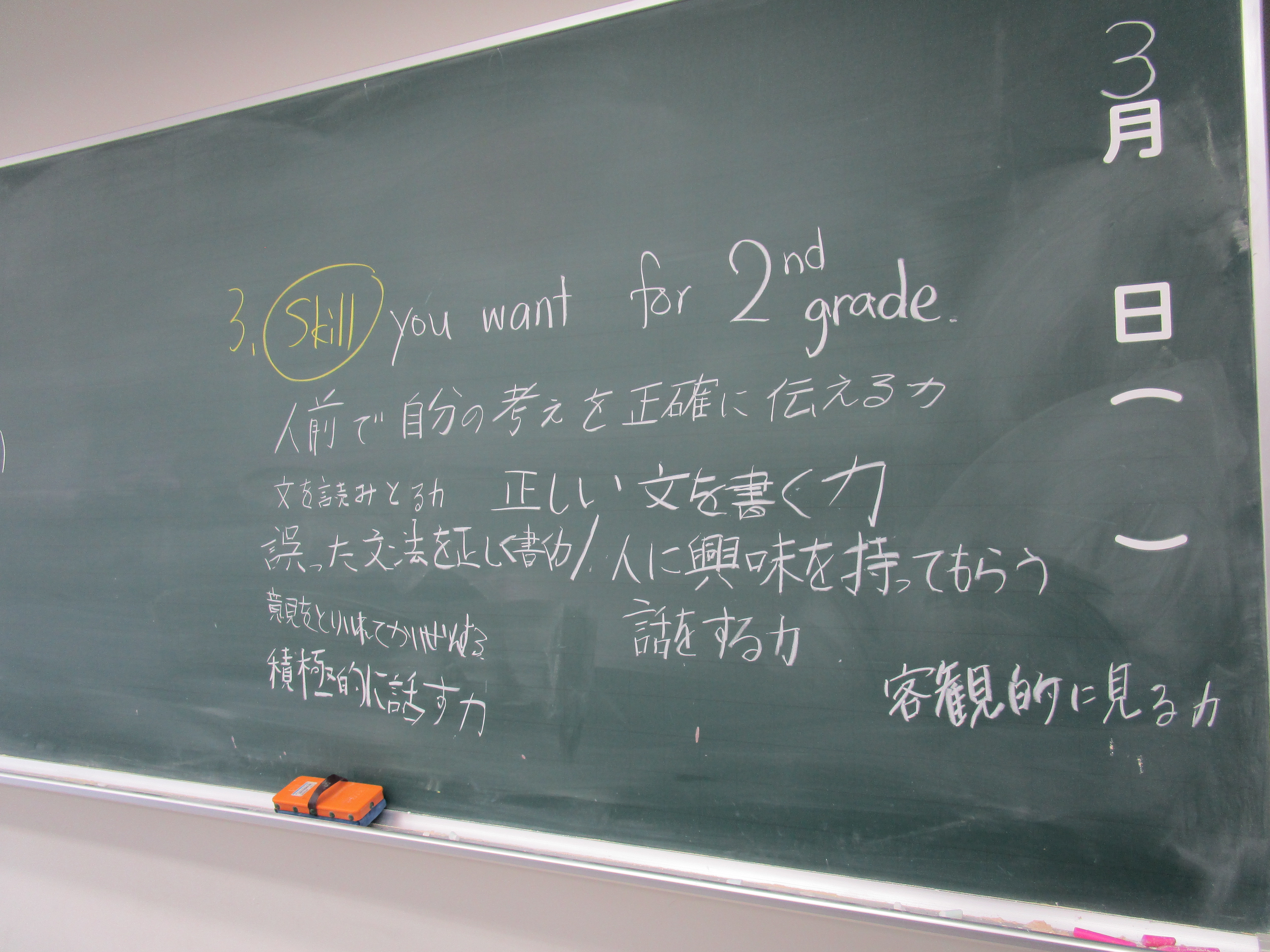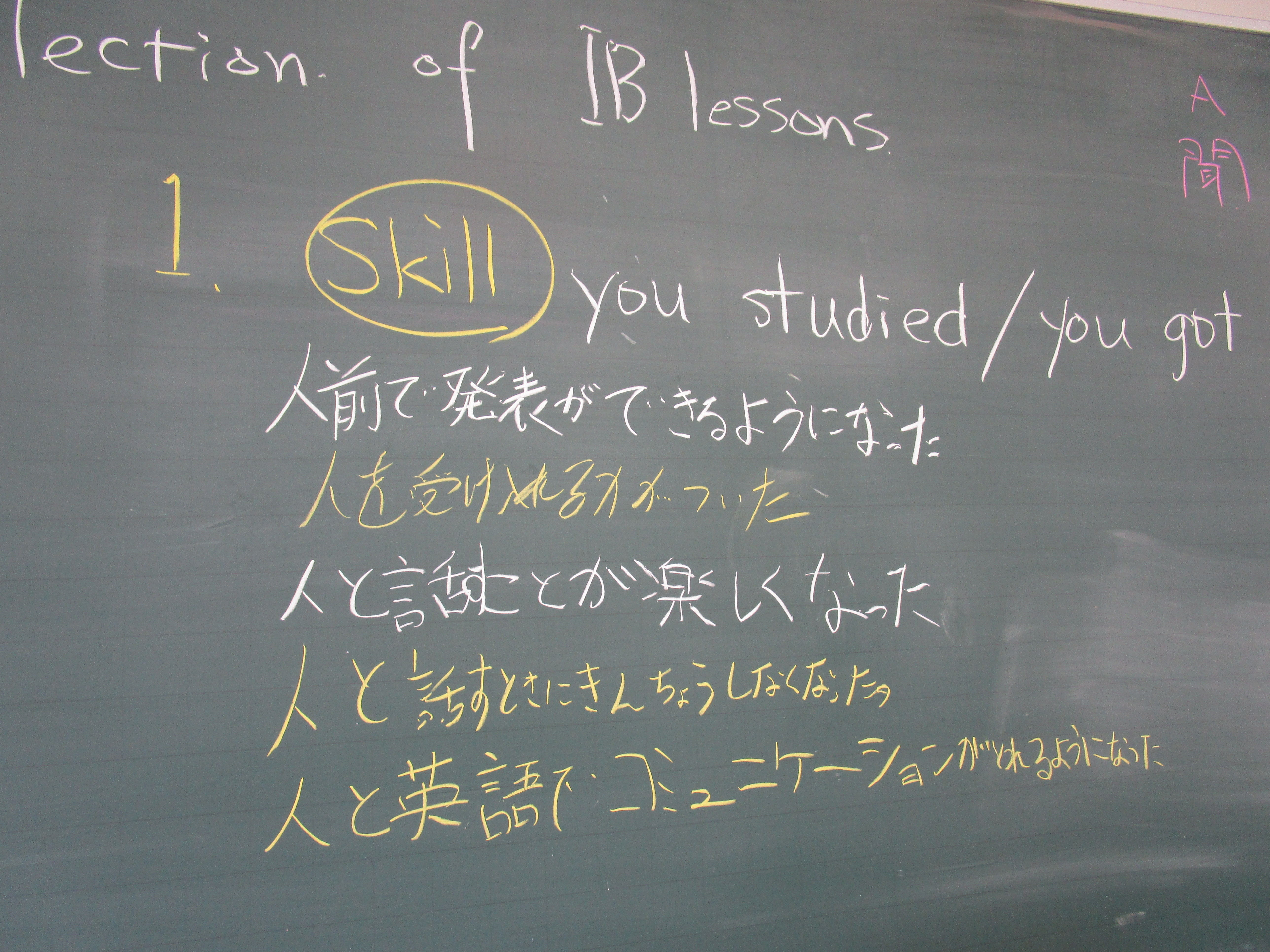 昌平中学校に入学して初めてIBの授業を受けた一年生の今年度最後となるIB英語の授業が行なわれました。今までの授業と全く違う形式で様々なことを学んできたこの1年間を振り返り、「1.身についた力」「2.足りなかった力」「3.二年生になってつけたい力」について、グループで話し合いました。お互いに自分の三つの力を友達に話すことで改めて自分を客観的に評価し、話し合いからは友達からの助言も出ました。その時点ですでに力はついているといえます。自分も友達もお互いに高め合う方法をIB授業を通して自然に身につけたようです。IB教育は学力を育てることだけが目的ではありません。授業を通じて人との関係を考え、社会との関係を考え、そして学ぶ手法を自ら考え身につけます。二年生になってさらに人間力をつけていくたくましい姿を楽しみにしています。