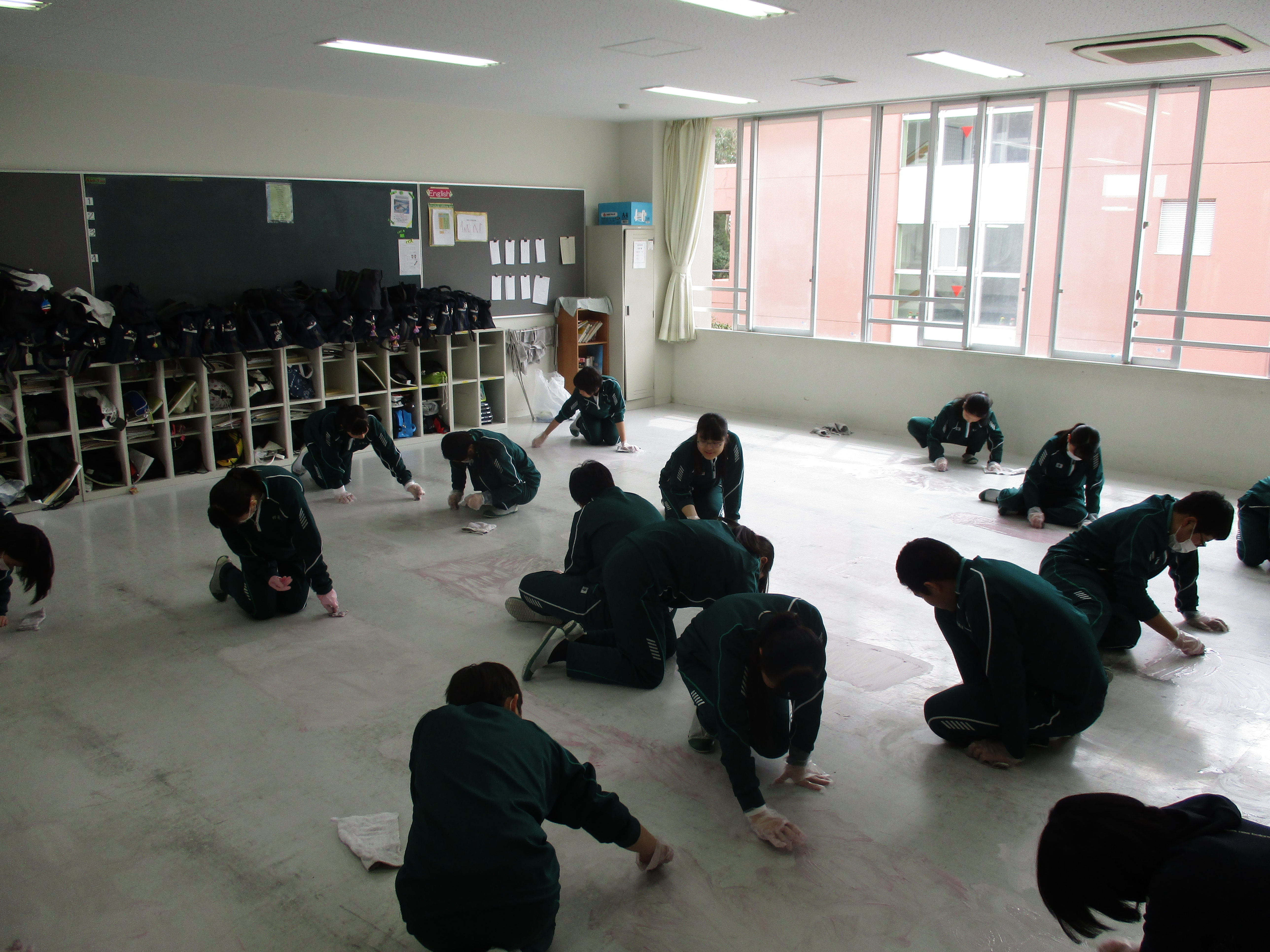 本日は全校美化の日のため大掃除を行いました。1年間お世話になった教室を感謝の気持ちを込めてきれいにしました。身体だけでなく、掃除の仕方や協力する様子に成長を感じられました。明日は卒業式です。中学3年生の皆さん、おめでとうございます。緊張しているかもしれませんが、3年間の思いを心に刻み、堂々と卒業していってください。下級生の皆さんは感謝とお祝いの気持ちをこめて送り出しましょう。