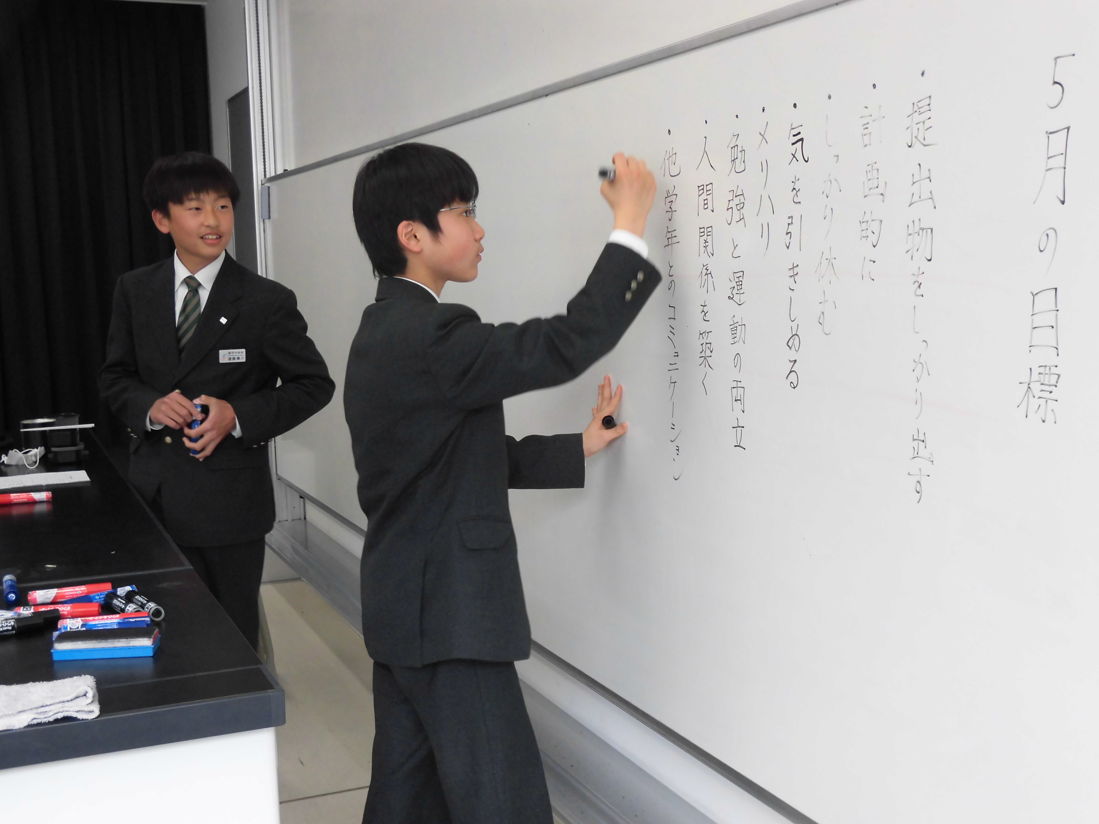 本日、中学校の拡大中央委員会が行われました。生徒会本部役員,委員会委員長,各クラスのHR委員長・副委員長から今月の活動と振り返りの報告があり,それをふまえて5月の目標が話し合われました。様々な意見の中から、5月の目標は「やるべきことをしっかりやって有意義に過ごそう。」に決定しました。ゴールデンウィークは課題を早めに終わらせることで、しっかりとリフレッシュもできます。また、5月22日からは1学期中間考査も始まります。ゴールデンウィーク後も生活リズムを崩さず、最大限の力を発揮して中間テストに臨みましょう。