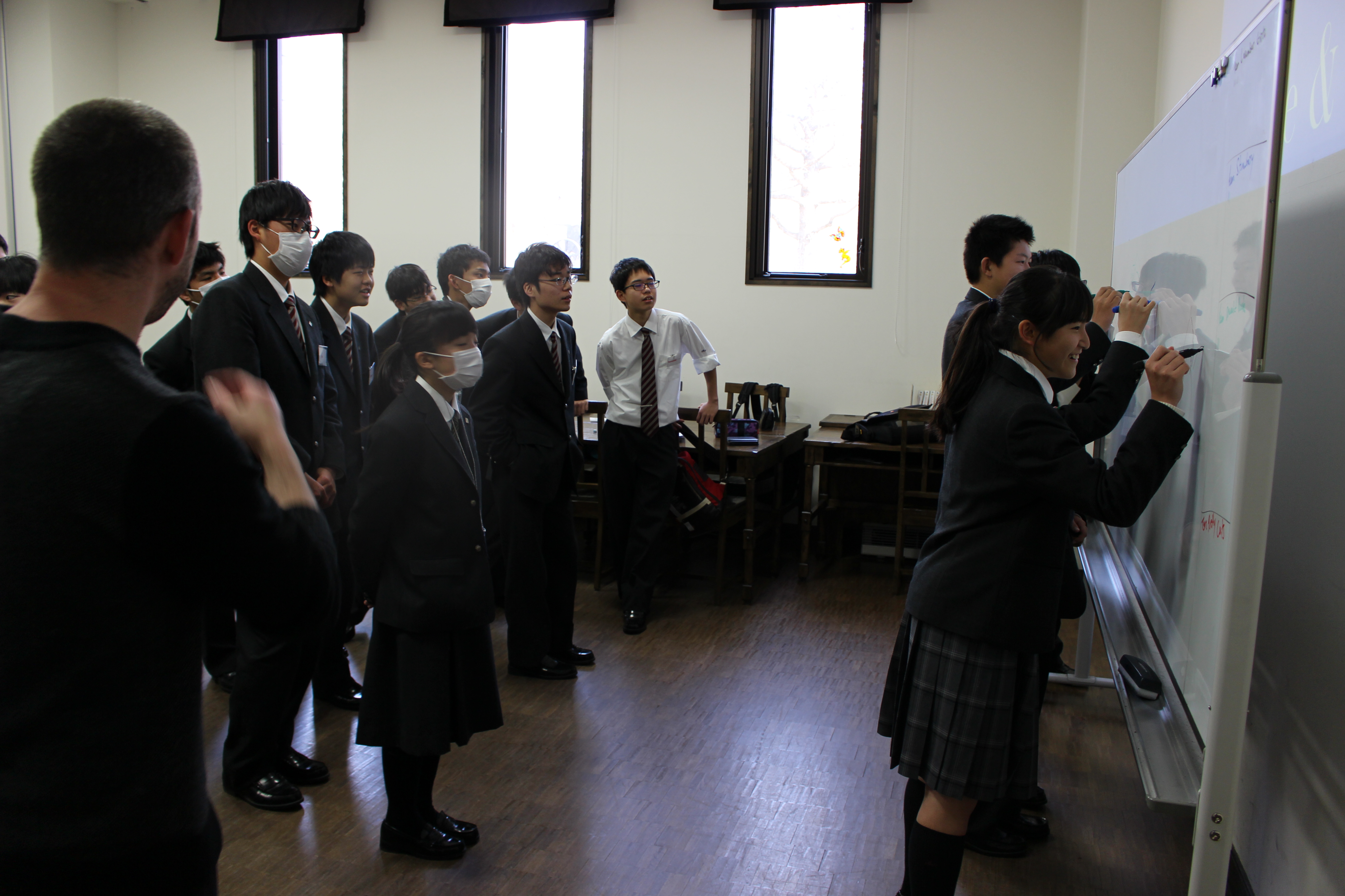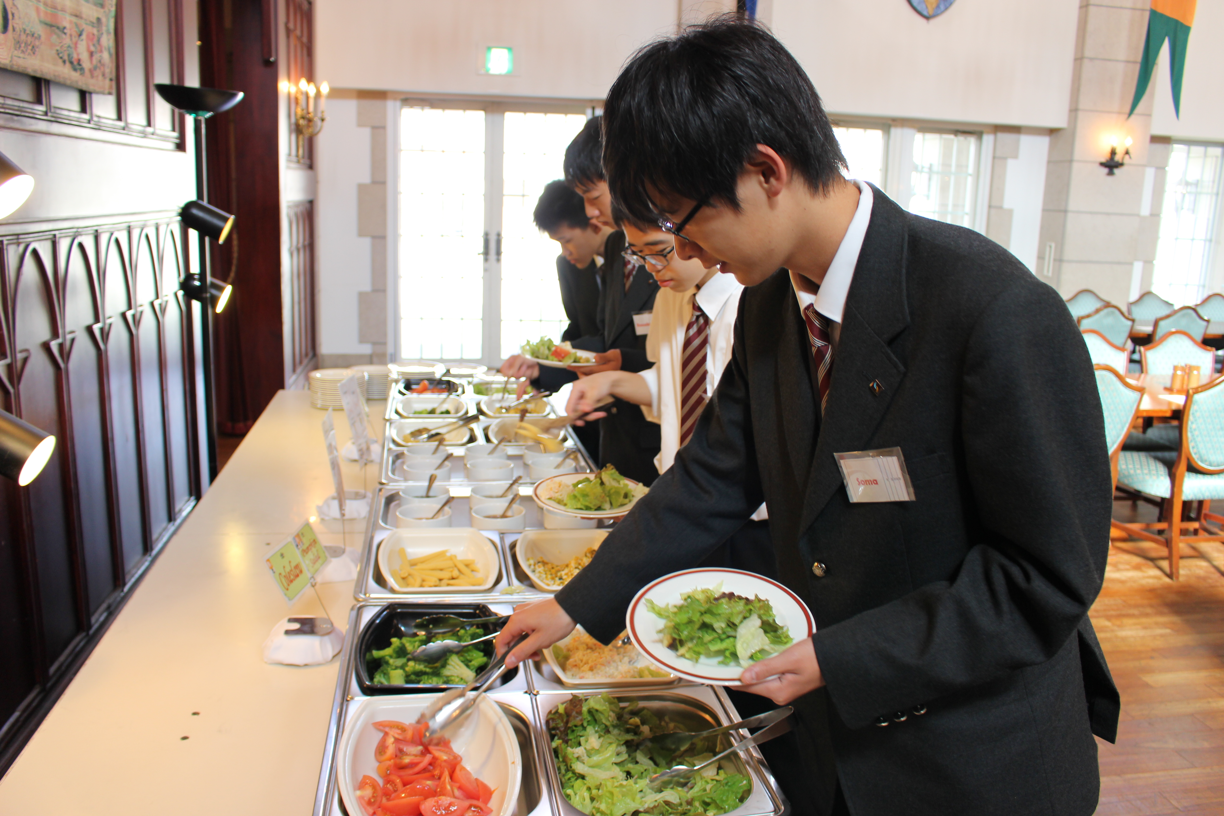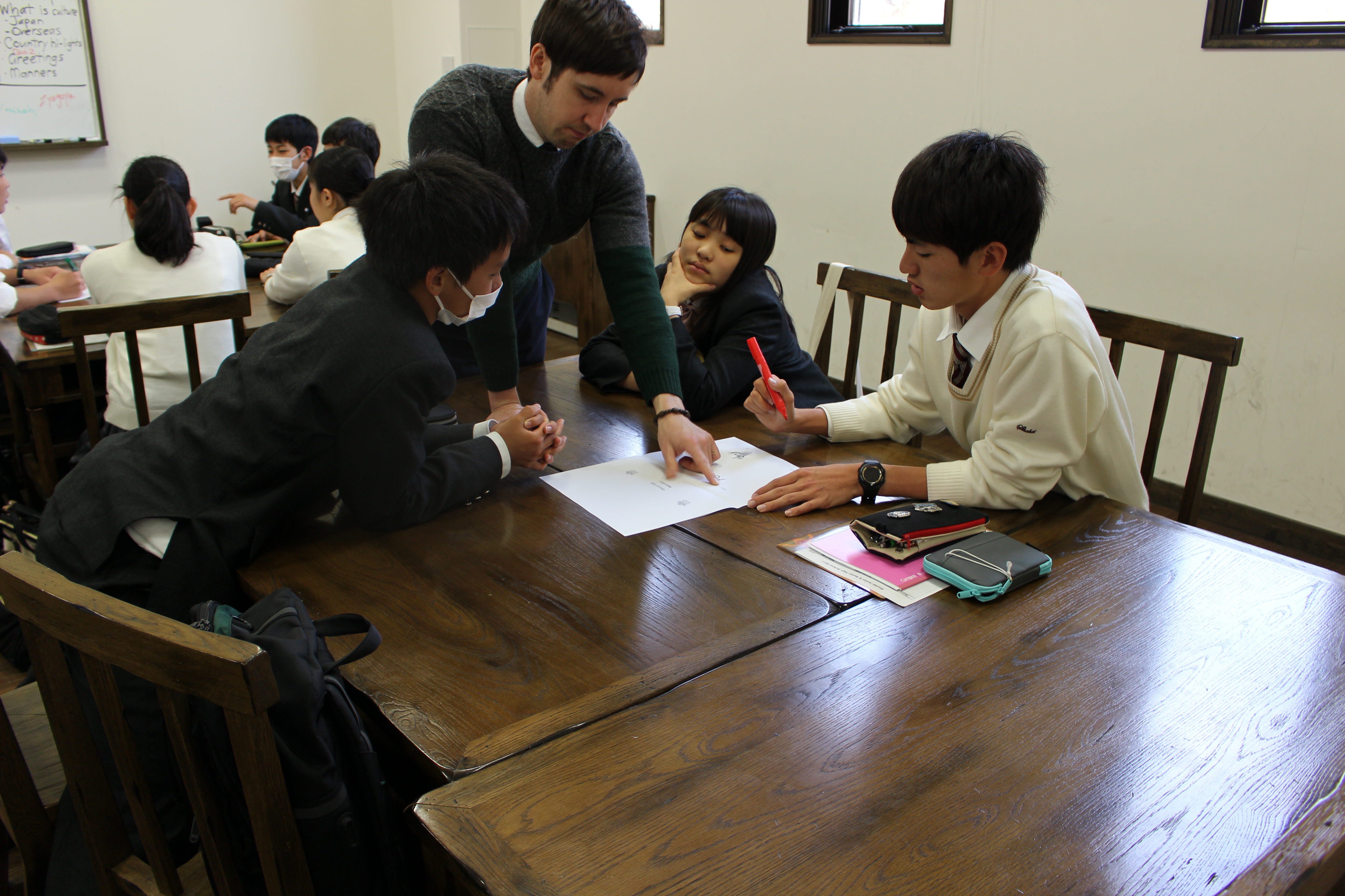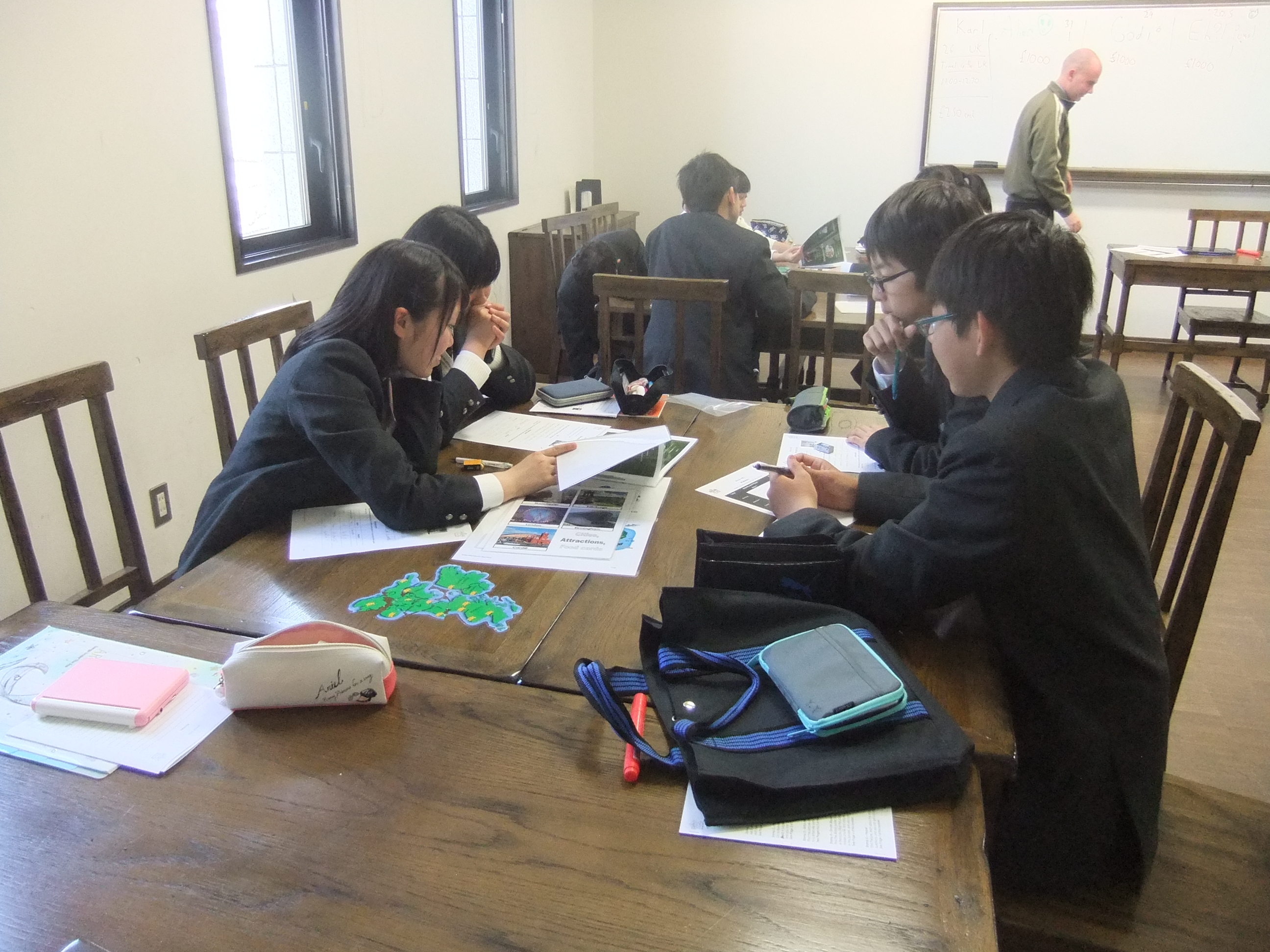 2日目を迎えたブリティッシュヒルズ語学研修は、残雪が美しい遠方の山々からの風が時折冷たく感じますが、澄み切った空気と青空のもと、参加生徒たちはいきいきとした表情で過ごしています。英語は「言語」です。私たち人間にとって「言語」というのは日常生活の一部なので、こうして英語に触れる時間が普段の生活より長いということが何よりの刺激になります。明日の最後のレッスンでスピーチをするグループでは原稿作りが行われました。授業後、昌平の引率教員に担当の先生が話しかけてきました。何かあったかな?とドキドキしましたが、「積極的な姿勢といろいろなことを書いて伝えたいという気持ちが素晴らしい」とほめられました。その他にもメイキングレッスンなど多彩なレッスンが行われ、参加生徒は中学生も高校生も非常に意欲的で、そして表情豊かに取り組んでいました。