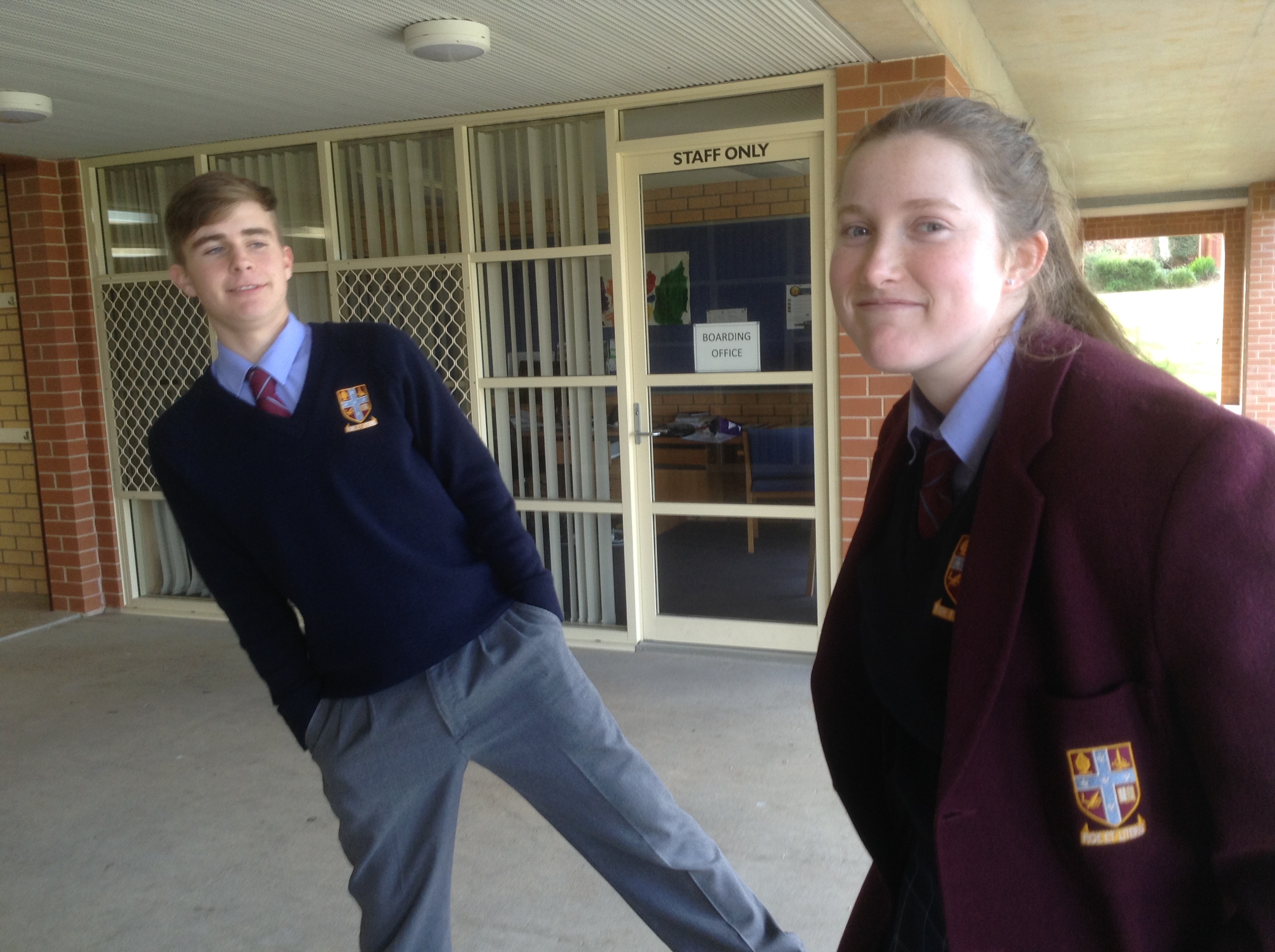 (1年13組萩生田琴さん)スコッツスクールのあるオーバリーは冬に雨が多いそうです。最近は雨が続いてます。学校ではホストファミリーの友達とも仲良くなりたくさん会話しました。1人1台のパソコンを持っていて授業は全部教室を移動して受けるのでビックリしました。パソコンのマウスのスクロール部分が日本とは操作が逆で、少し戸惑いました。みんな日本語が上手で、たまに日本語を教えたりします。ドラムレッスンやシンデレラのオーディションや9年生のミュージカルを見ました。ミュージカルの内容が少し分かり、速い英語にも慣れてきました。家で日本語のドラマを見たり休み時間に日本のアニメの話になったり、知っているアニメだったのでたくさん会話して楽しかったです。みんなフレンドリーで会話も弾むし日本語が上手なので日本語の話や日本の話をして楽しんでいます。夕飯のBBQでカンガルーの肉を食べました。美味しかったです!