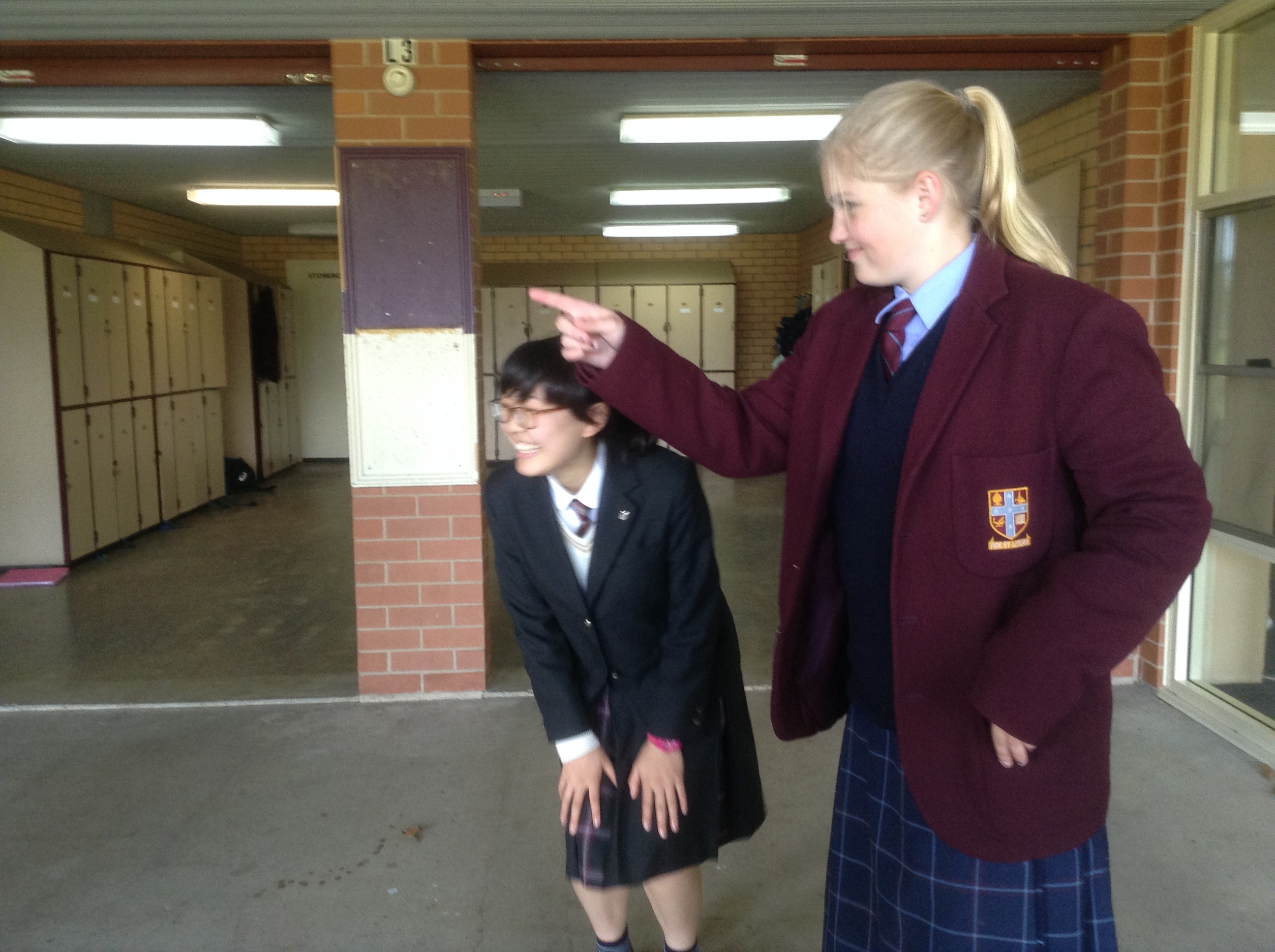 (2年13組細谷栞乃さん)早いものでオーストラリアに着いてもう二週間が過ぎてしまいました。こっちでの生活にも慣れてきて、やっと落ち着いてきたというところです。 学校での生活は日本とは全く違い、毎日が新しい発見で溢れていてとても楽しいです。まず、生徒は自分の教室というものが無く、持ち物が置けるのはロッカーだけ、となっていることに驚きました。そのため、昼食もほとんどが外で地面に座ったり、立ったまま食べたりしています。そう考えると昼食がサンドイッチやチップスなどの手軽に食べられるものになるんだなと納得しました。授業のスタイルも全然違います。生徒は皆ラップトップを持っていて板書や提出物は全てそれで済ませています。近代的だなとも感じましたし、ブラインドタッチが出来るようになるのは後々就職する時に役立つと思いました。それだけでなく、生徒が活発に発言していて授業が全員参加型です。しかし、生徒が先生の話の途中でも手を上げて意見を述べるので、先生が注意することがよくあります。まだまだ書きたいことがたくさんあるぐらい充実しています。この貴重な体験を楽しみつつ、今後の糧となるよう頑張ります。
