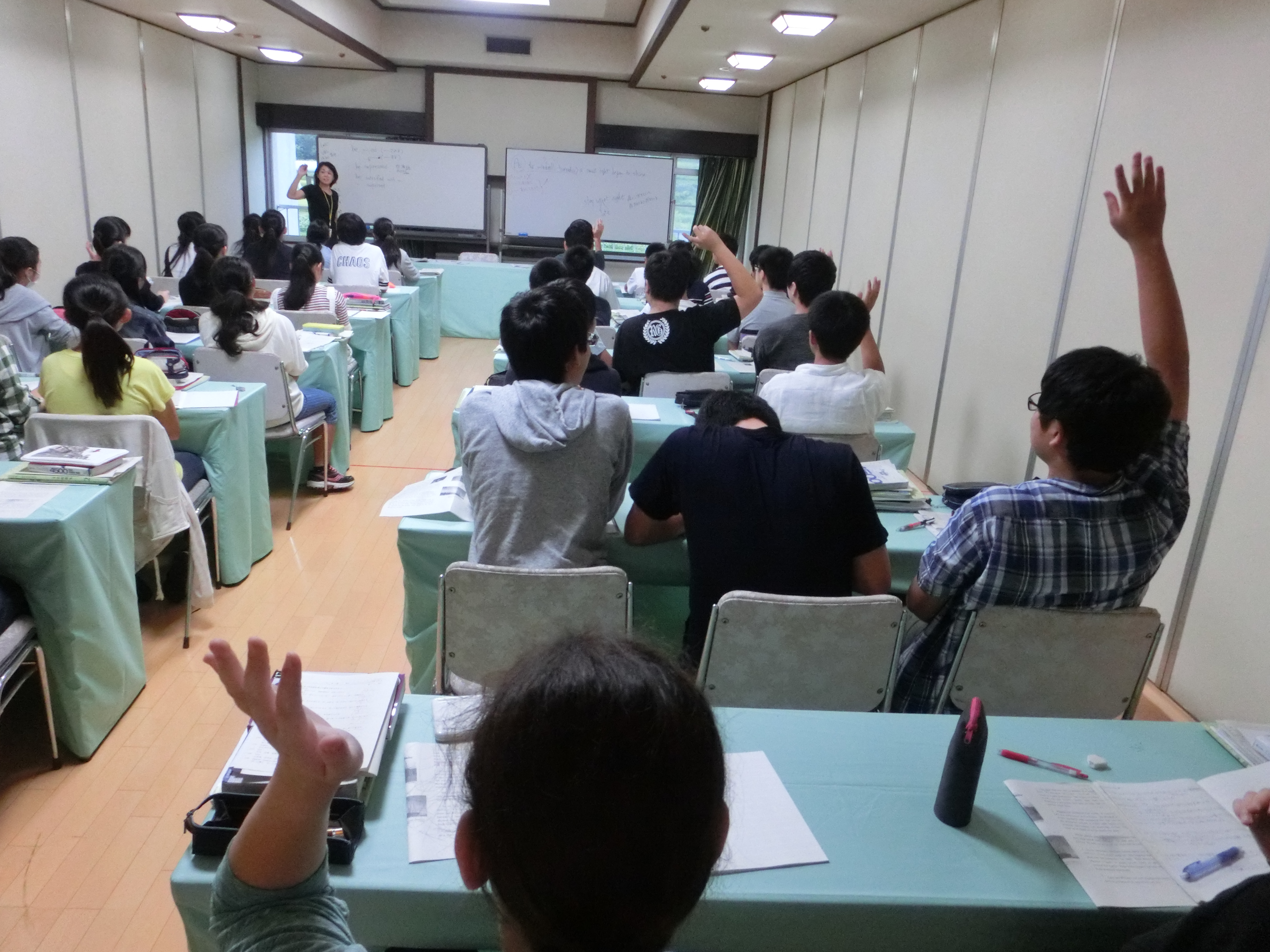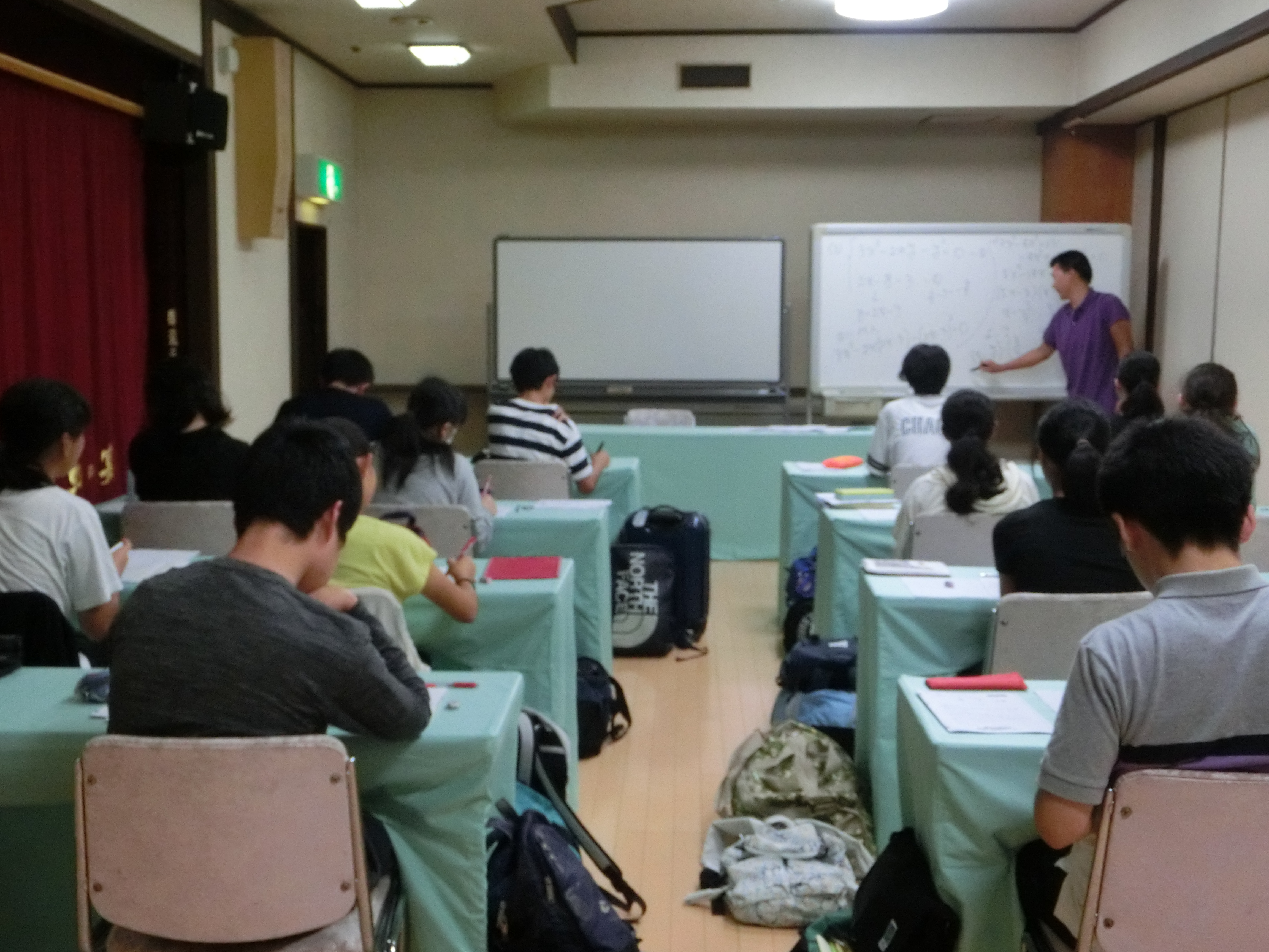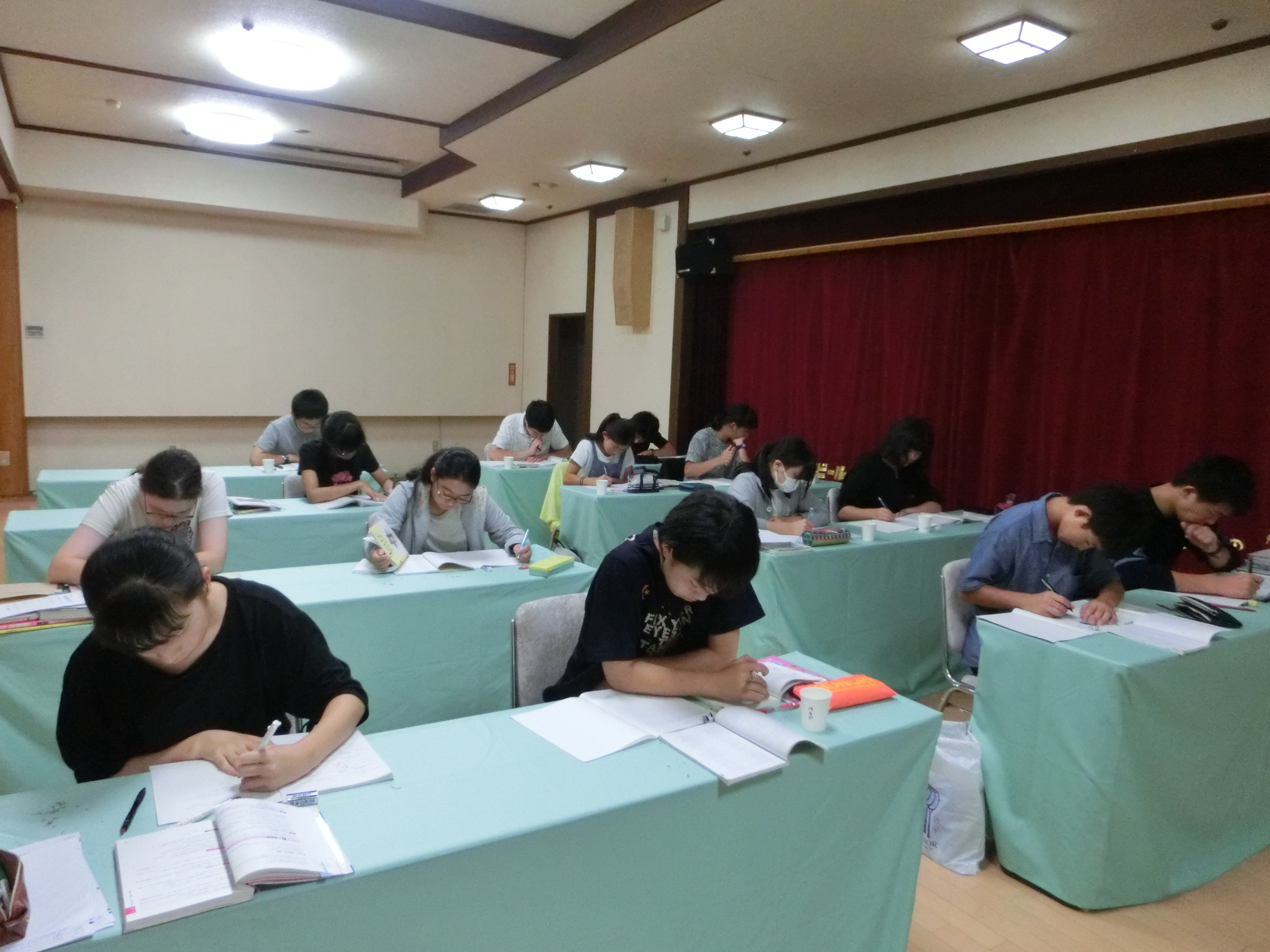 希望者対象の中3学習合宿に、39名が参加し、水上にて始まりました。到着後すぐに昼食までの時間を利用し自習。昼食後も講習が始まるまで自習をするなど、意欲的な姿勢が見られました。夕飯後には、学年主任から「自習」についての講話がありました。この学習合宿の一番の目的は、「本当に意味のある自習とは?どのような自習が自分の力につながるのか」ということです。講習450分、自習610分以上、その中から自分で何を掴み取れるのか、自分との戦いです。