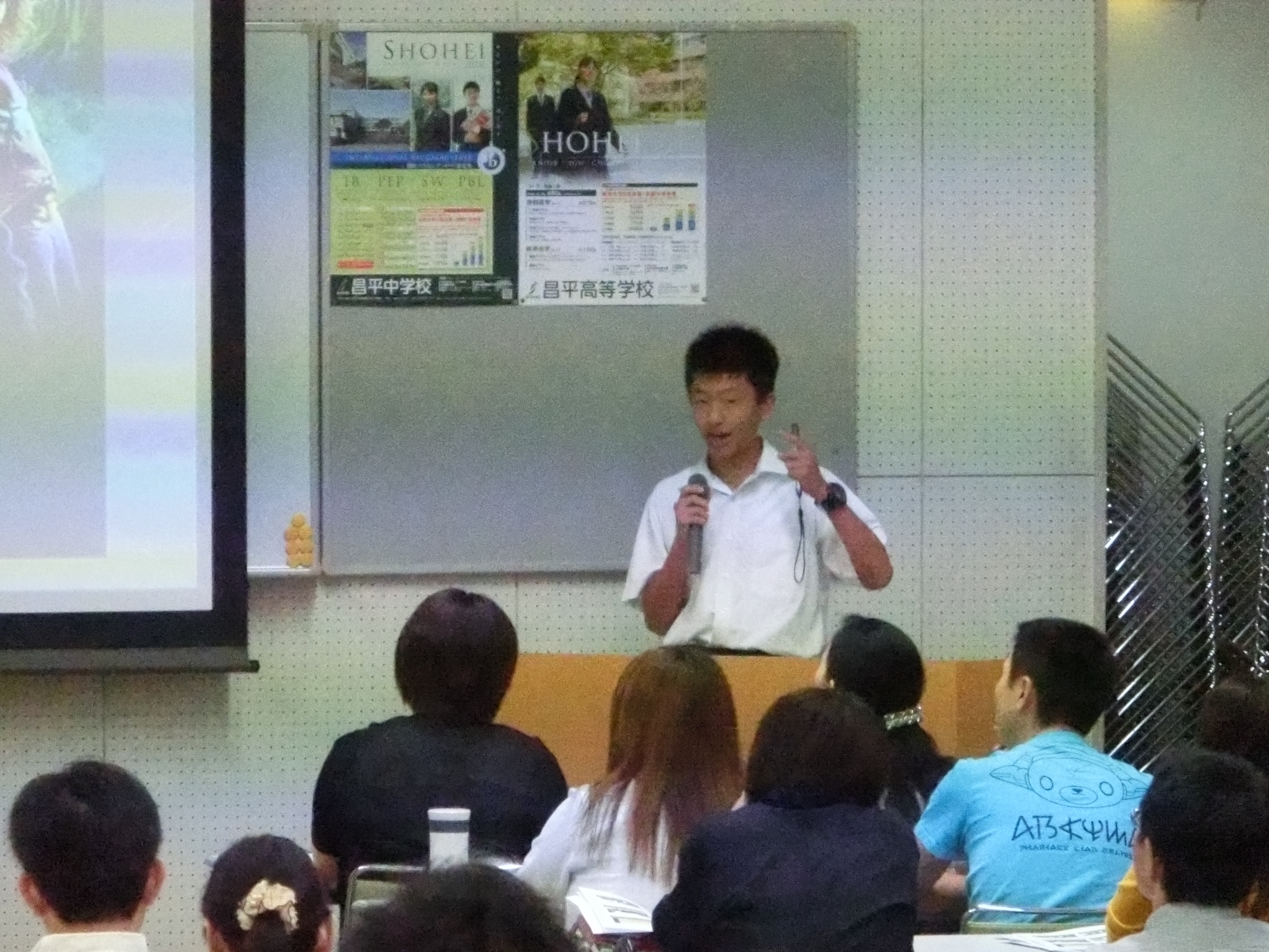 第6回学校説明会と第2回解説授業体験に多くの保護者の方と小学生が参加して下さりました。 解説授業体験では、8月に行なわれた腕だめしテストを題材に授業をしました。本校の国語科と数学科の教員が授業をし、少しでも本校の雰囲気を味わってもらえたらうれしく思います。また、別会場で行なわれた説明会では、校長の城川から本校の概要、国際教育部長の前田からIB教育について、中学校英語科責任者の戸恒から本校の英語教育で重視していることやその取り組み、教頭の本間から入試概要について説明がありました。そして今回の説明会では、中学3年生の遠藤君が「自分の好きな作家」についての英語スピーチを参加者の皆様に披露しました。英語を中学入学後から始めた子でもここまで話せるようになるという、本校英語教育の成果を感じていただけたと思います。多数のご好評をいただき誠にありがとうございました。