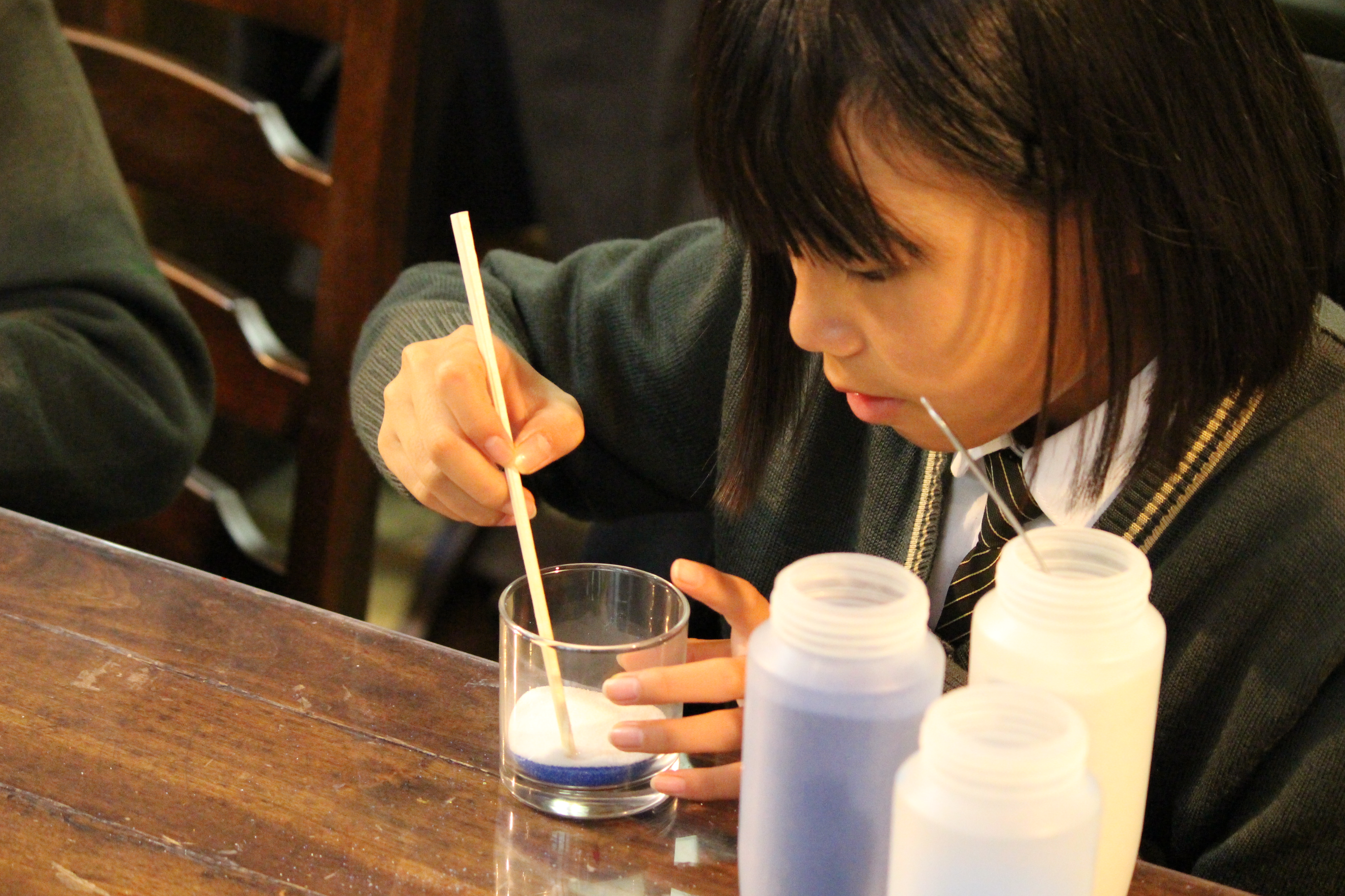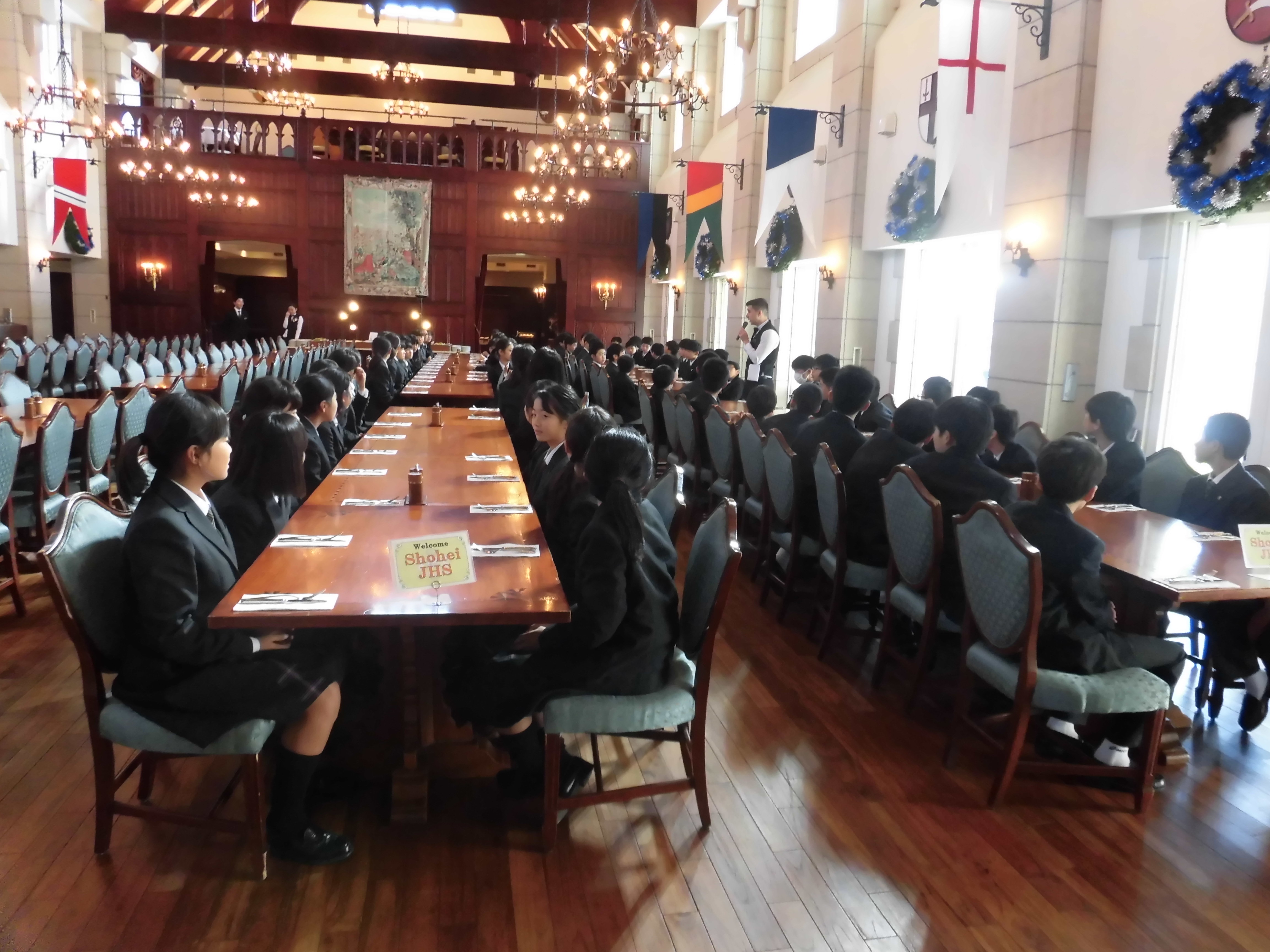 本日から中学1年生を対象としたブリティッシュヒルズ語学研修が始まりました。5月の希望者対象研修に参加した生徒も一部いましたが、ほとんどの生徒にとって初めての参加です。到着後すぐ、施設におけるマナーの説明や模擬入国審査などのやりとりが全て英語で行われ、生徒たちは少しとまどいながらも懸命に質問に答えていました。午後のレッスンでは、クリケットやジェルキャンドル作りなど、グループごとに様々な体験やレッスンに参加し、外国人講師の方と楽しそうにコミュニケーションをとっている様子が見られました。