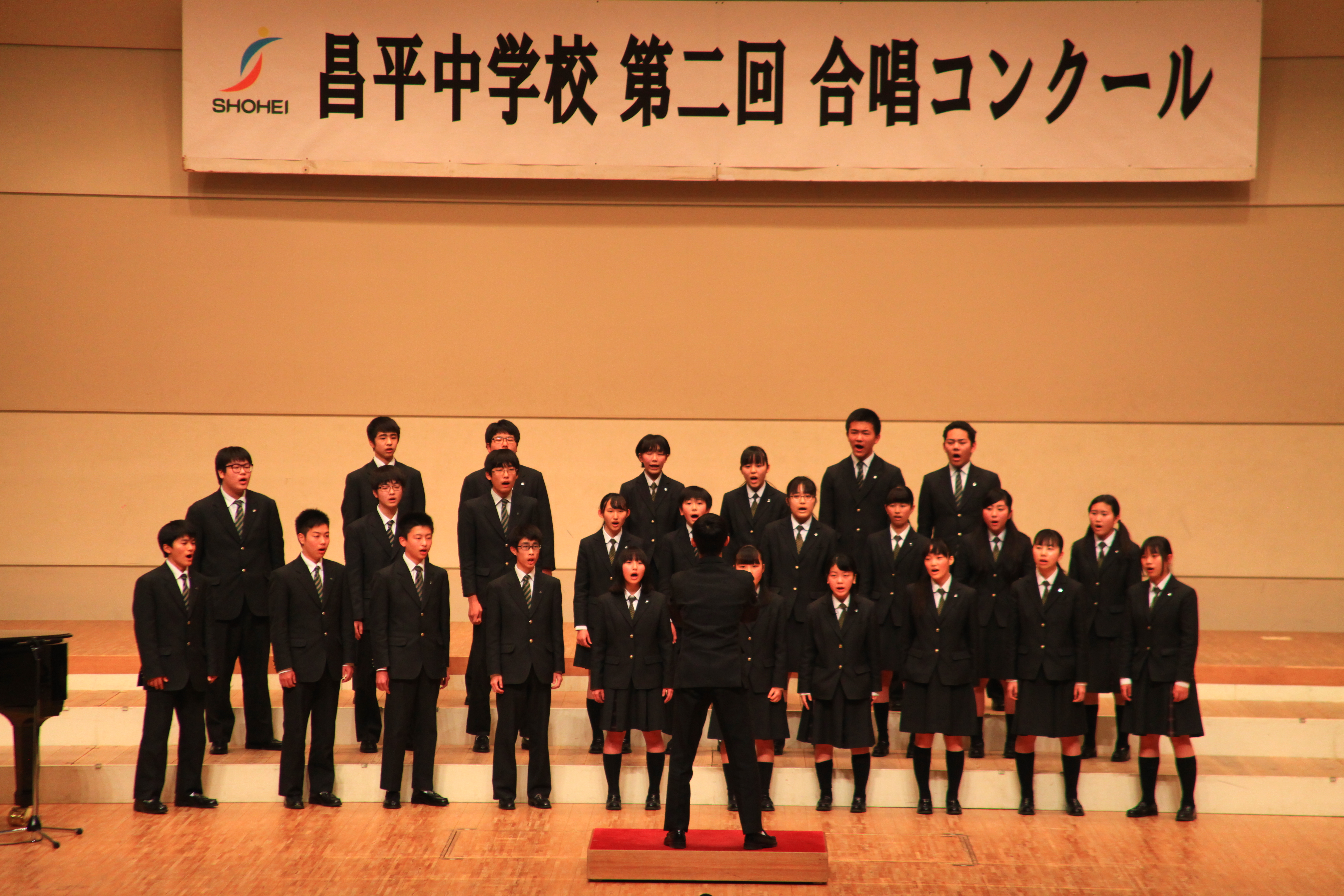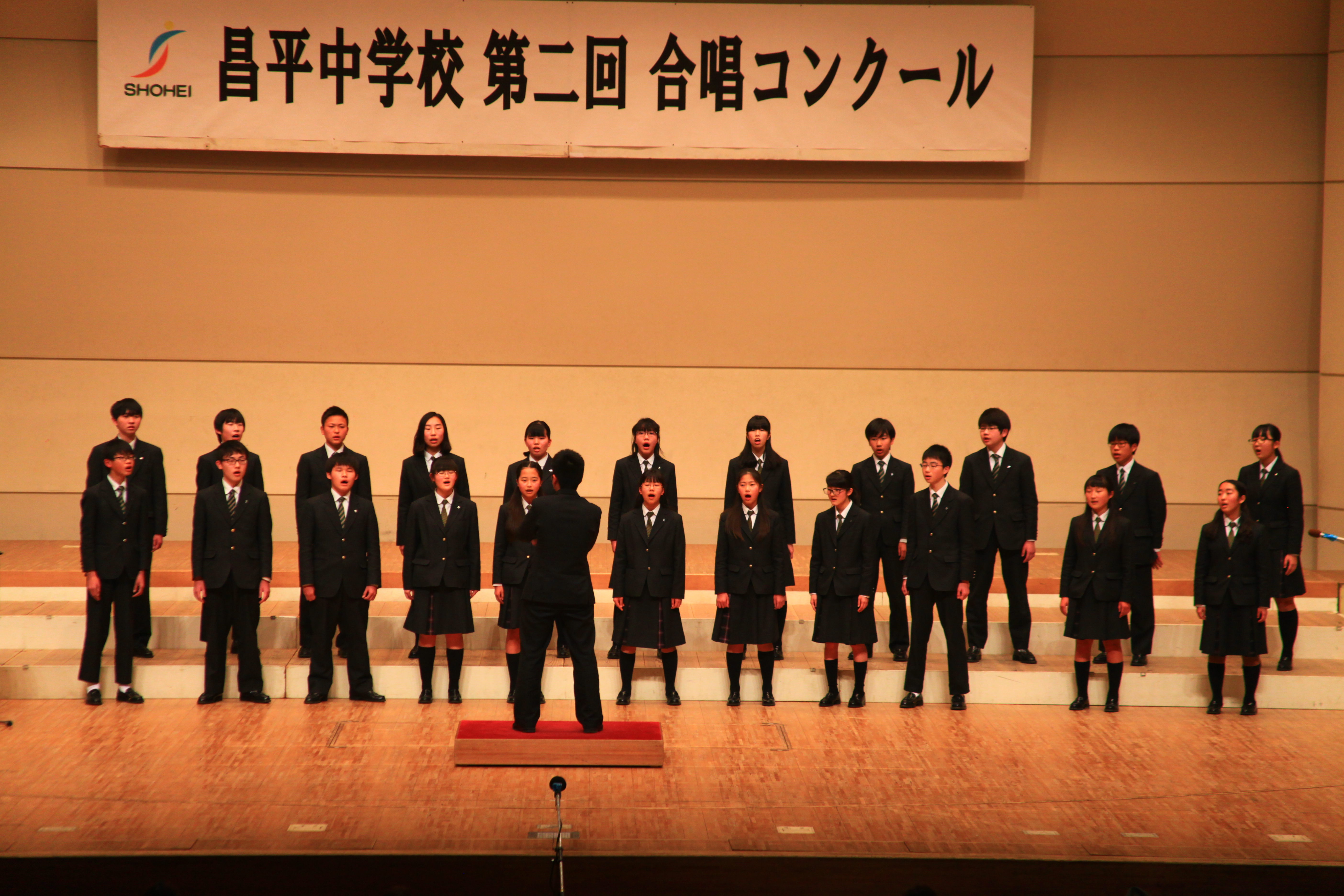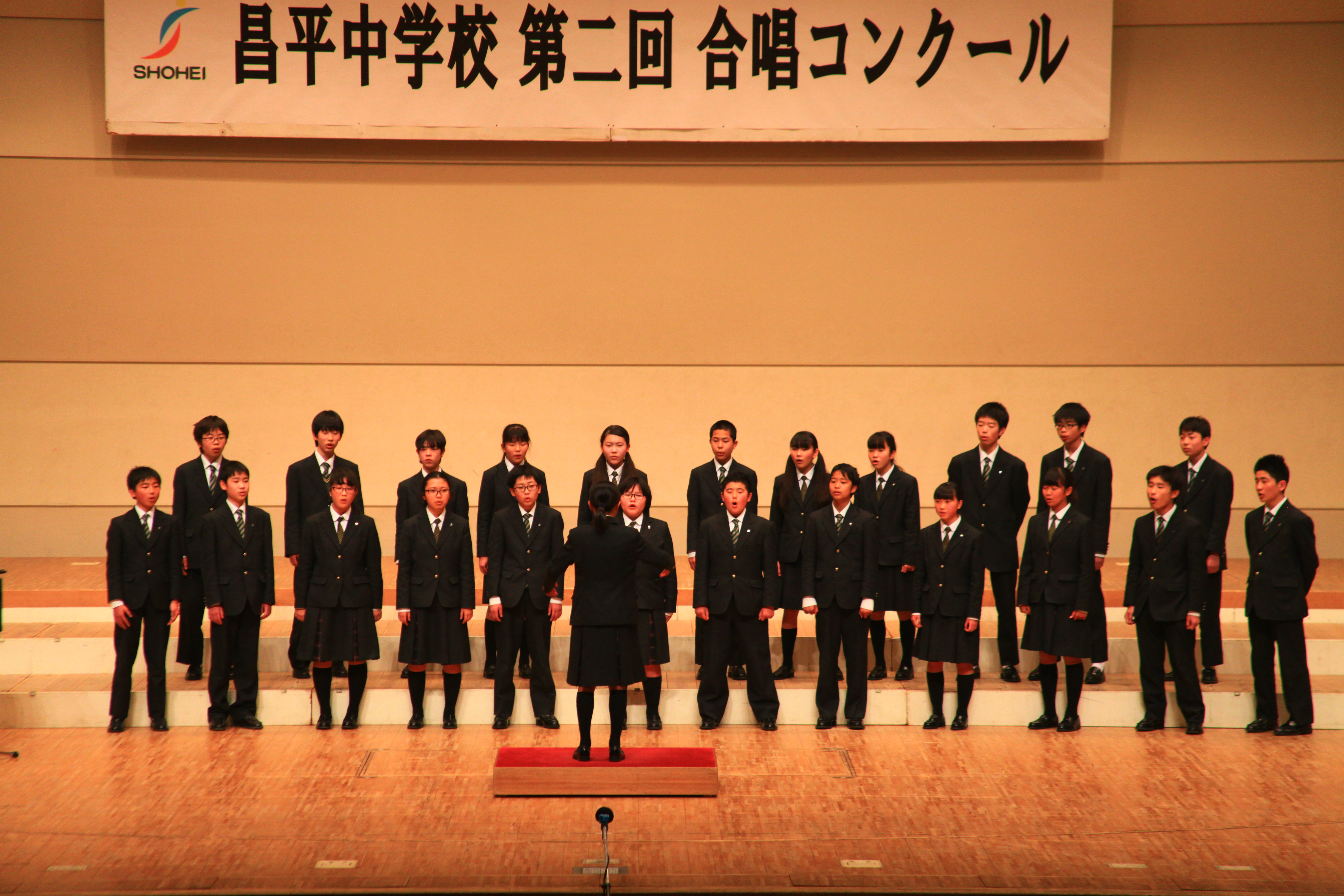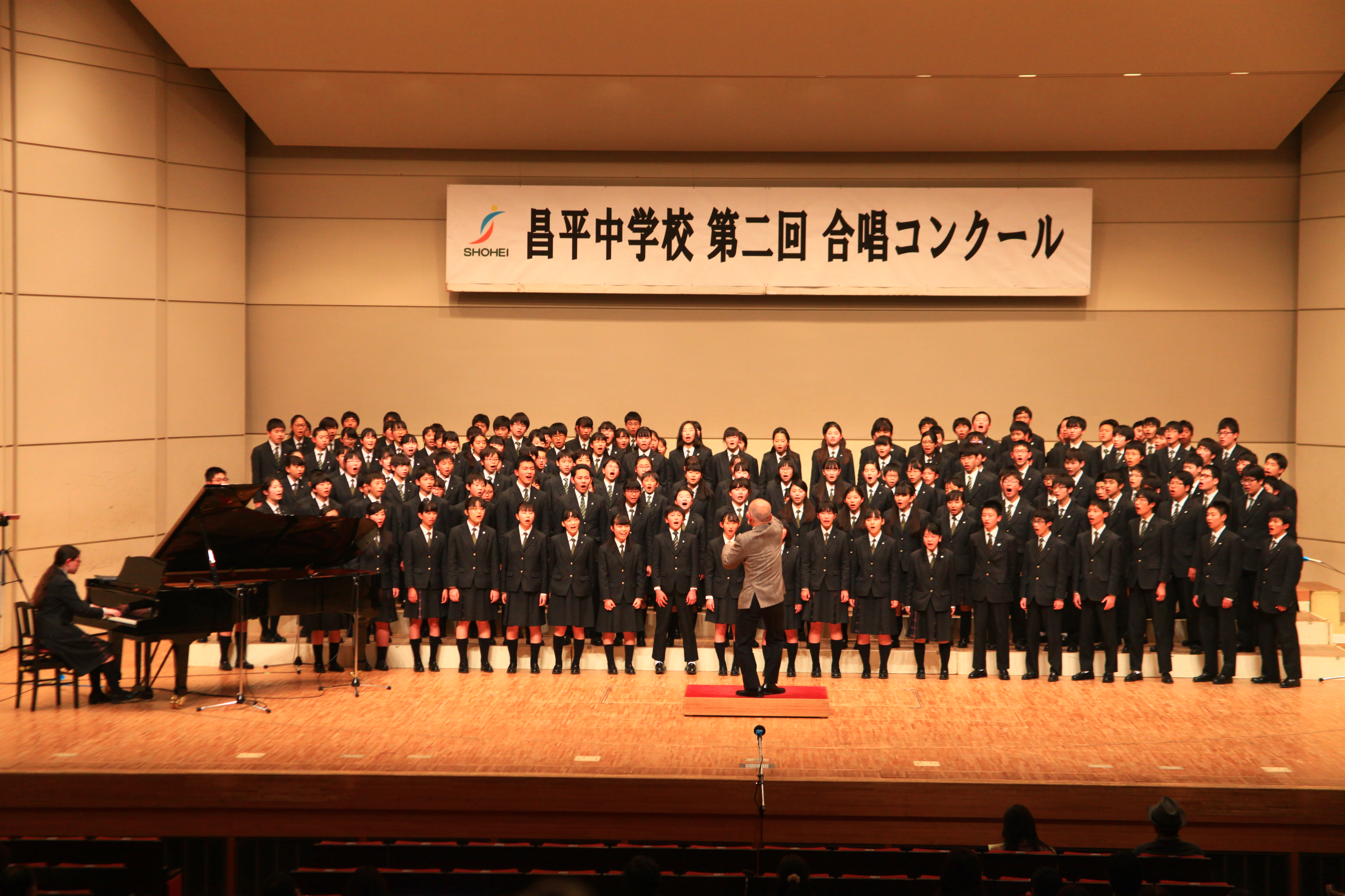 2月3日(土)、午後2時から春日部市民文化会館大ホールに於いて、第2回合唱コンクールが開かれました。 進行を務めるのは3年生の大河内莉奈さん、矢内大雅君。まず生徒会副会長栗田真帆さんの開会宣言、学校長、PTA会長、実行委員長矢内君の挨拶、審査員のご紹介の後、まずは全員での校歌斉唱。そしていよいよ各クラスの発表に移りました。コンクールは課題曲「大切なもの」(山崎朋子作詞・作曲)と自由曲の2曲で行われました。各クラスとも2学期の終わりから朝や放課後の時間を利用しての練習の成果を遺憾なく発揮し、爽やかな歌声を響かせていました。