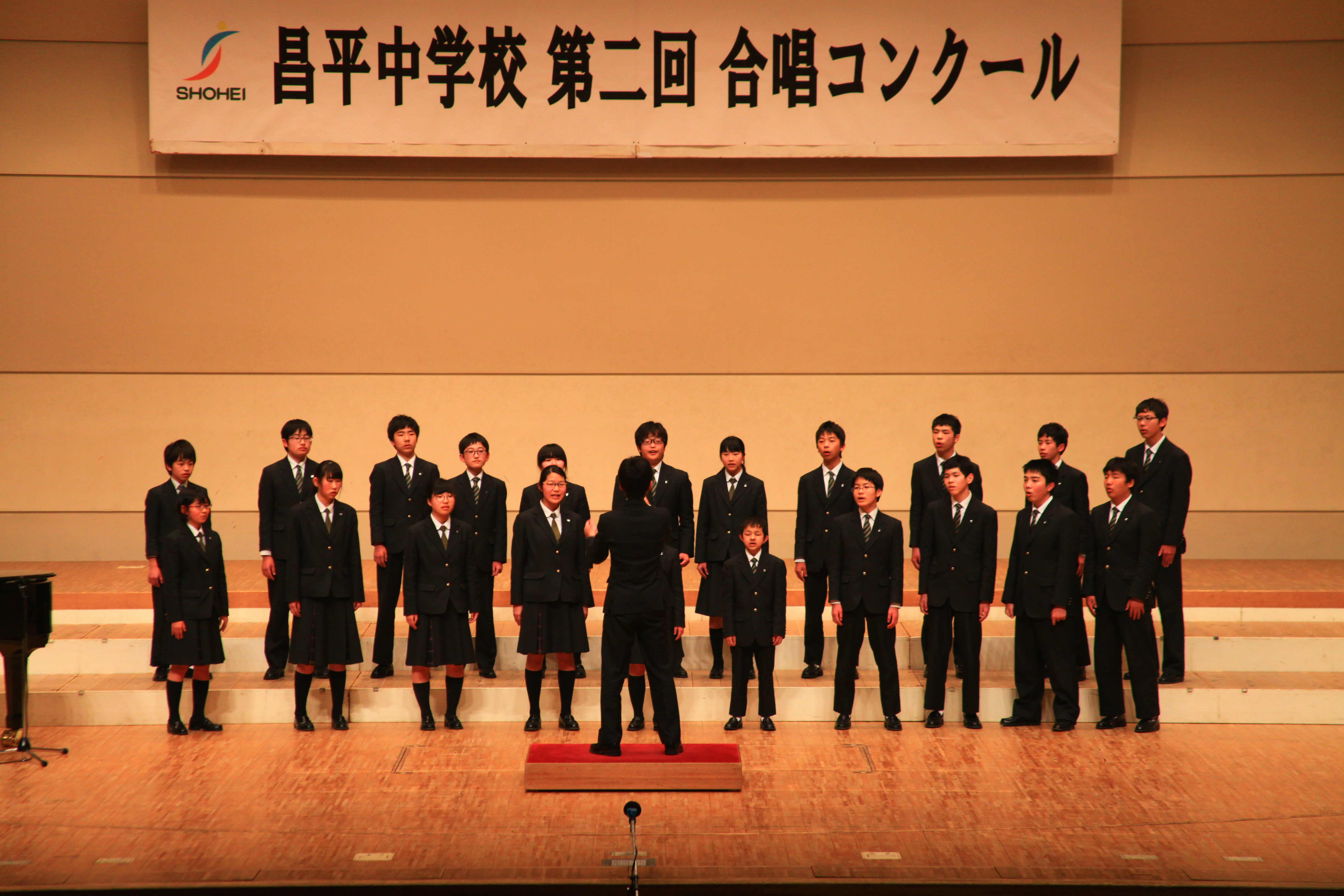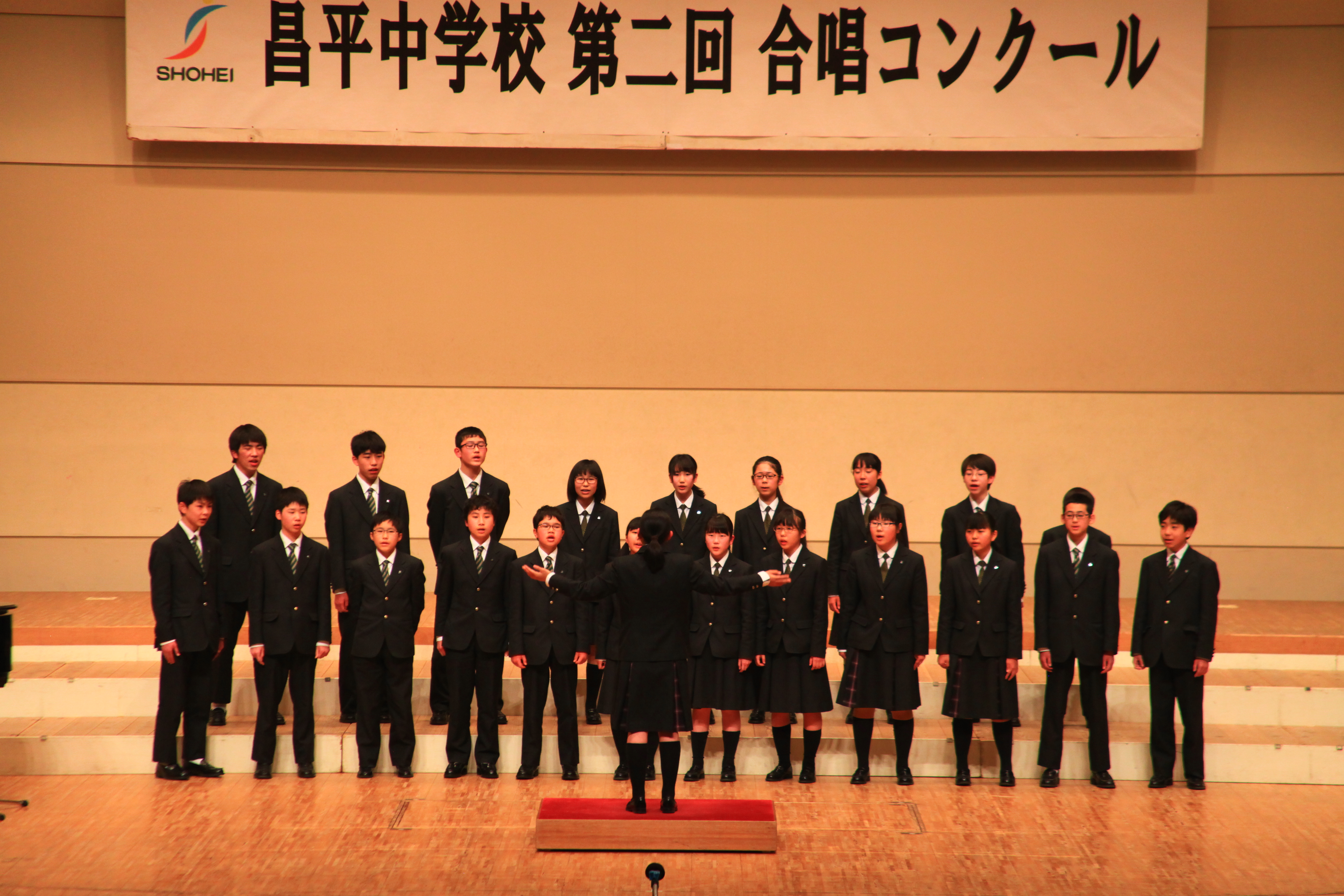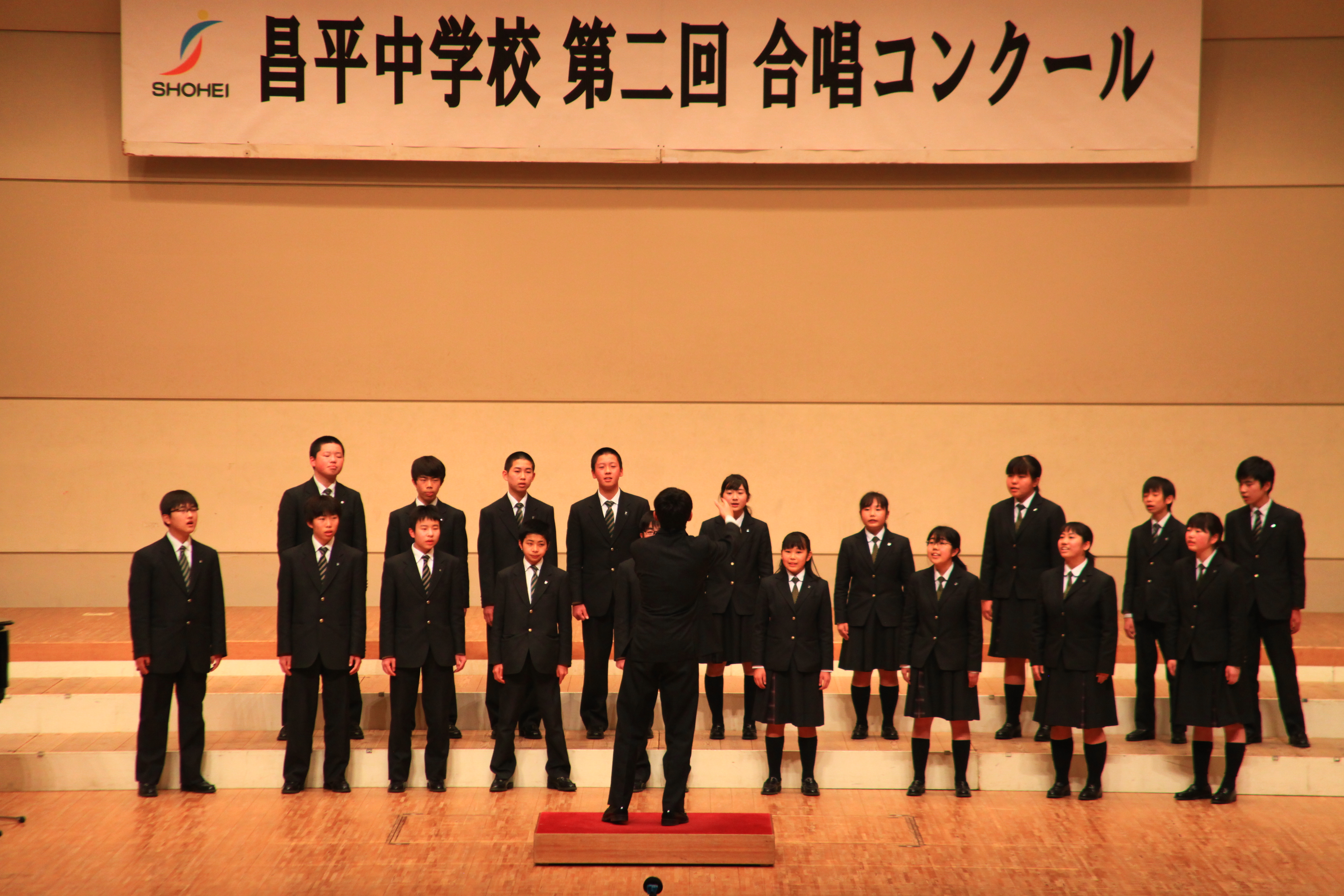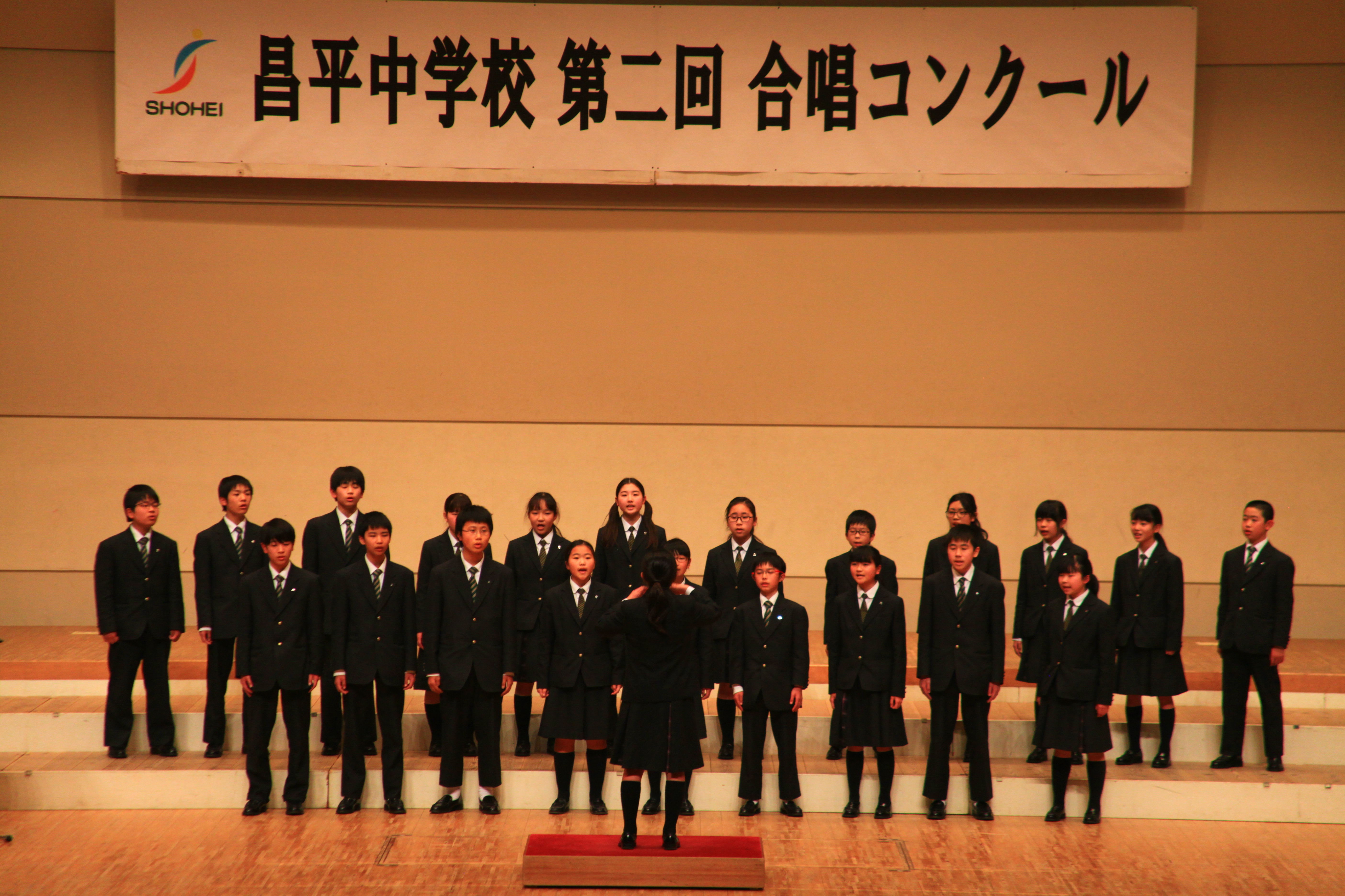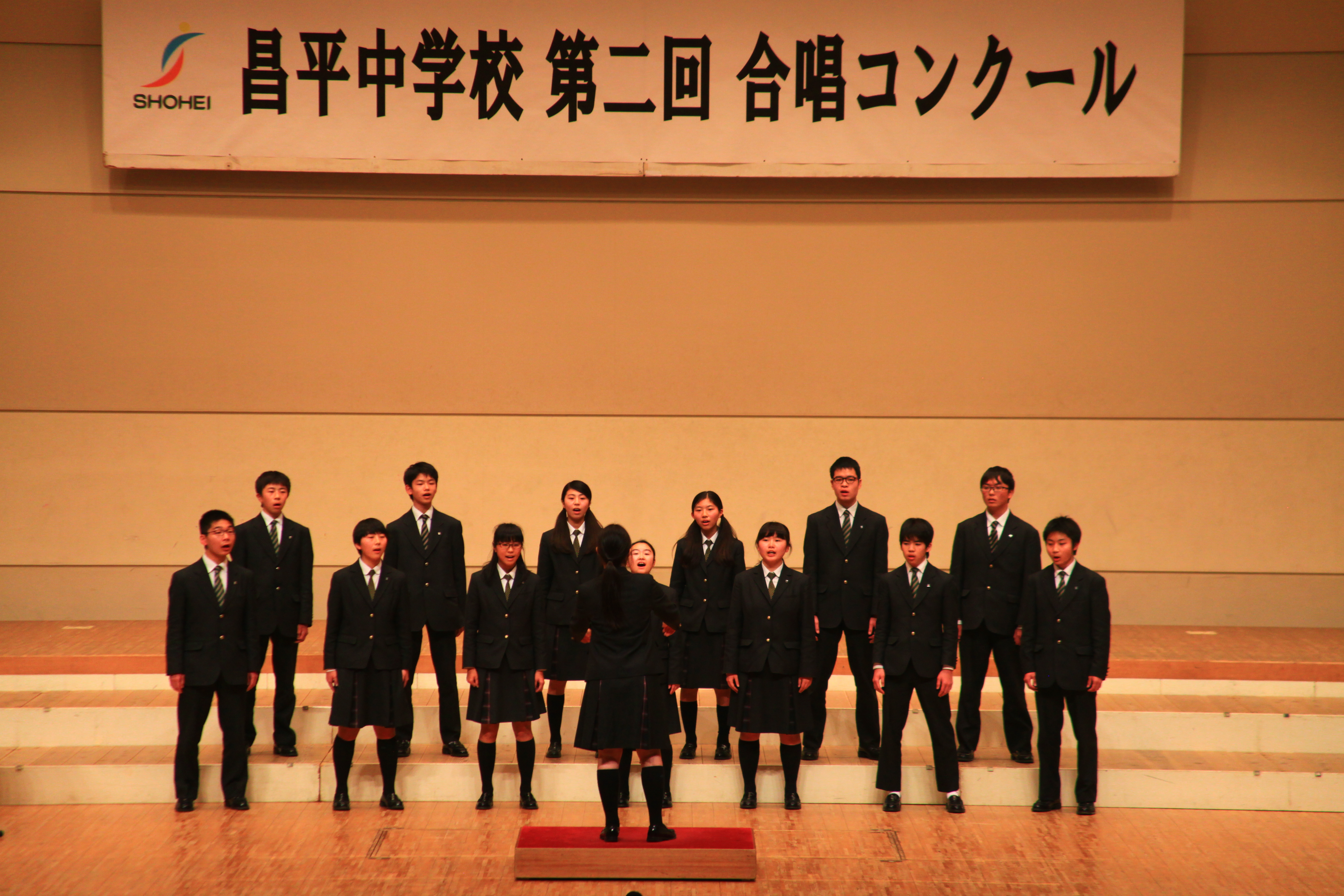 2月3日(土)、午後2時から春日部市民文化会館大ホールに於いて、第2回合唱コンクールが開かれました。 進行を務めるのは3年生の大河内莉奈さん、矢内大雅君。まず生徒会副会長栗田真帆さんの開会宣言、学校長、PTA会長、実行委員長矢内君の挨拶、審査員のご紹介の後、まずは全員での校歌斉唱。そしていよいよ各クラスの発表に移りました。コンクールは課題曲「大切なもの」(山崎朋子作詞・作曲)と自由曲の2曲で行われました。各クラスとも2学期の終わりから朝や放課後の時間を利用しての練習の成果を遺憾なく発揮し、爽やかな歌声を響かせていました。