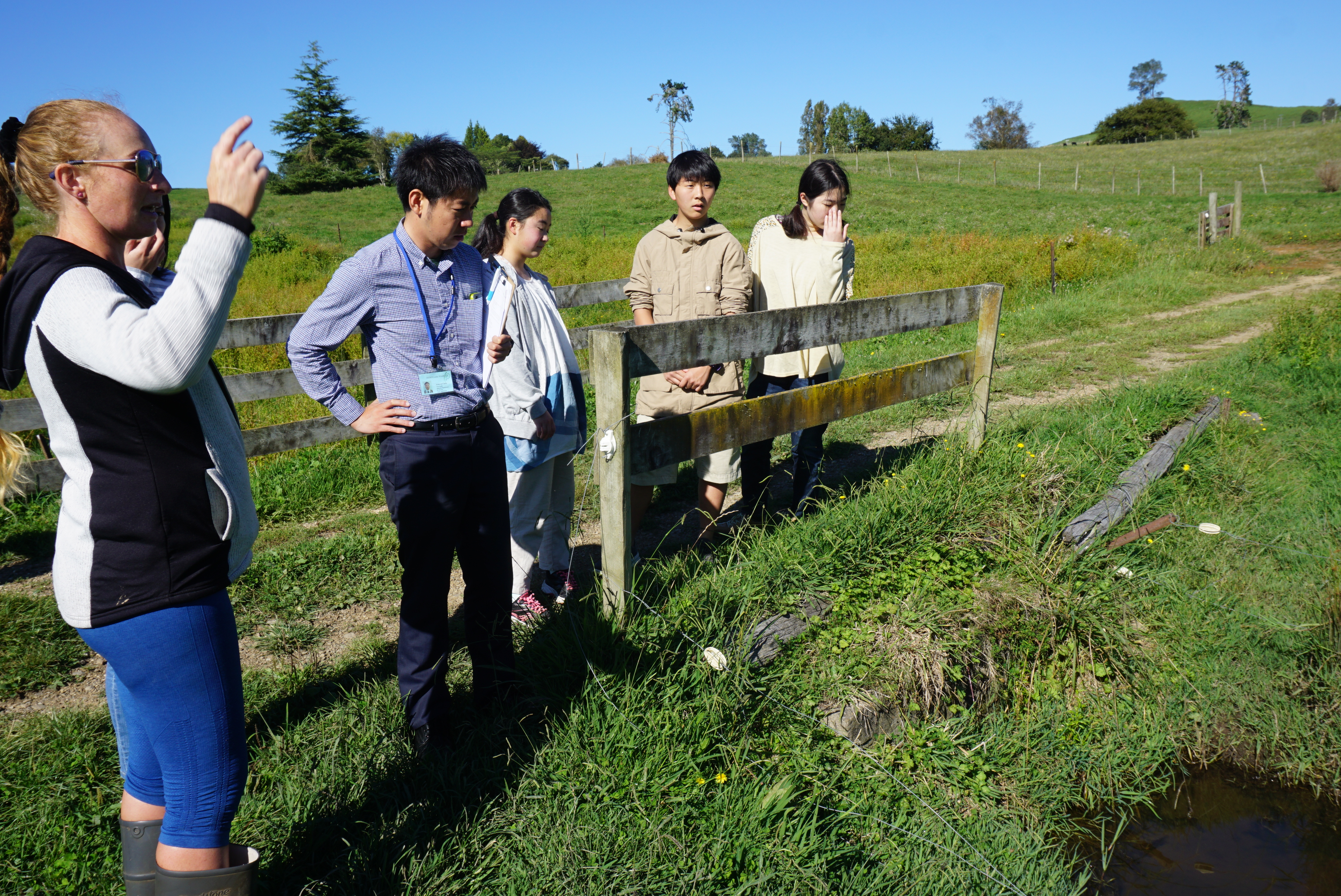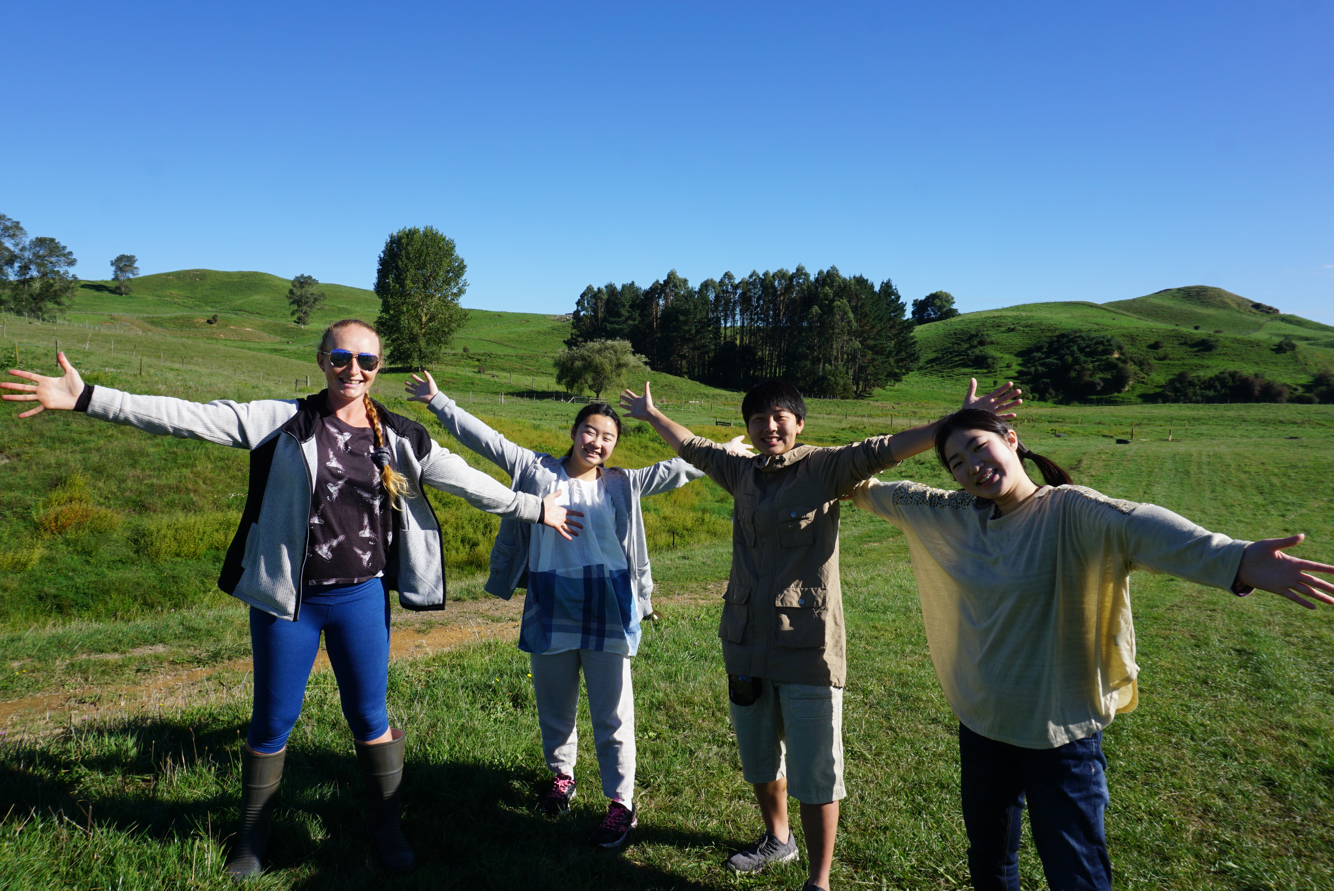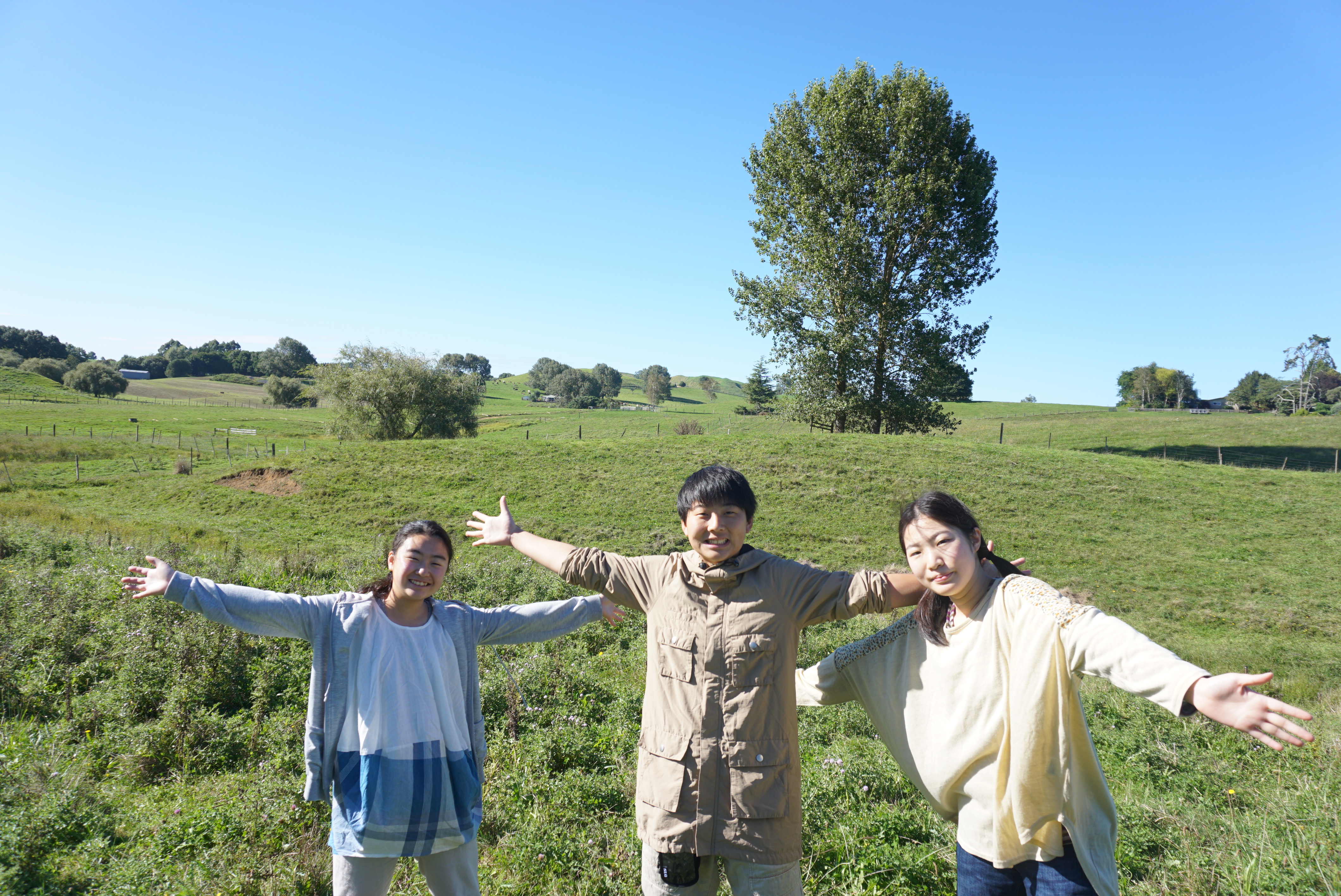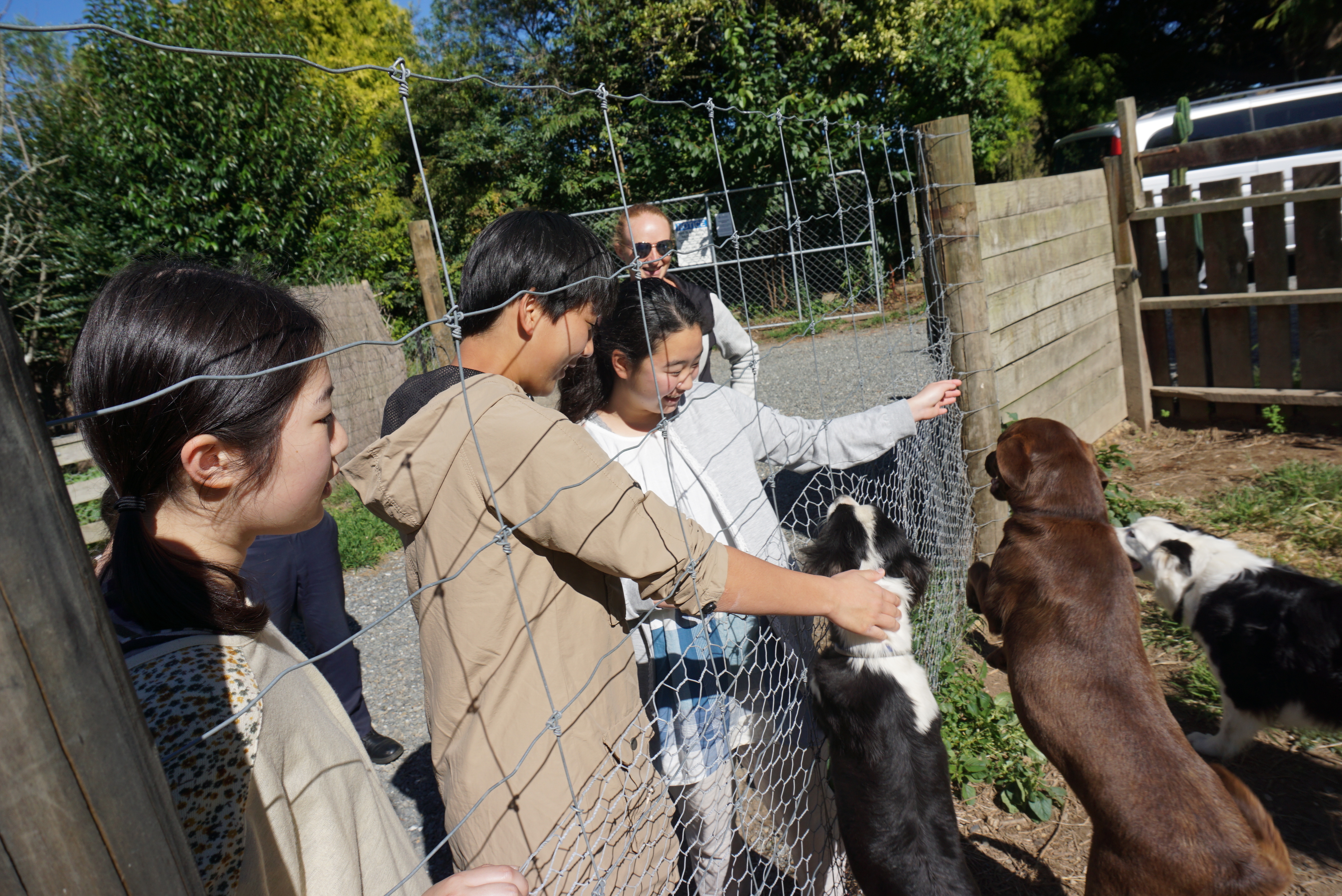 土曜日の今日はそれぞれのホームステイ先でいろいろな週末プランを考えてくださっていると聞いています。そんな週末ですが、特別に訪問の許可を2件だけいただきました。そのうちの1件にお邪魔してきました。広大な敷地に犬を預かる仕事と牛を飼っているご夫婦でした。敷地を案内して下さいました。写真の左端に映っているのがご自宅です。いかに土地が広いかがわかりますね。フェンスの修理のお手伝い、犬の散歩などを生徒達はしているそうです。鳥の鳴き声で目覚める朝に生徒達は感動していました。ホストマザーは週末の予定もたくさん話してくださいました。残りのステイを楽しんでください。