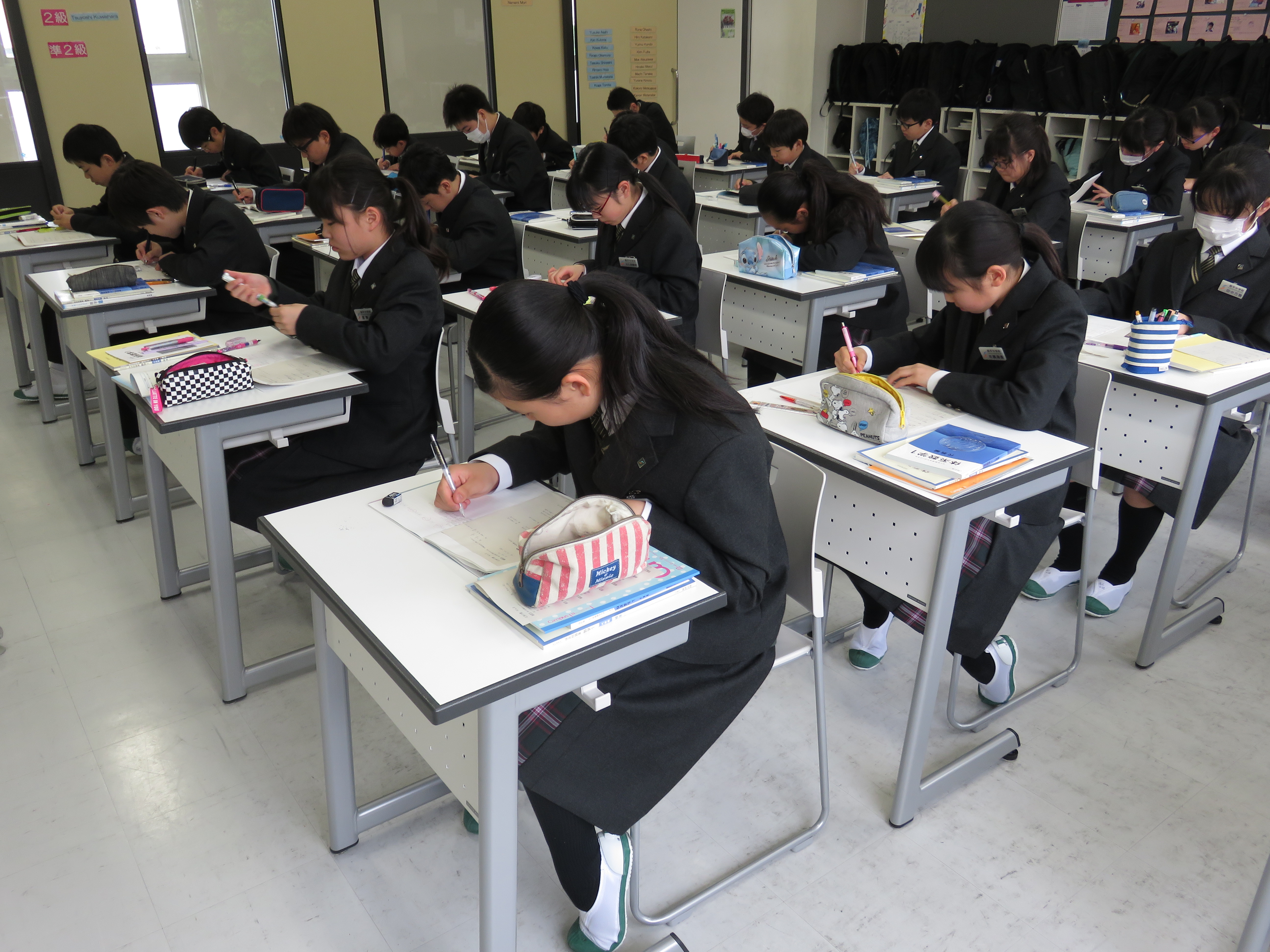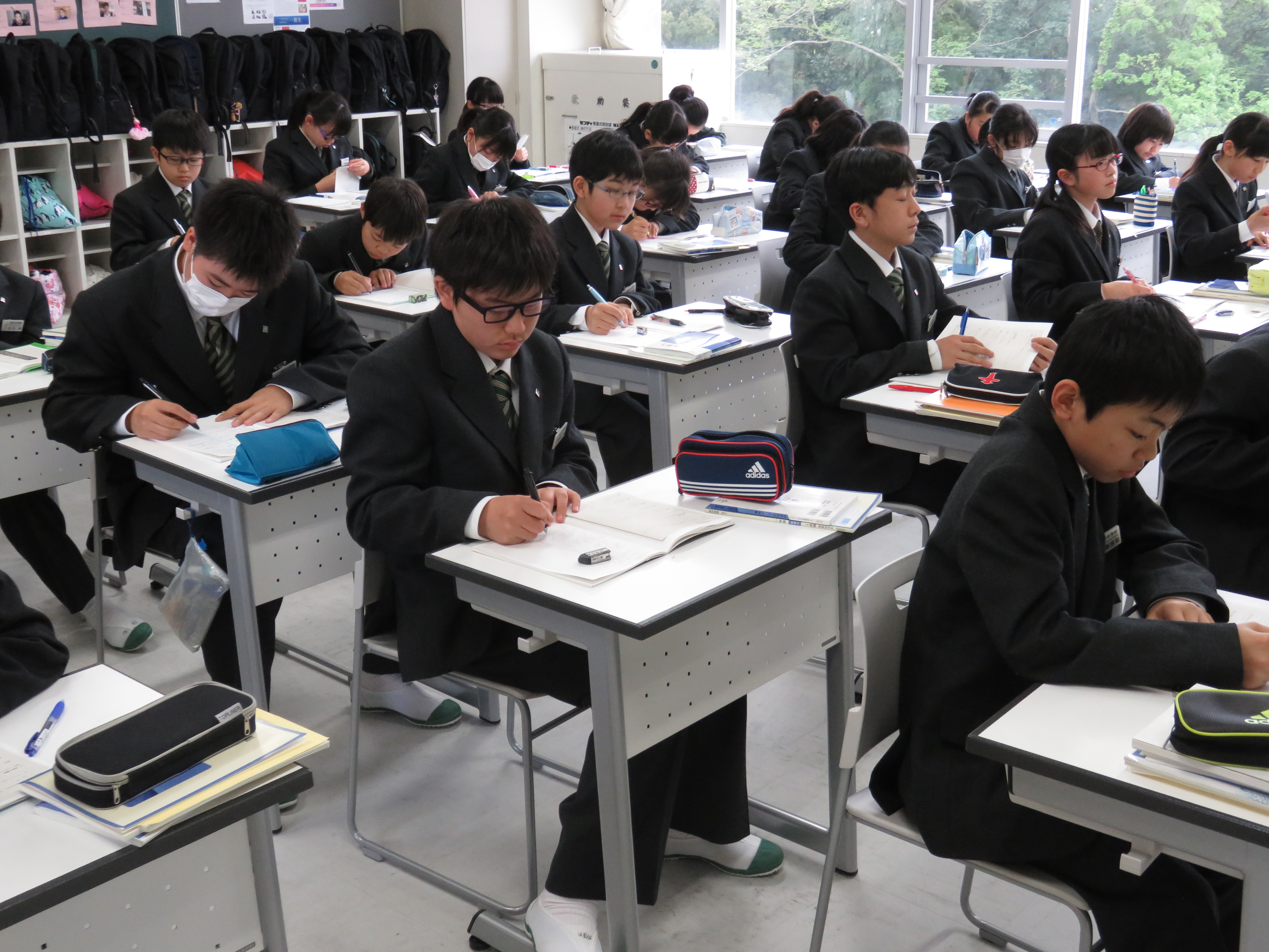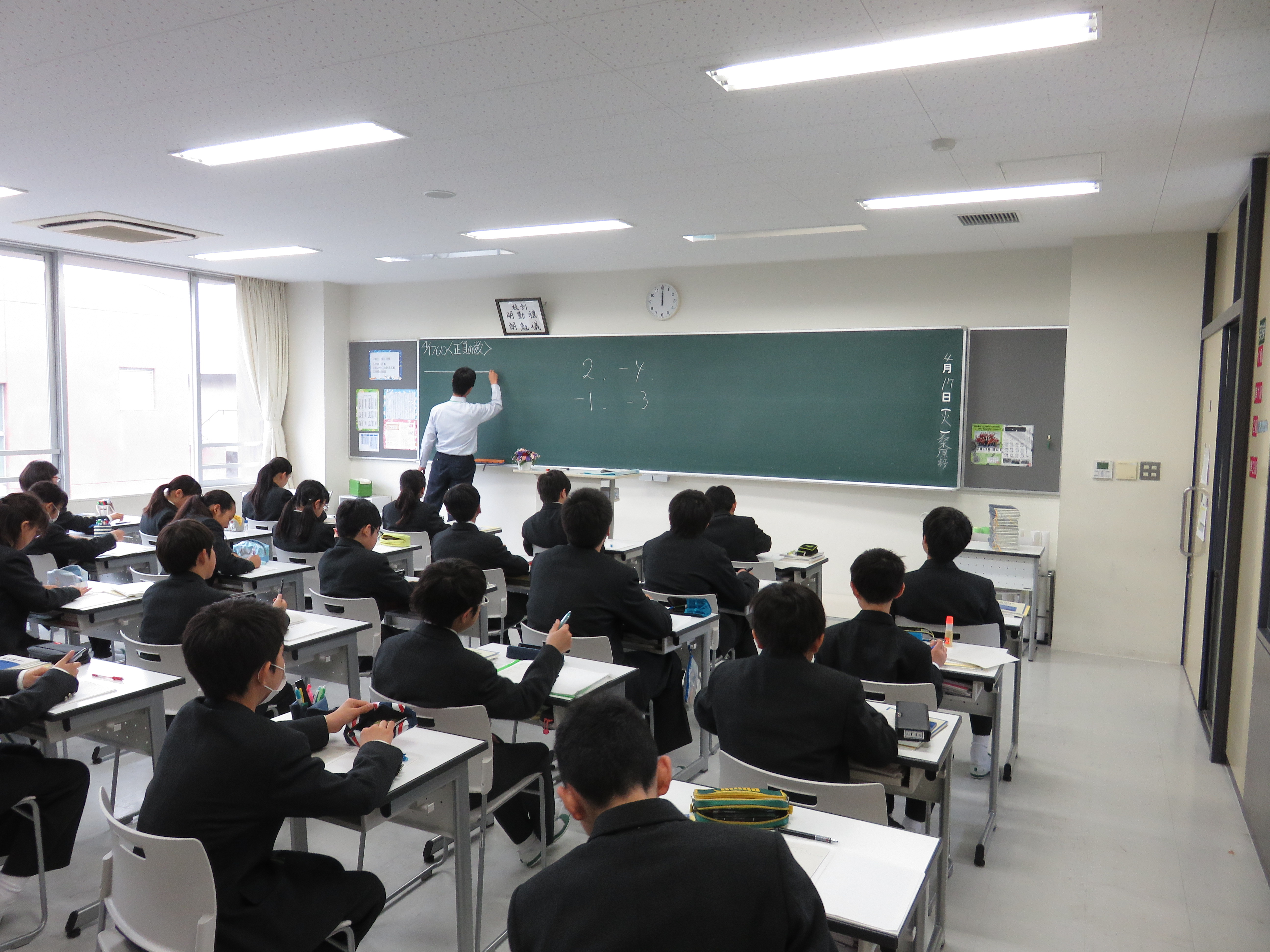 今日は、「数学」の学び始めの「正負の数」です。(+2)+(+3)が、どうして(+5)になるのかを、数直線を使って「算数」と「数学」の考え方の違いを説明しました。