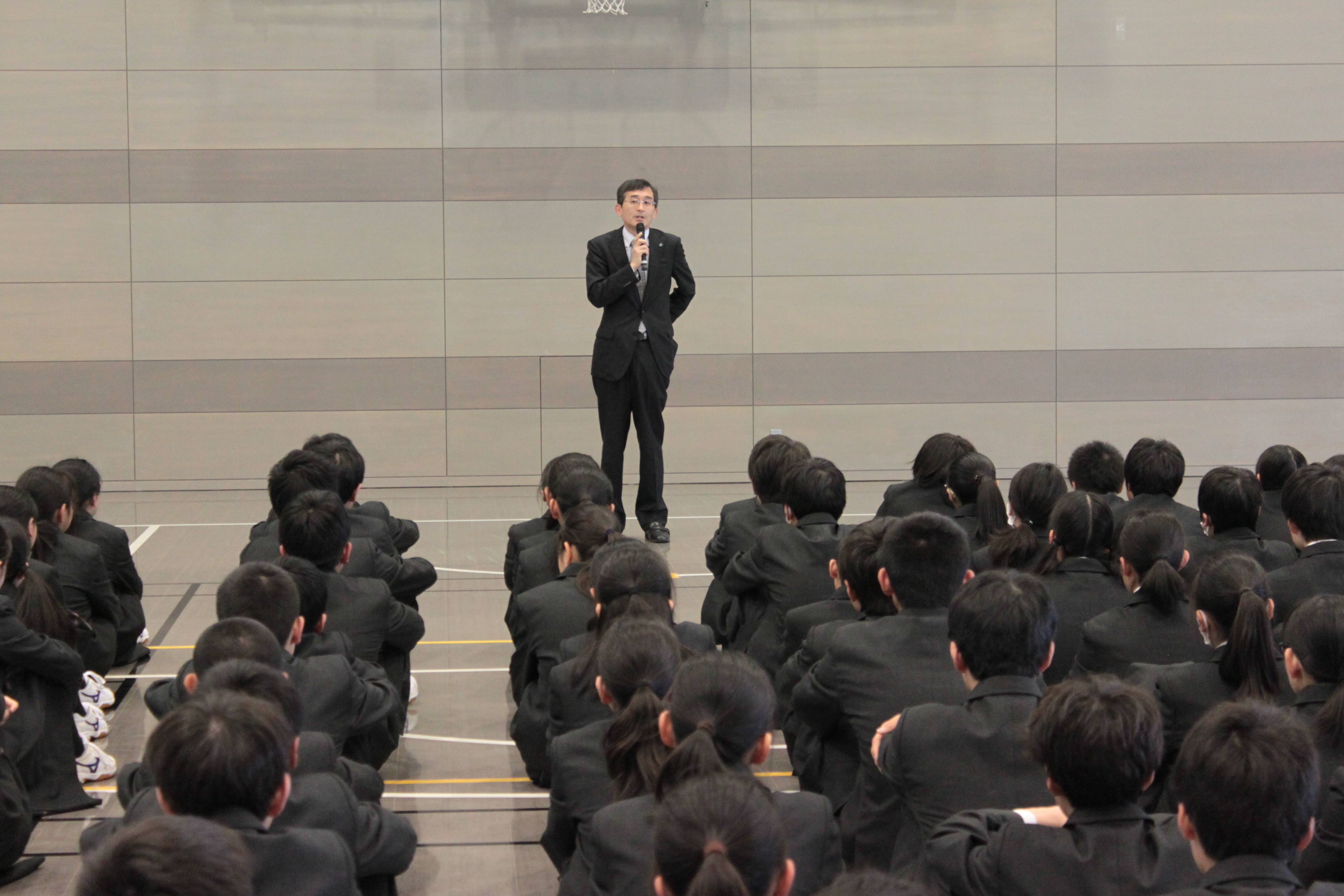 新入生が加わってから初めての朝礼が行われました。初めは緊張をしていた1年生でしたが校長先生の話を真剣な目で聞き入っていました。城川校長からは新年度が始まって1ヶ月が過ぎ、ここまでの学校生活を振り返ることが大切だと生徒へ伝えていました。特に、上手くいかなかった事は自分で考え工夫することで改善していき、より充実した学校生活となるようにしようというお話がありました。