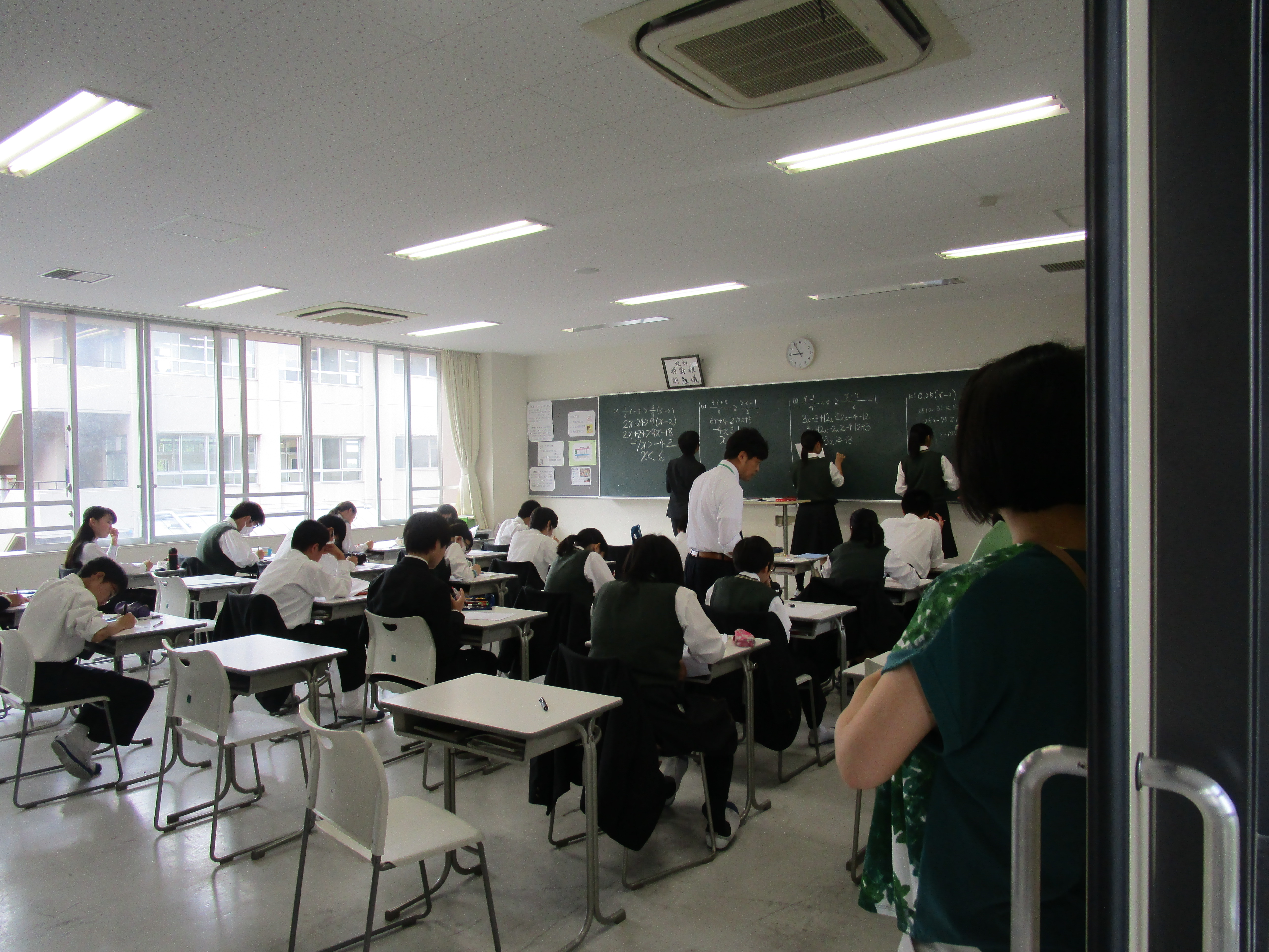 夜来の雨も上がり、爽やかに晴れた19日、PTA総会が行われました。総会に先がけ1・2時間目の授業参観から多くの保護者が来校。とりわけ1年生は100パーセント近い出席率で、教室に入りきれない保護者が多数。教室のエアコンも効かないほどの熱気の中での授業になりました。