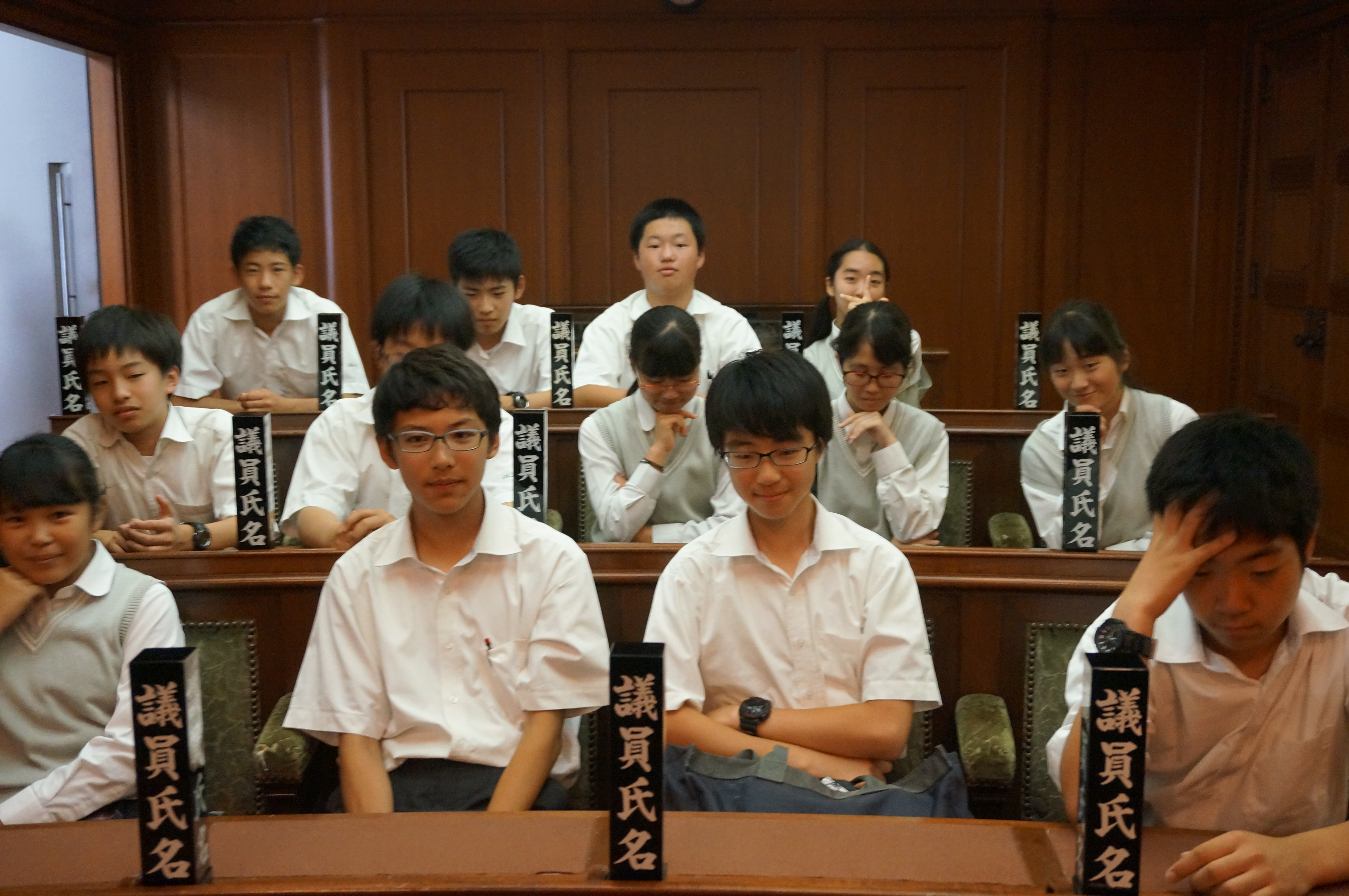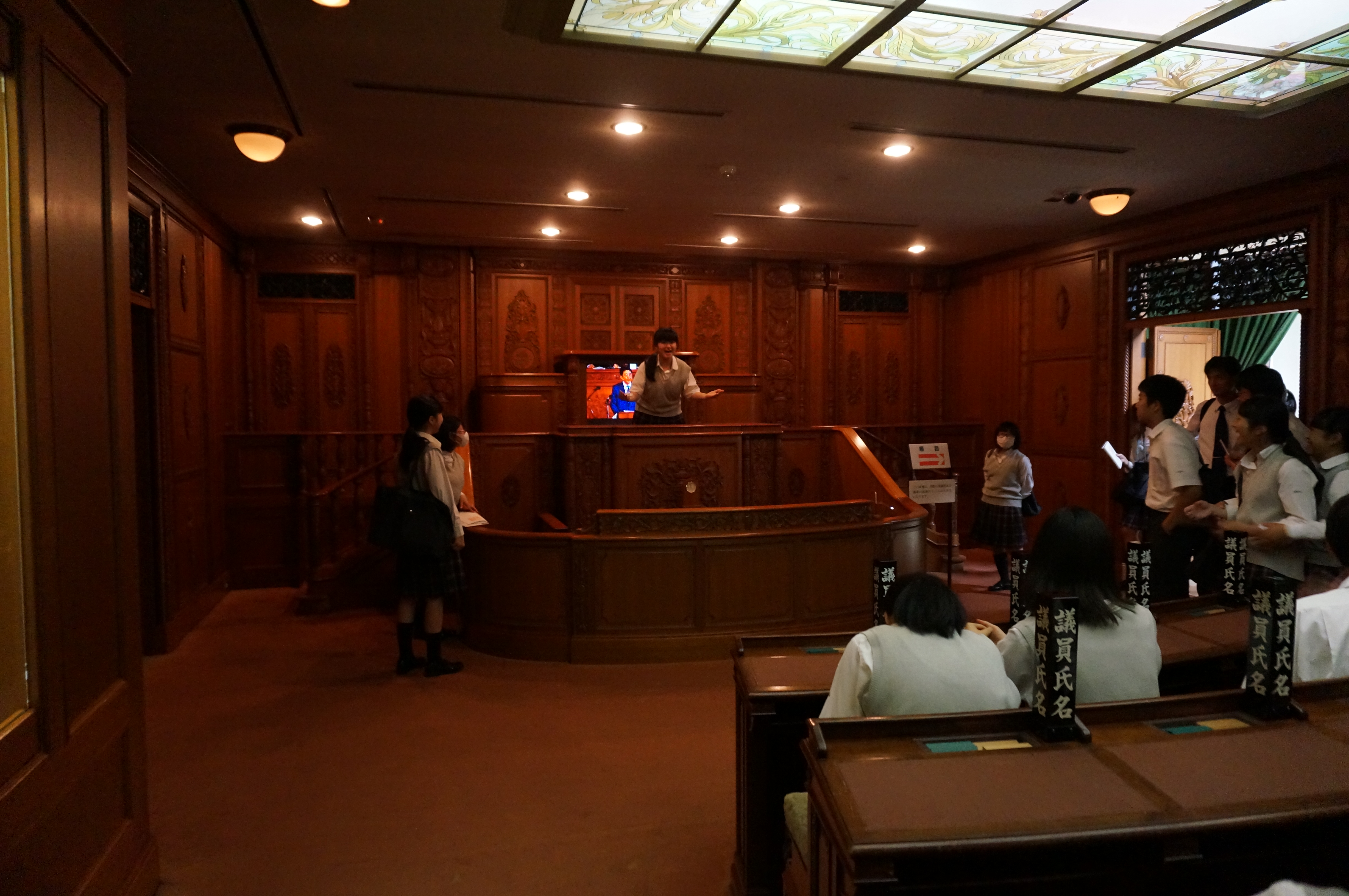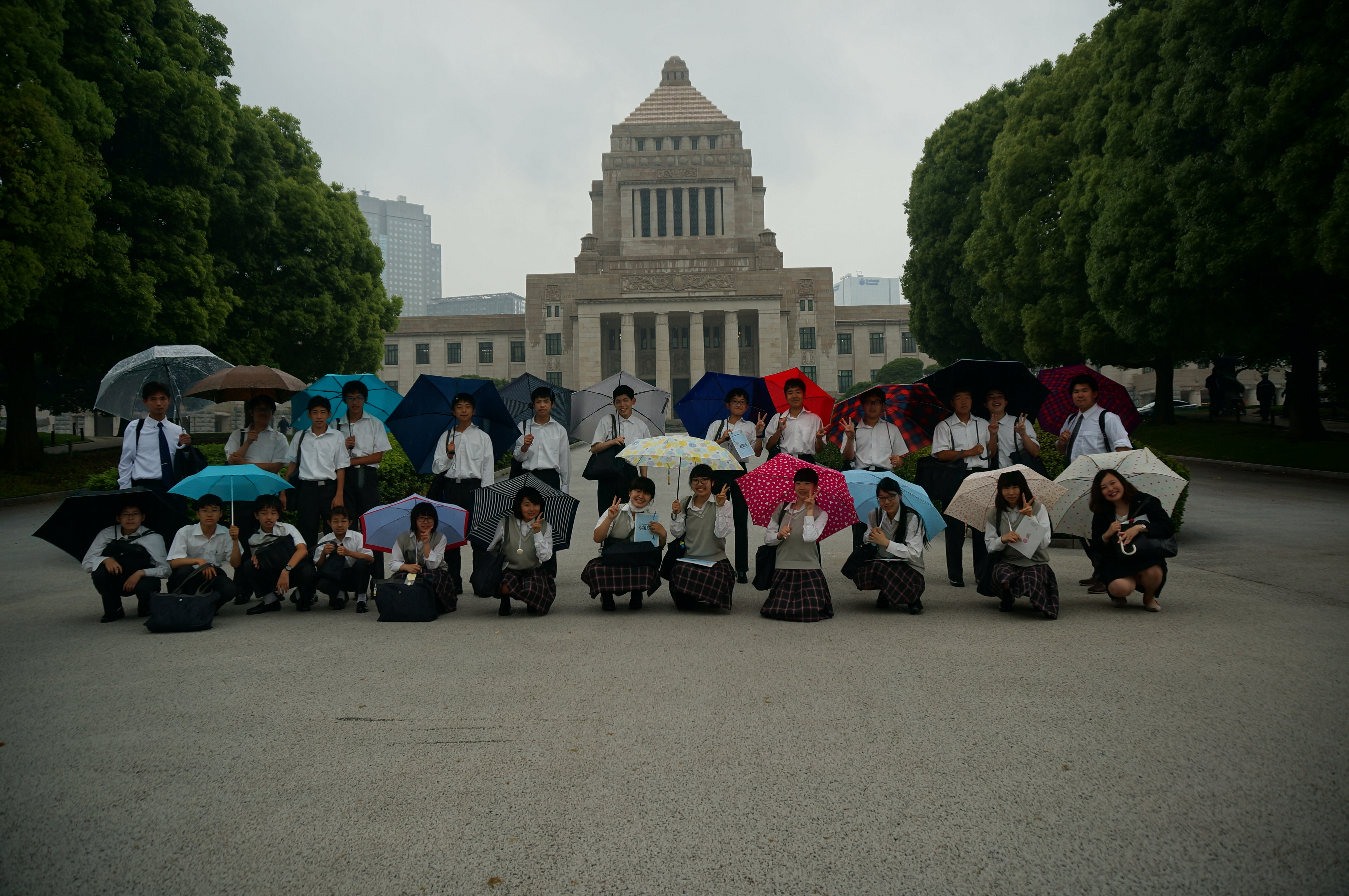 6月6日に校外学習が行われ、中学3年生は霞ヶ関の東京地方裁判所、憲政記念館、参議院に訪問しました。これから、公民の授業で学習することになる三権分立や法案が決されるまでの過程などを熱心に学習しました。これらの学習を元に、7月11日には校内で模擬裁判が行われます。