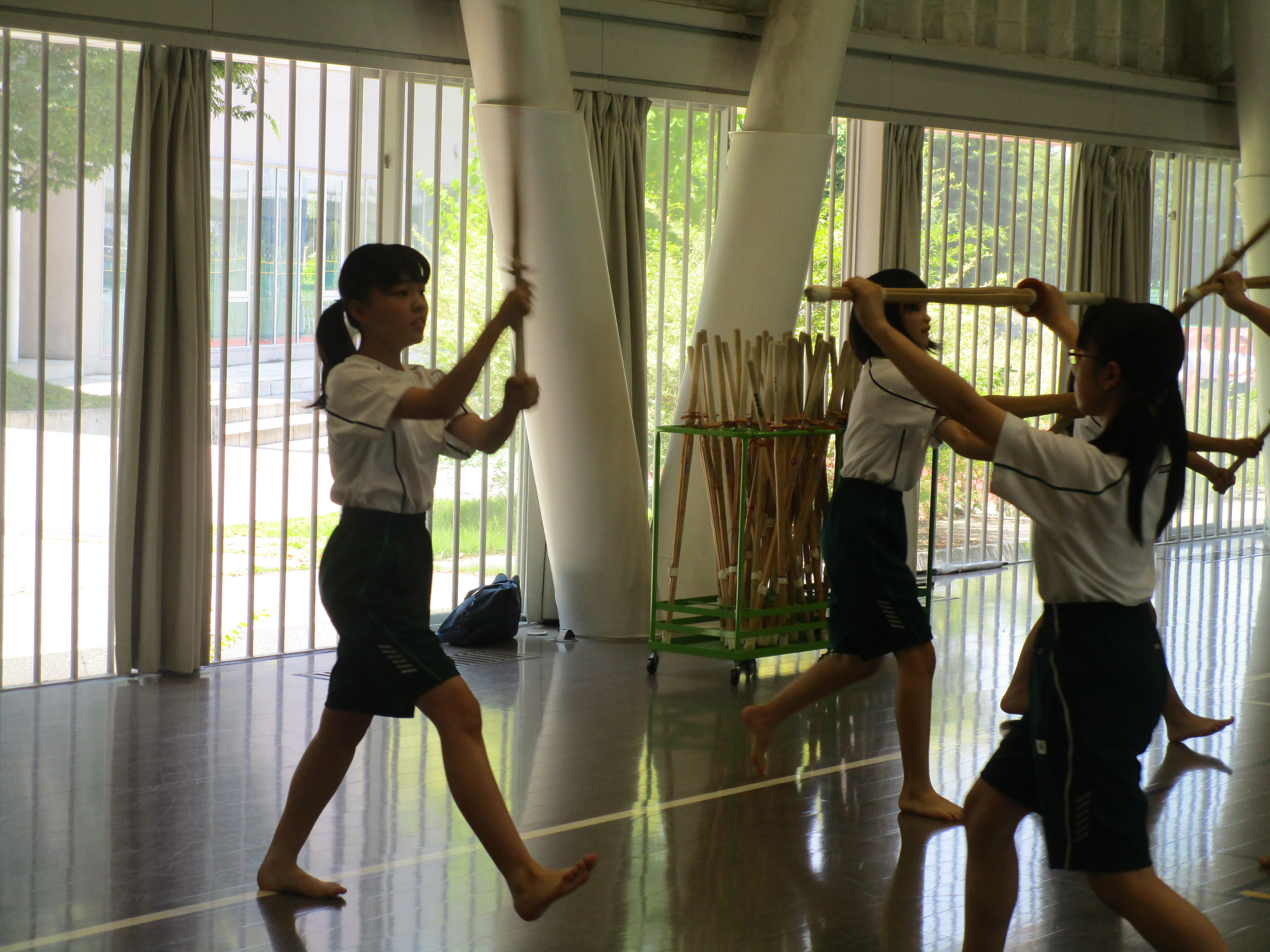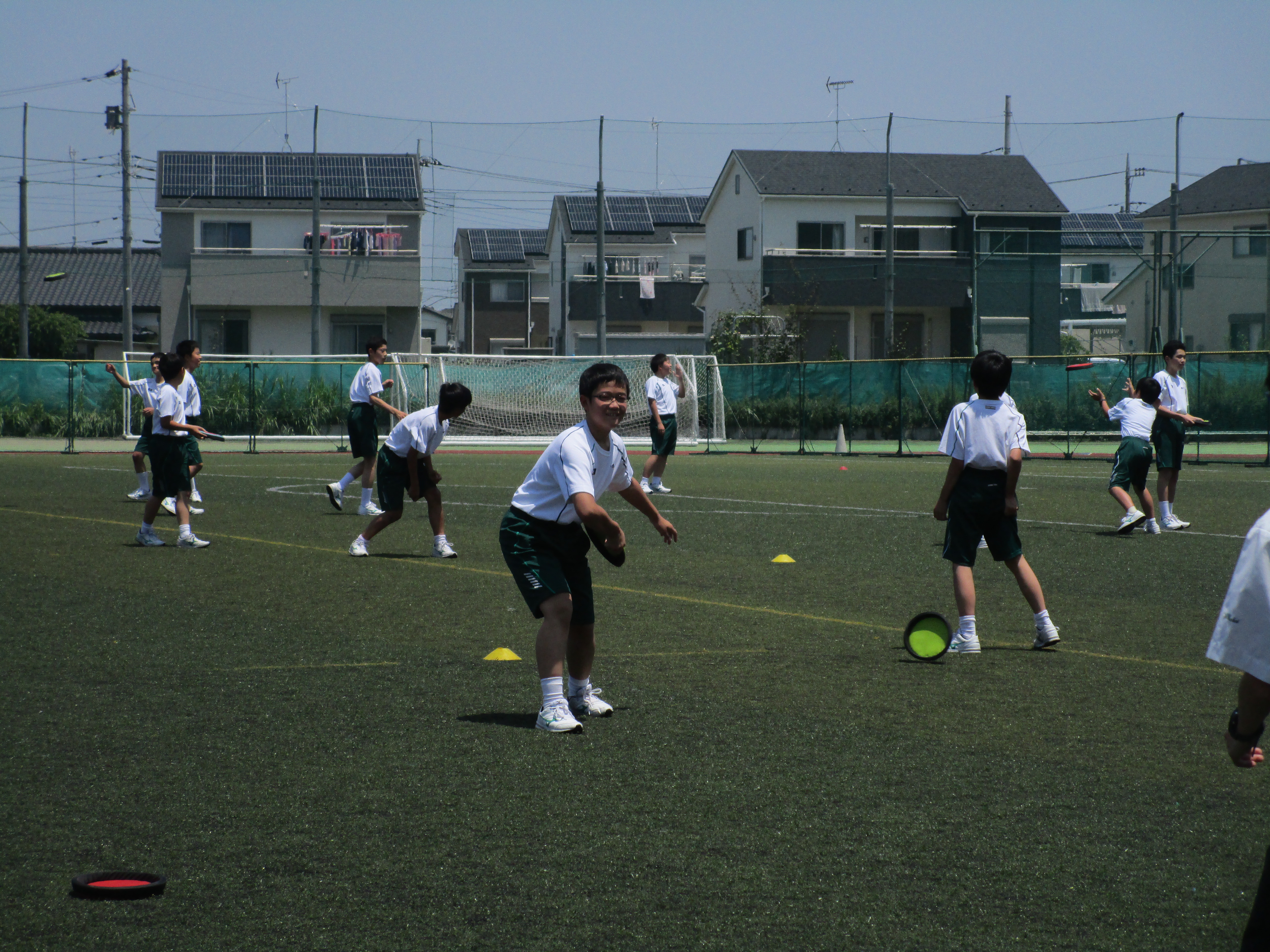 中1は今、体育の授業でドッジビーと剣道をしています。ニュースポーツの一つであるドッジビーはフリスビーを使って競技をします。日本の伝統的な武道である剣道とニュースポーツであるドッジビー。両方のスポーツを男女ともに上手になりたいという気持ちを持って頑張っています。昌平中学の体育はIB(国際バカロレア)教育を行なっていますので、新しい単元の前には事前に剣道とドッジビーの調べ学習をし、レポートと新聞を作成しました。そして毎時間体育のあとには振り返りを記入し、次回さらに上達できるように学習をしています。
