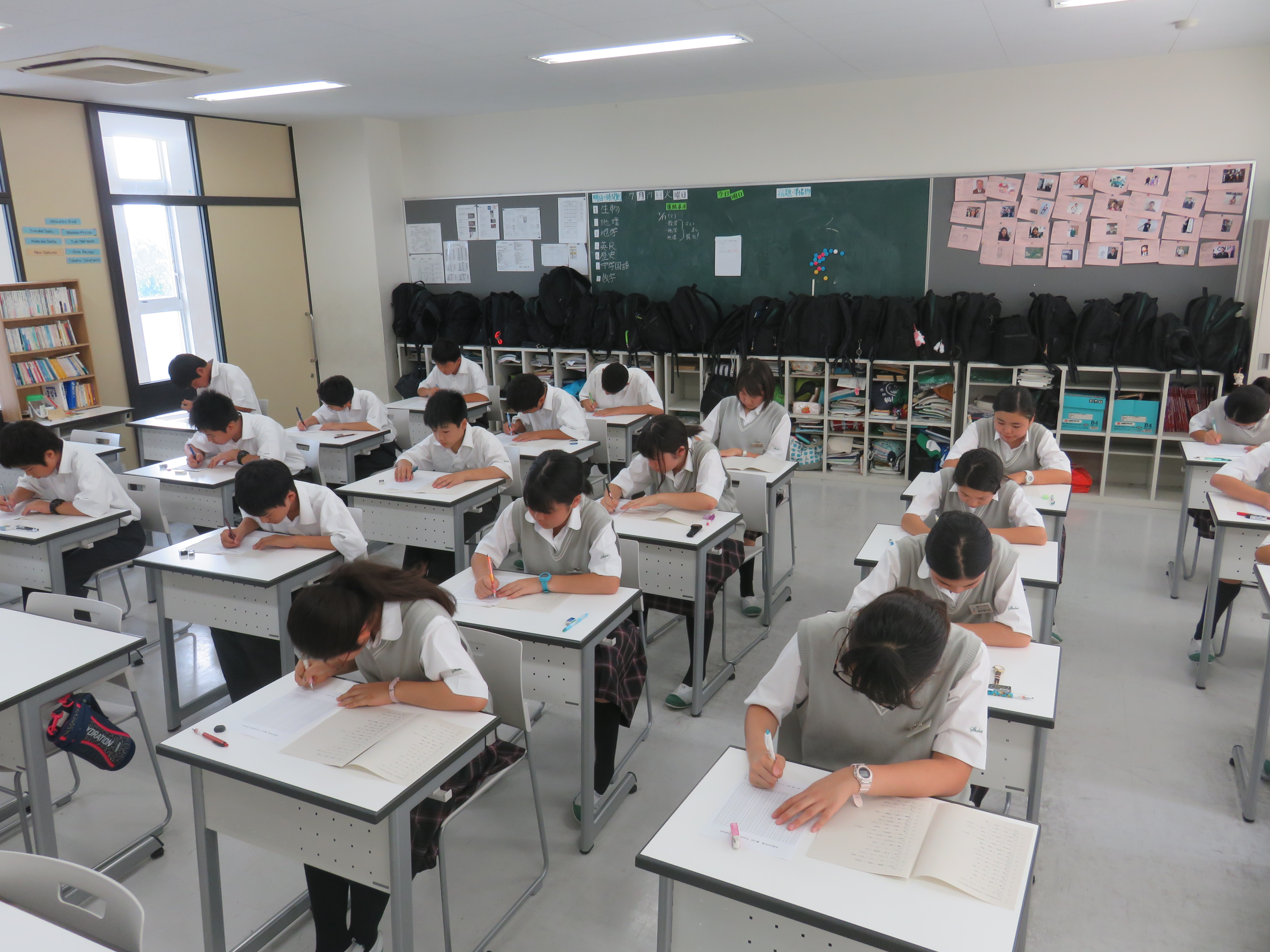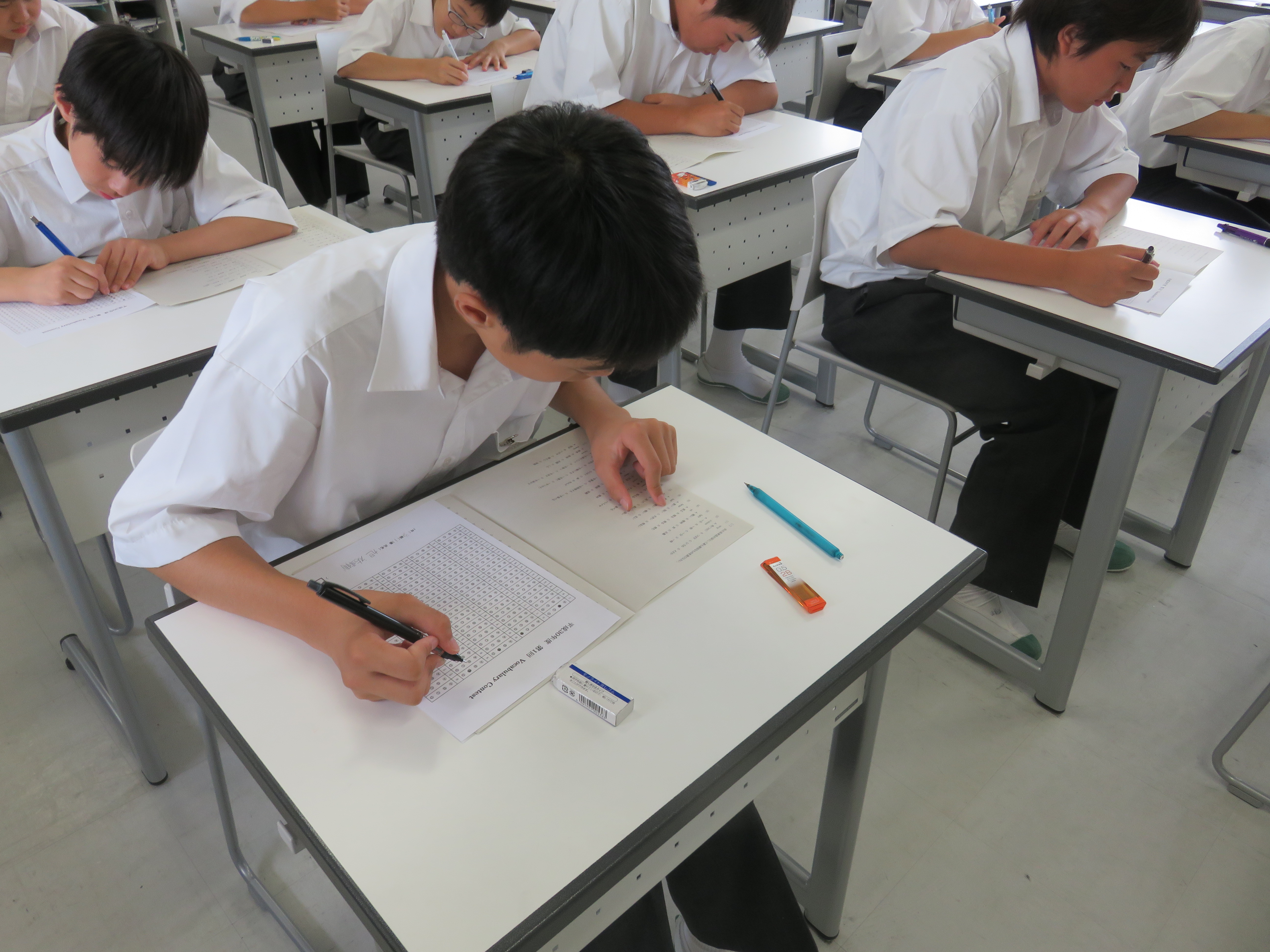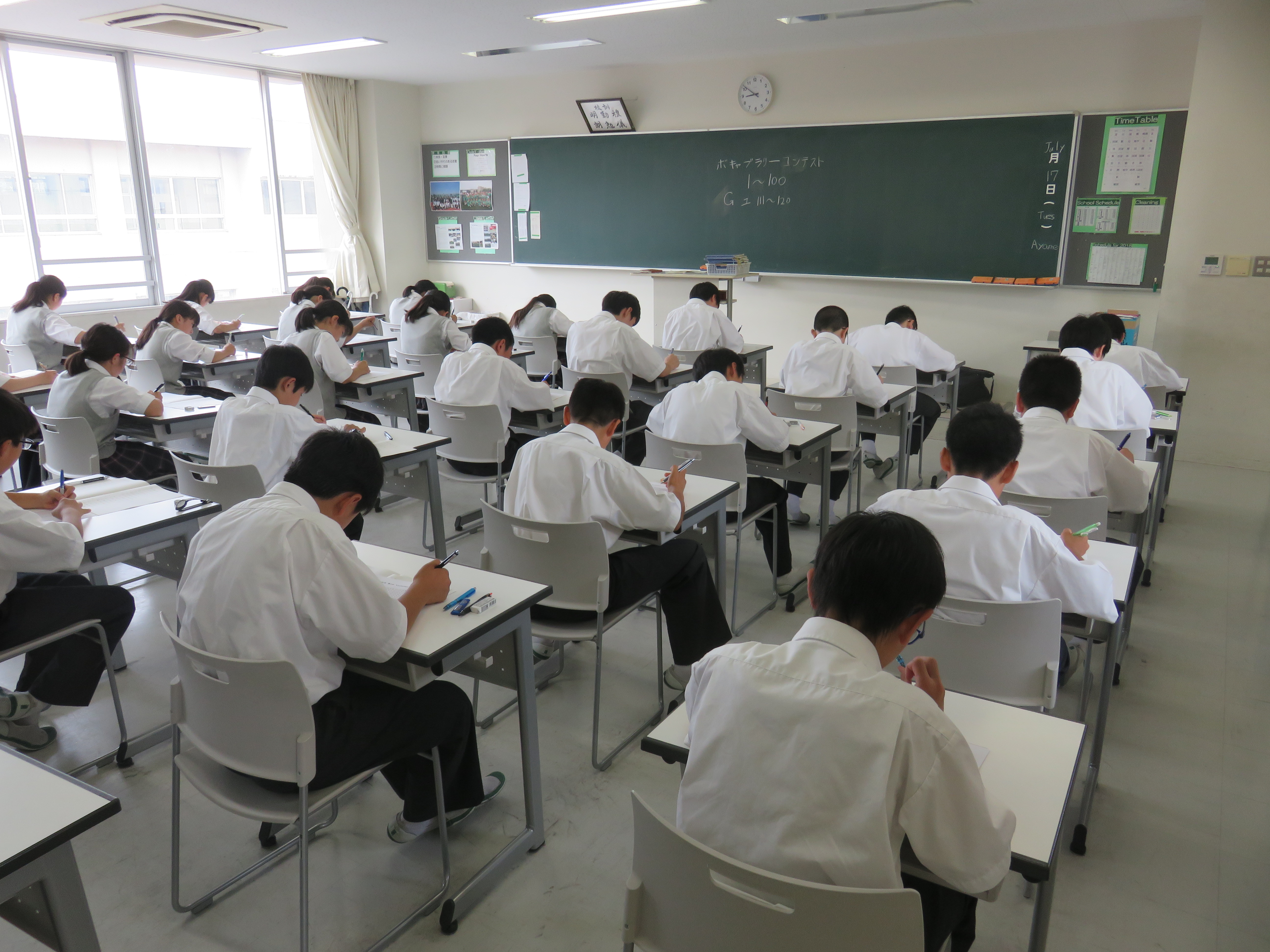第1回 ボキャブラリー・コンテストを実施しました。本校では、PEP(パワー・イングリッシュ・プロジェクト)の一環として、ボキャブラリー・コンテストを毎学期末に中高全学一斉で行っています。週3回の朝単語テストの成果を試すべく、初受験の中学1年生は100問、中学2・3年生は200問のテストに挑戦しました。