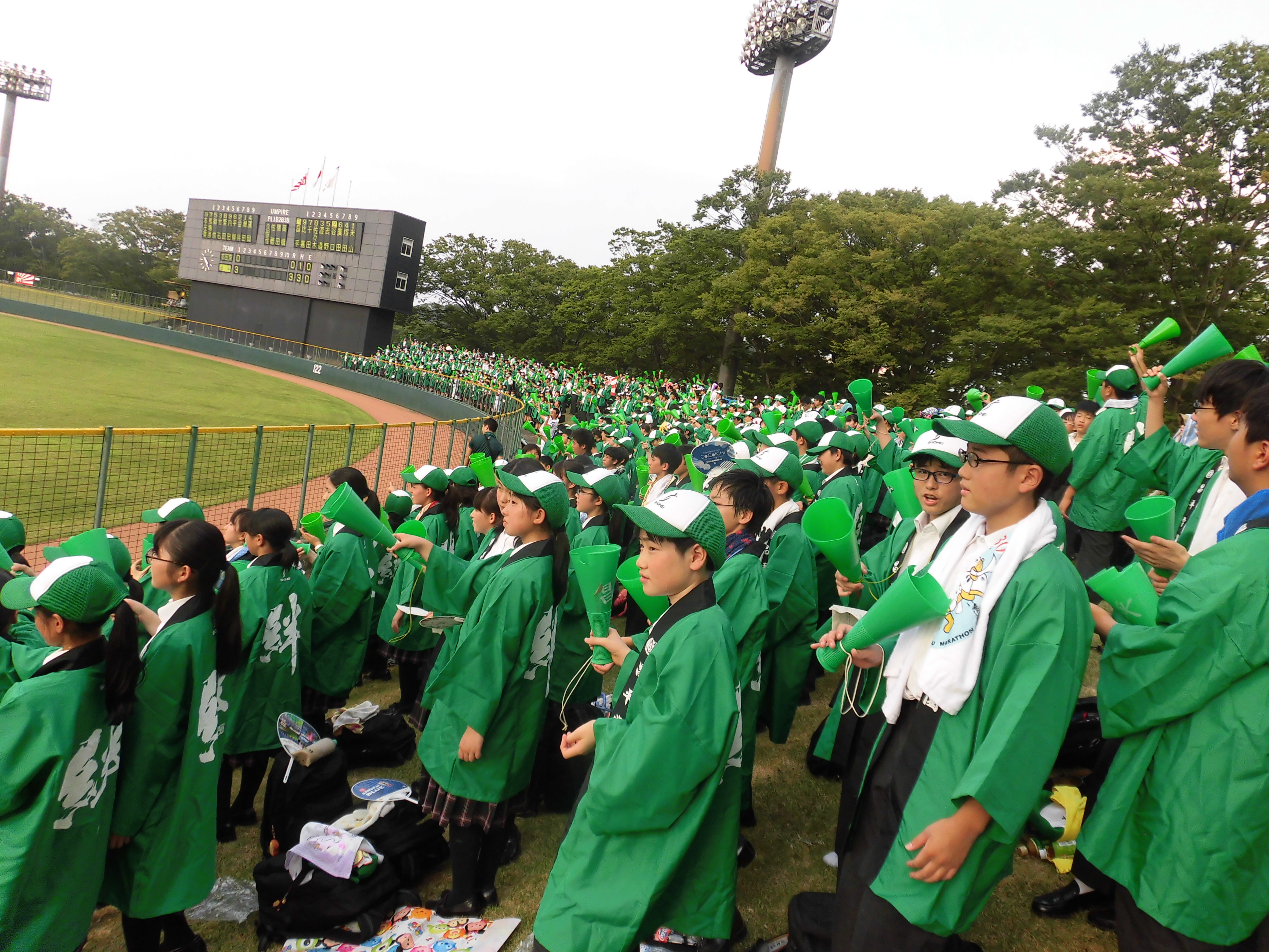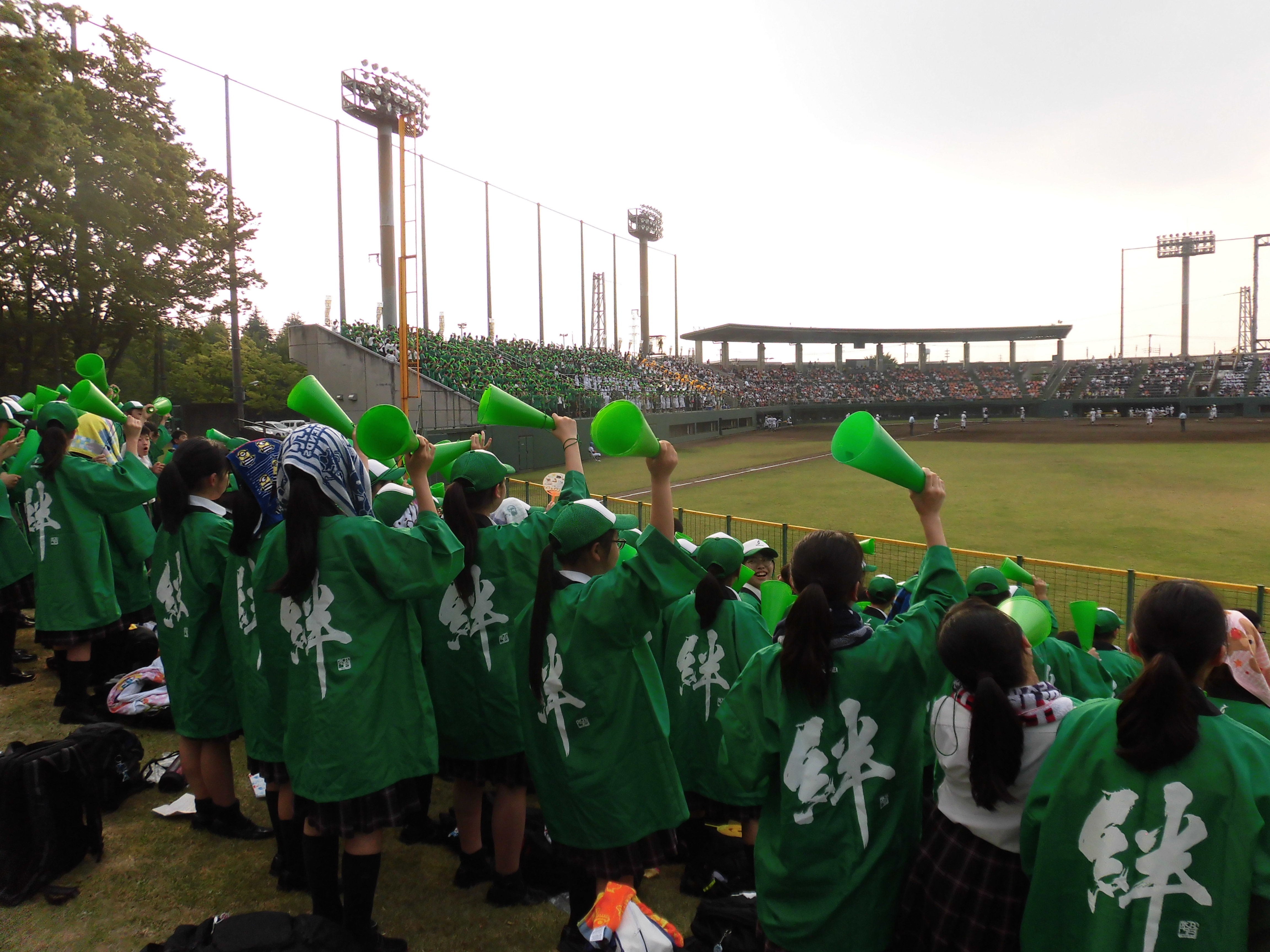 7月18日(水)、第100回全国高等学校野球選手権記念北埼玉大会の準々決勝の応援に中学生が参加しました。暑い中、高校野球部の頑張りと高校生たちの応援に圧倒されながら、メガホンを握って一生懸命に応援していました。本校は本庄東高校に13−3で勝利。準決勝は22日(日)12:30から県営大宮球場にて、上尾高校と対戦します。中学生は有志応援となります。参加する人は熱中症対策を充分に行ってください。