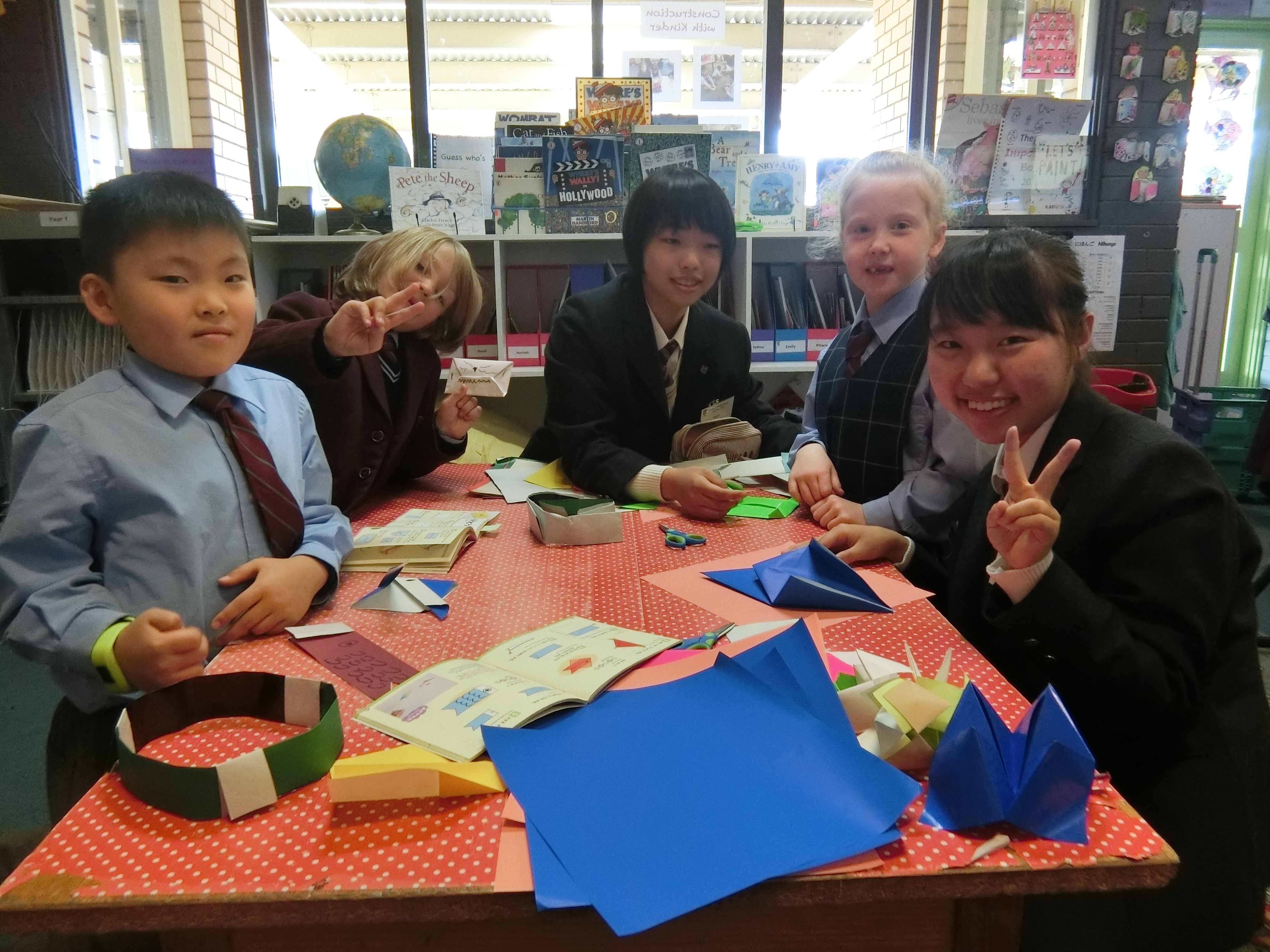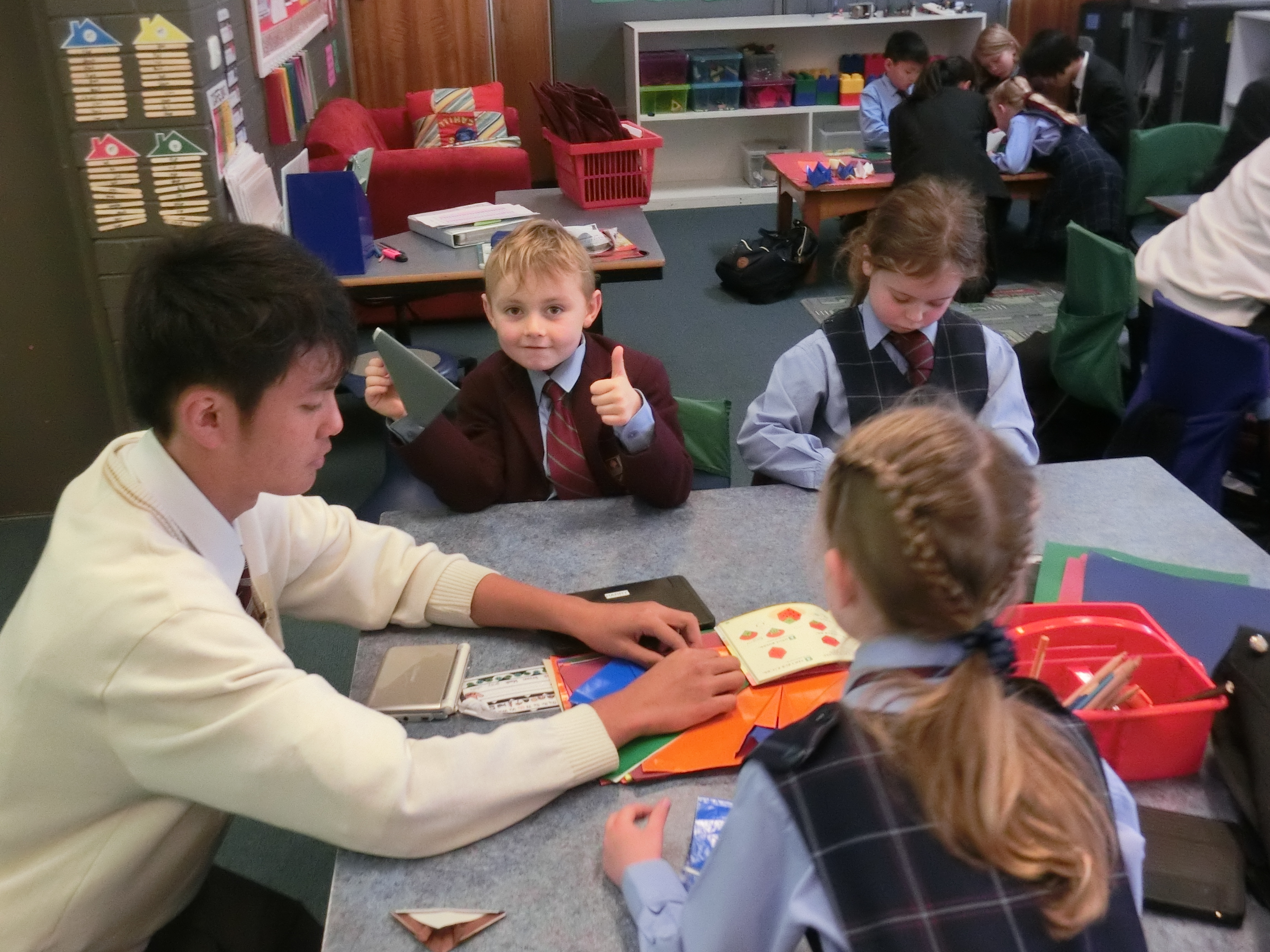 本日からスコッツスクールに通い始めました。先に交換留学生として通っている、遠藤君と宮廻君も元気に過ごしており、スコッツスクールに溶け込んでいました。本日はそれぞれバディと授業に参加したり、小学校、幼稚園でおりがみを教えたり、スクールツアーに参加したりしました。おりがみは日本の伝統的な文化で、昔はたくさん作っていたものも忘れていることが多く、改めて日本の文化を楽しみました。生徒たちは試行錯誤しながらも、上手に子供たちに教えており、子供たちも夢中になり、喜んでいました。