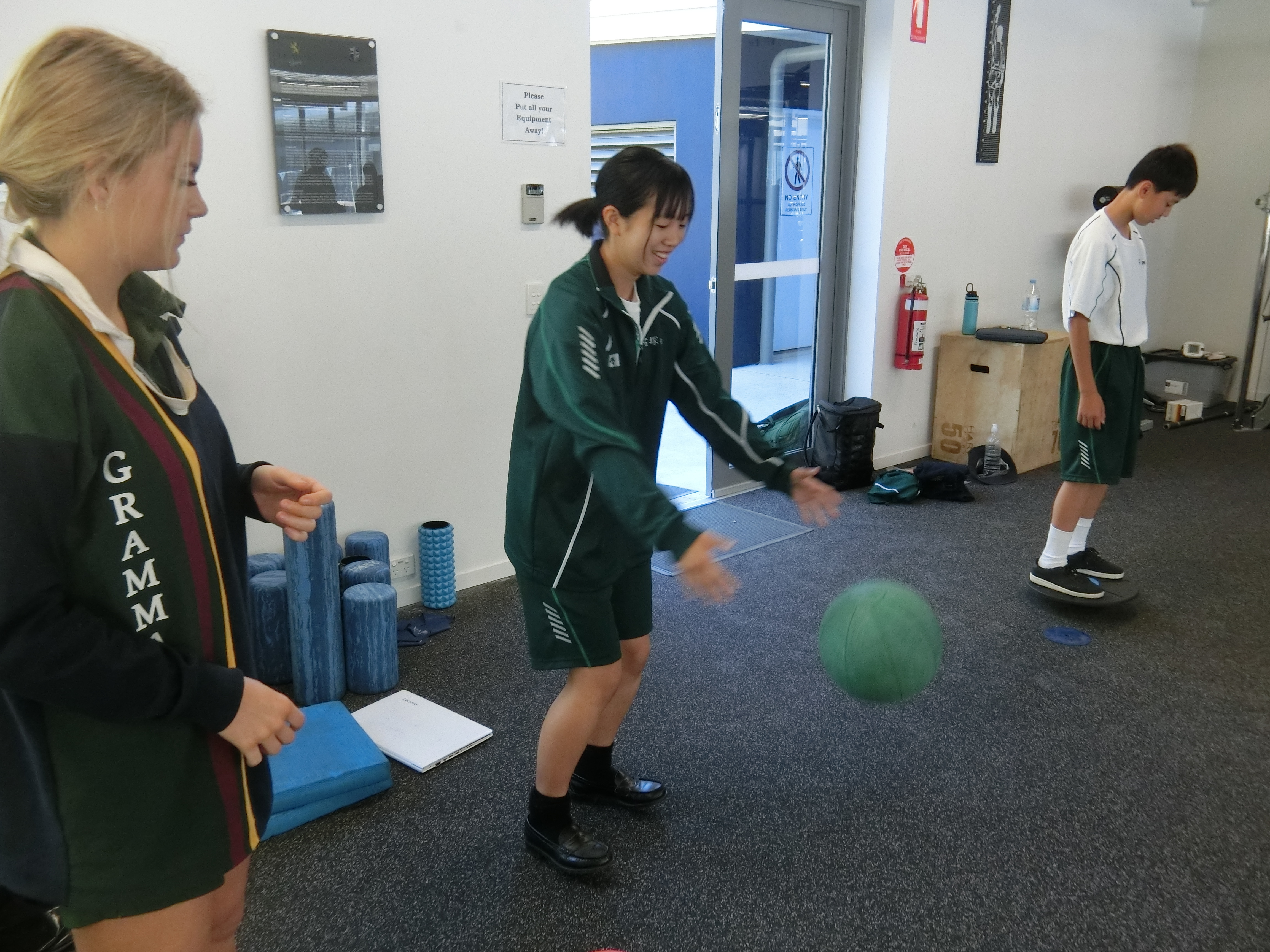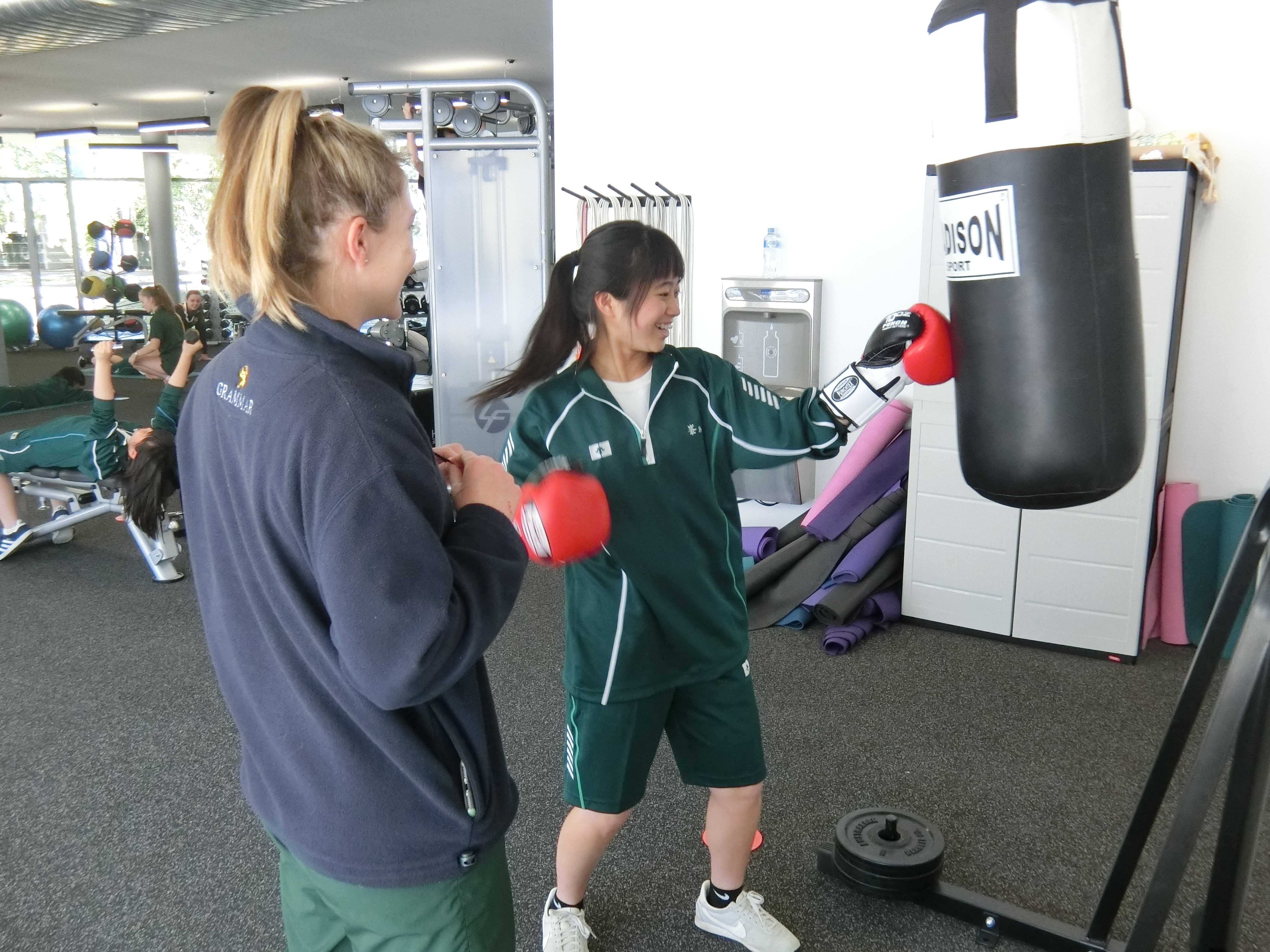 本日1時間目はフィットネスの授業があり、昨年できたフィットネスジムを使用しました。器具の多さや本格的なトレーニングに驚きましたが、汗をかきながらも、筋トレに励んでいました。日本ではなかなかできない授業なので、”Hard!”と言いながらも楽しんでいました。授業にも慣れてきたようで、積極的にノートをとる様子や、質問をされた時にも、がんばって答えていました。小学校の授業におじゃましたグループは、日本に関する質問タイムが設けられ、「日本とオーストラリアの学校の違いは何ですか?」に対し、「日本は1つの教室で先生が来て授業をするのがほとんどだけれども、オーストラリアでは生徒が移動する」など興味深い質問にも上手に答えていました。明日が学校で過ごす最終日となります。それぞれが楽しみ、素敵な思い出を作ってほしいなと思います。