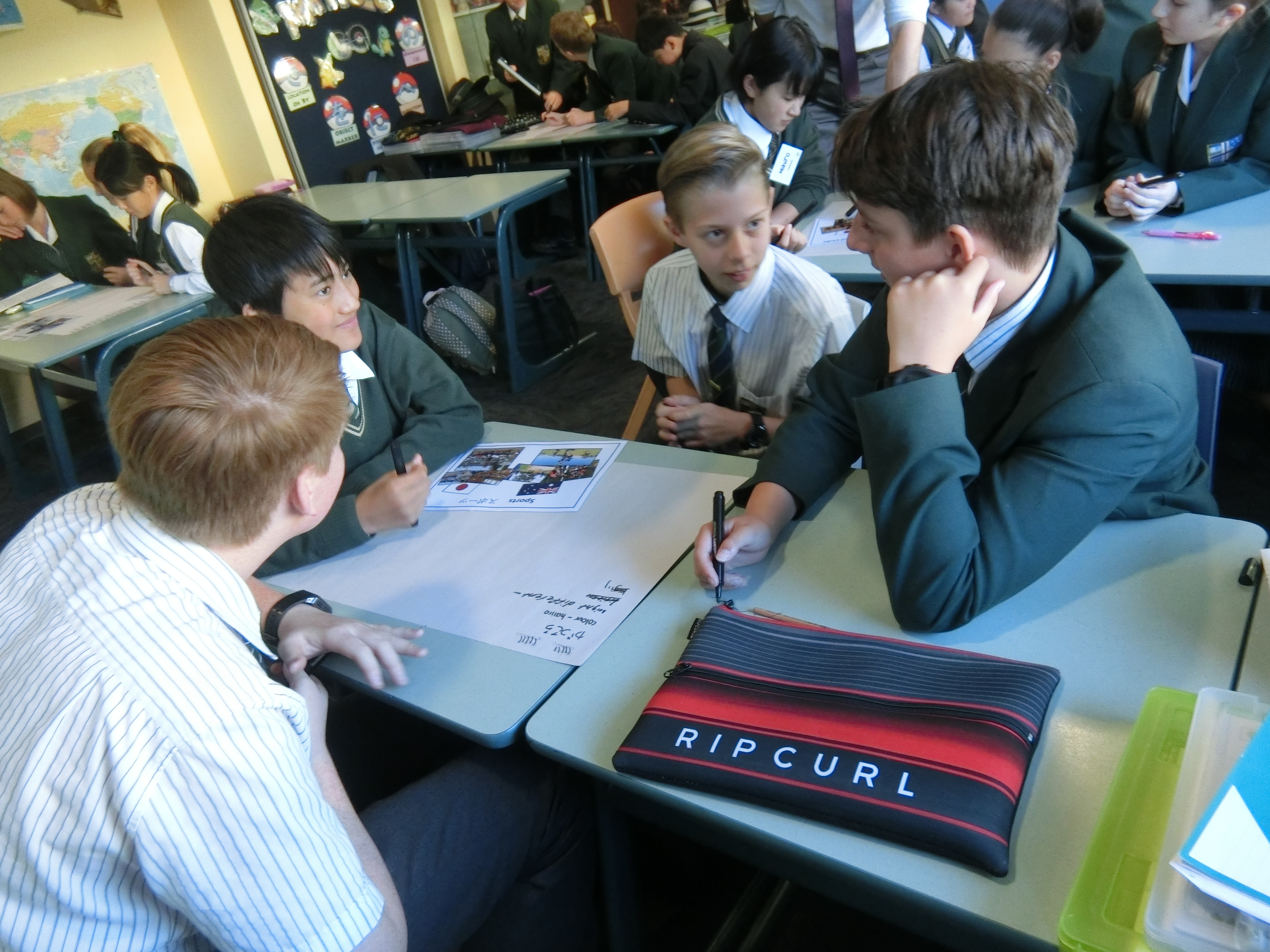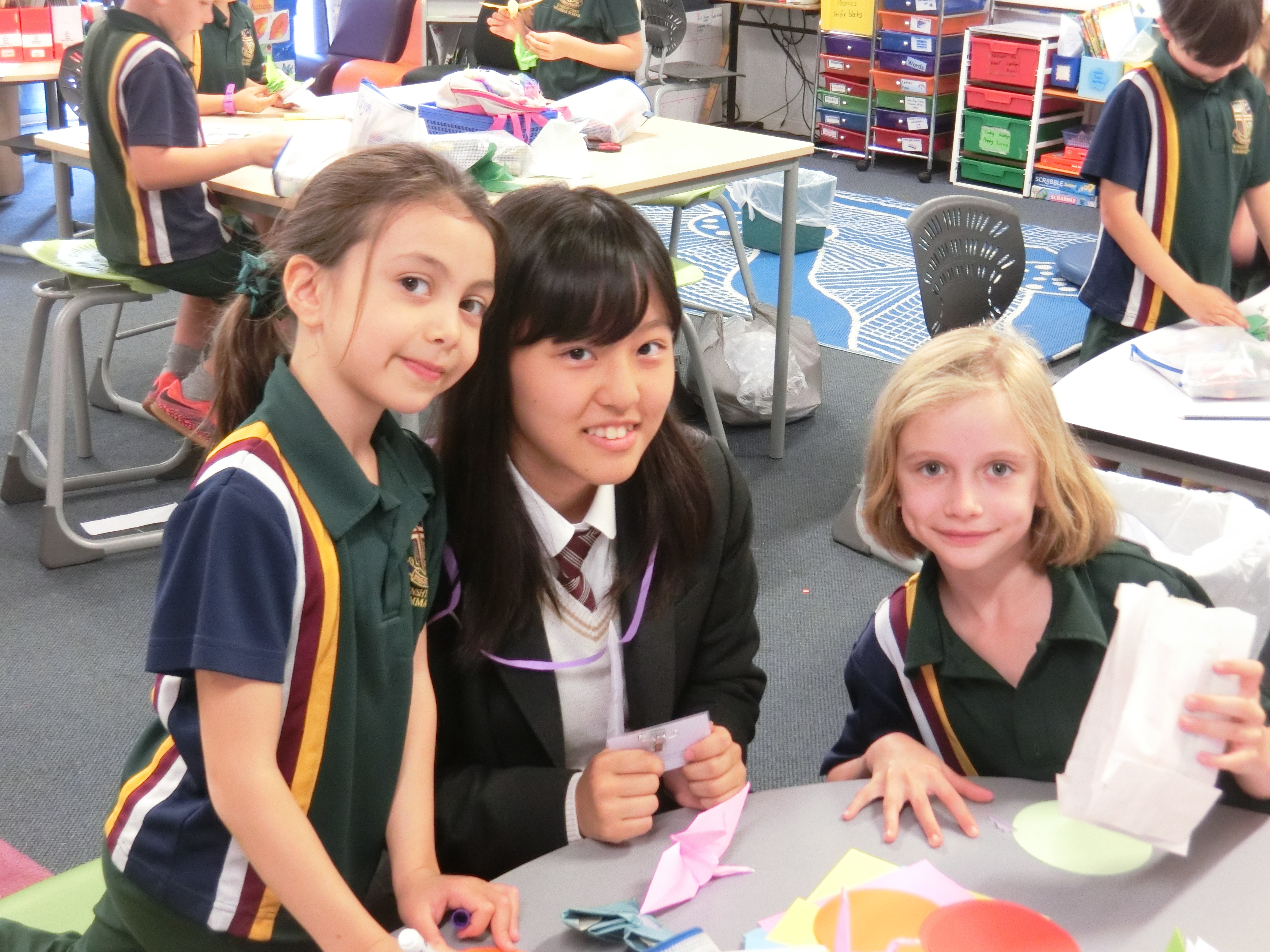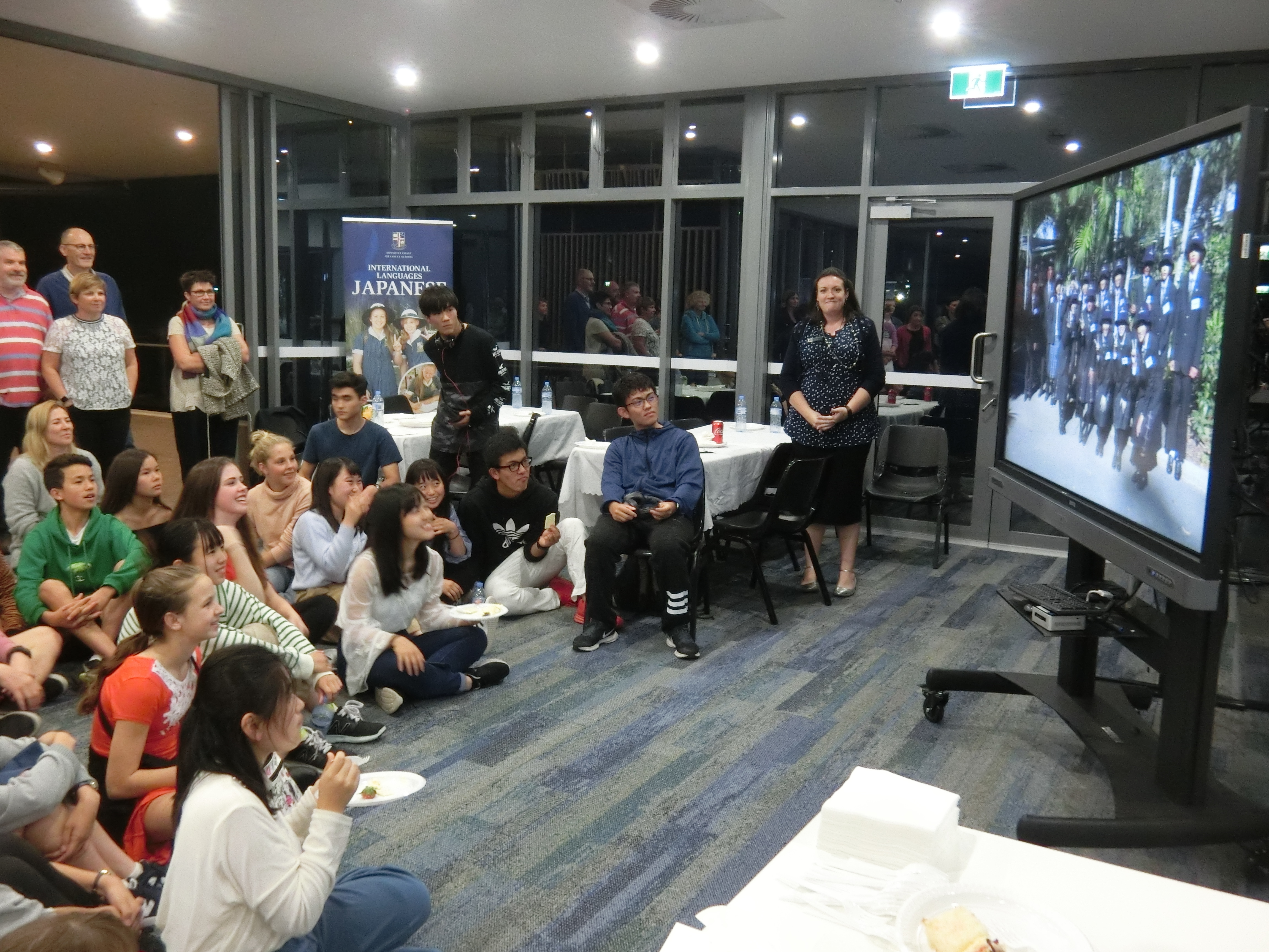 今日は学校で過ごす最後の日です。1時間目は全員で、ホストファミリーへの手紙を書きました。各自日本から持参した素敵なカードに、それぞれの思いを英語で表現しました。授業にも慣れてきたところでの最終日なので残念がる生徒がとても多く、積極的にコミュニケーションをとる姿が見られました。日本語のクラスでは、中学1年生と一緒に日本とオーストラリアの学校の違いについてディスカッションを行い、ポスターにまとめました。興味深い違いや共通点に、クラスの生徒たちも驚いていました。また、プレスクールにおじゃまし、おりがみを教えたり、外で遊んだりしました。大人気で授業後はクタクタになって帰ってきました。そして、本日夜に、farewell party(送別会)が行われました。最初はそれぞれホストファミリーやバディとの会話を楽しみ、その後、よさこいを披露しました。日本の伝統的なはっぴや踊りに、歓声が上がりました。そして下館さん(2-11)の代表のスピーチの後、それぞれの家族に手紙を渡し感謝の気持ちを伝えました。最後は全員でケーキを食べながら、思い出ムービーを見て、笑いあり、涙ありのお別れ会になりました。学校は本日で最後ですが、週末はそれぞれホストと過ごします。たくさんの思い出を作って日本に持ち帰ってください。