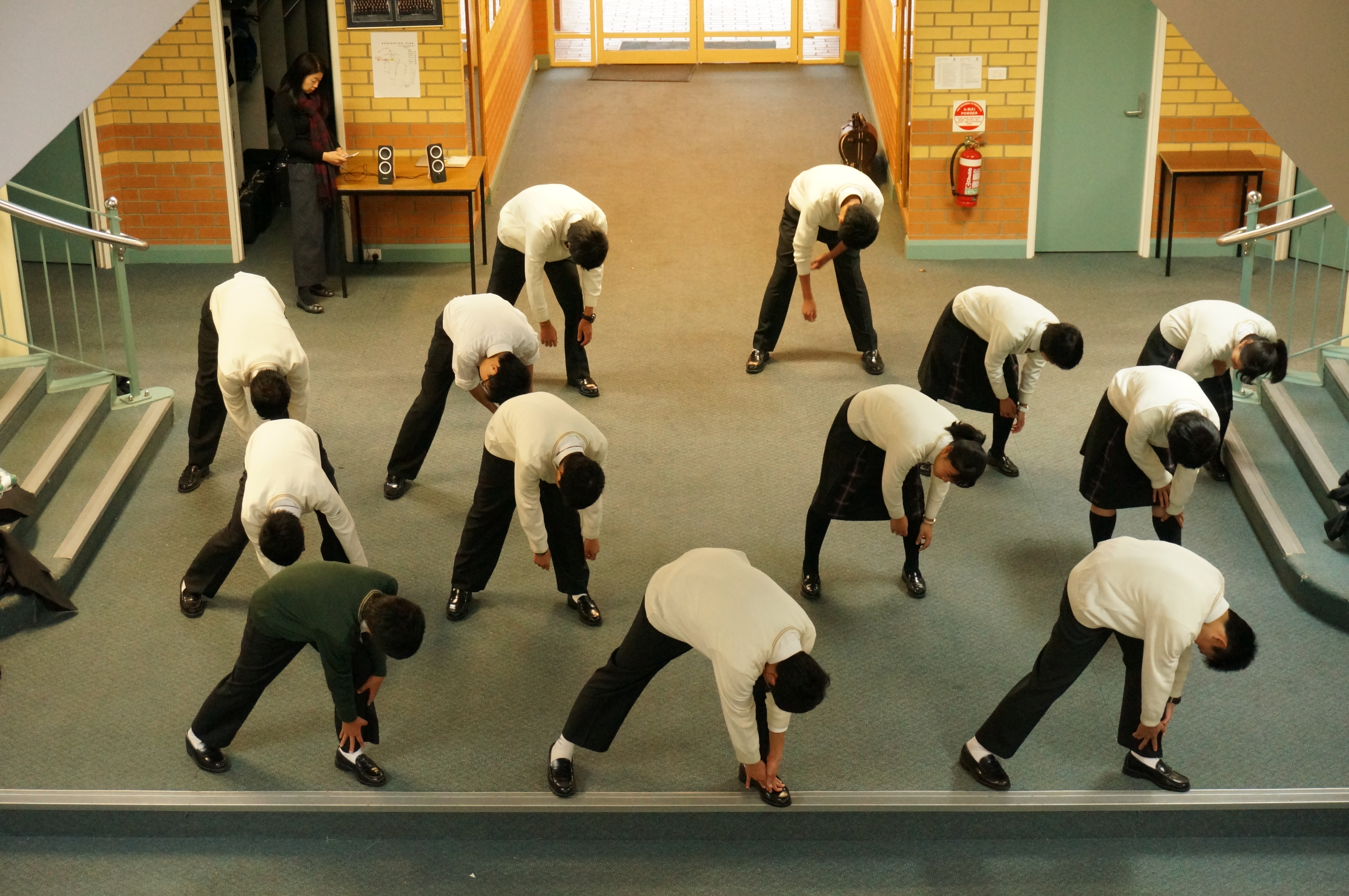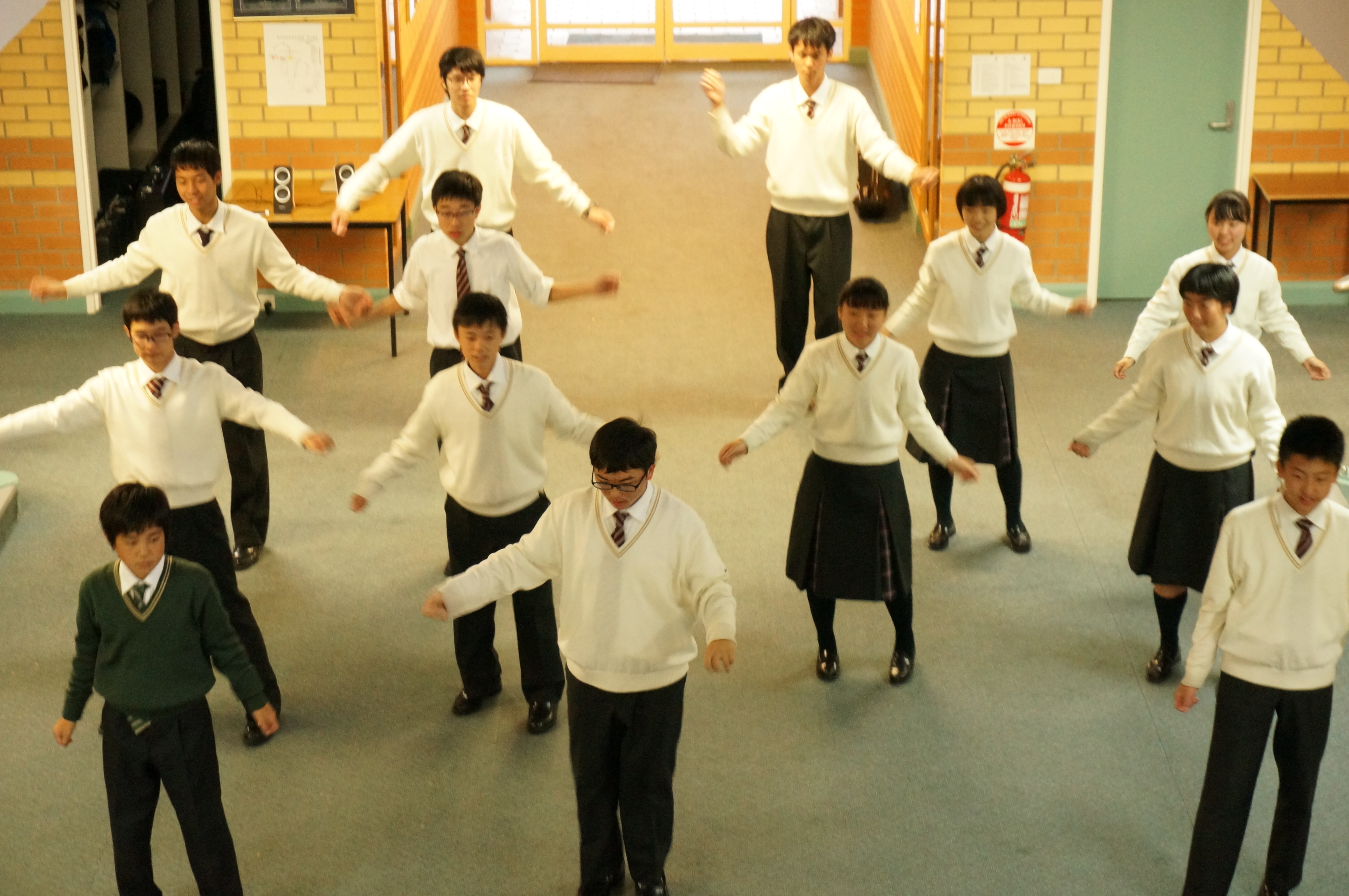 土曜日の今日は学校はお休みです。生徒達はそれぞれにホストファミリーと週末を楽しんでいることでしょう。日本の真冬と同じくらいの気温で、今の日本とは正反対の寒い日が毎日続きます。少し風邪気味の生徒もいますが、寒さを吹き飛ばすくらいの心温まる交流を最後まで楽しんでほしいと思います。今日は生徒達に会っていないので、昨日のよさこい練習の写真を載せます。少しアレンジをしてかっこよく仕上げました。明日のフェアウェルパーティ(送別会)で披露することになっています。