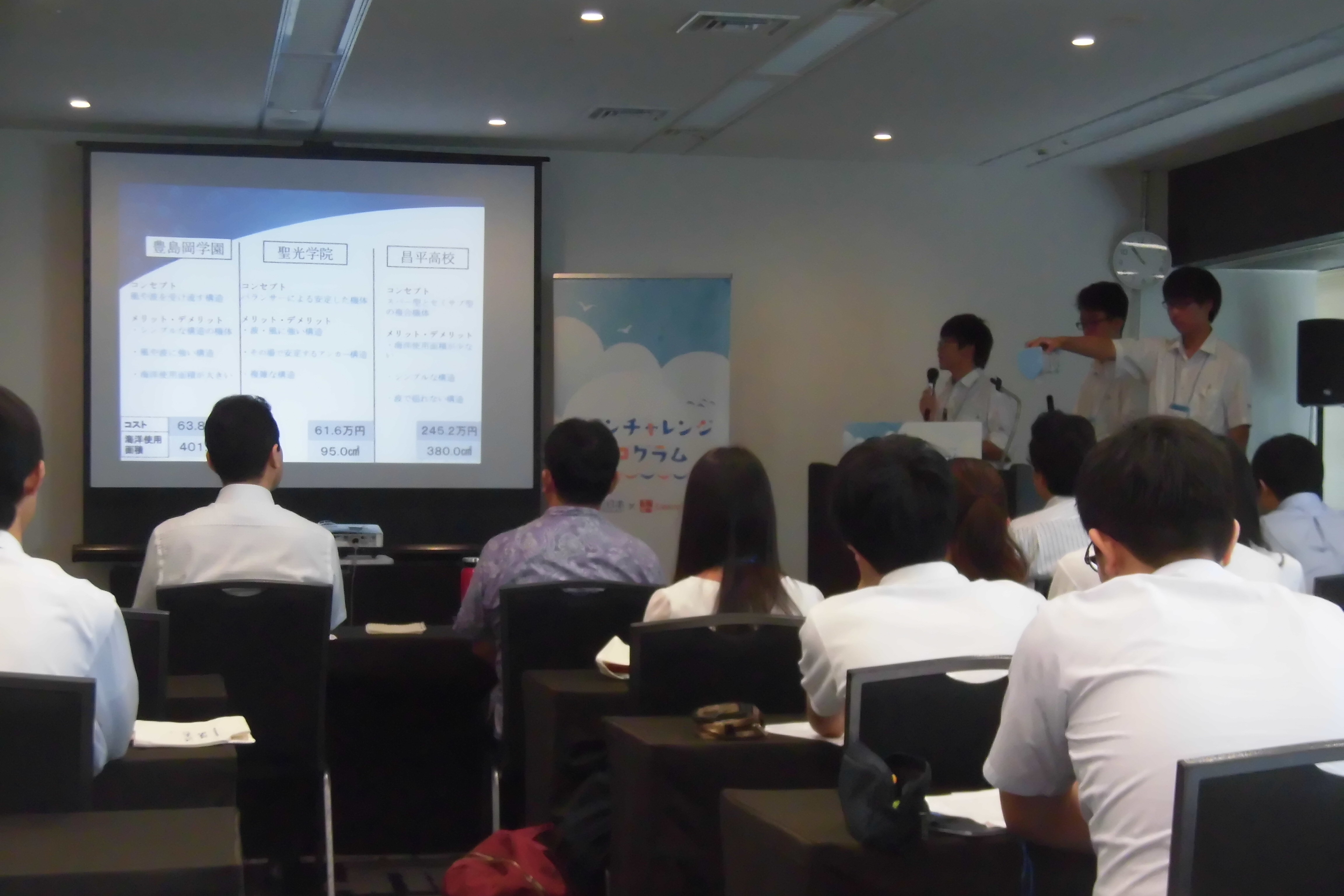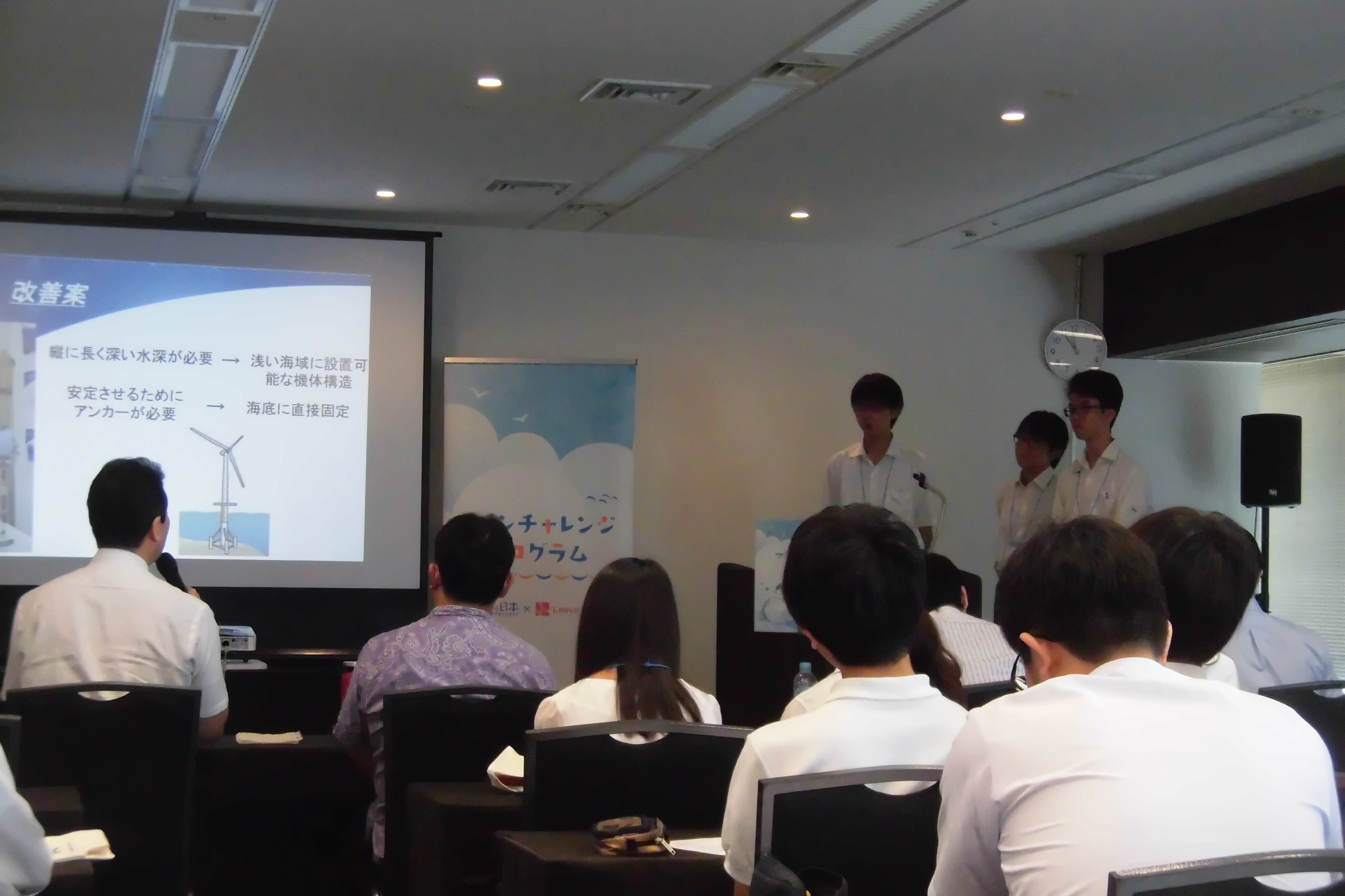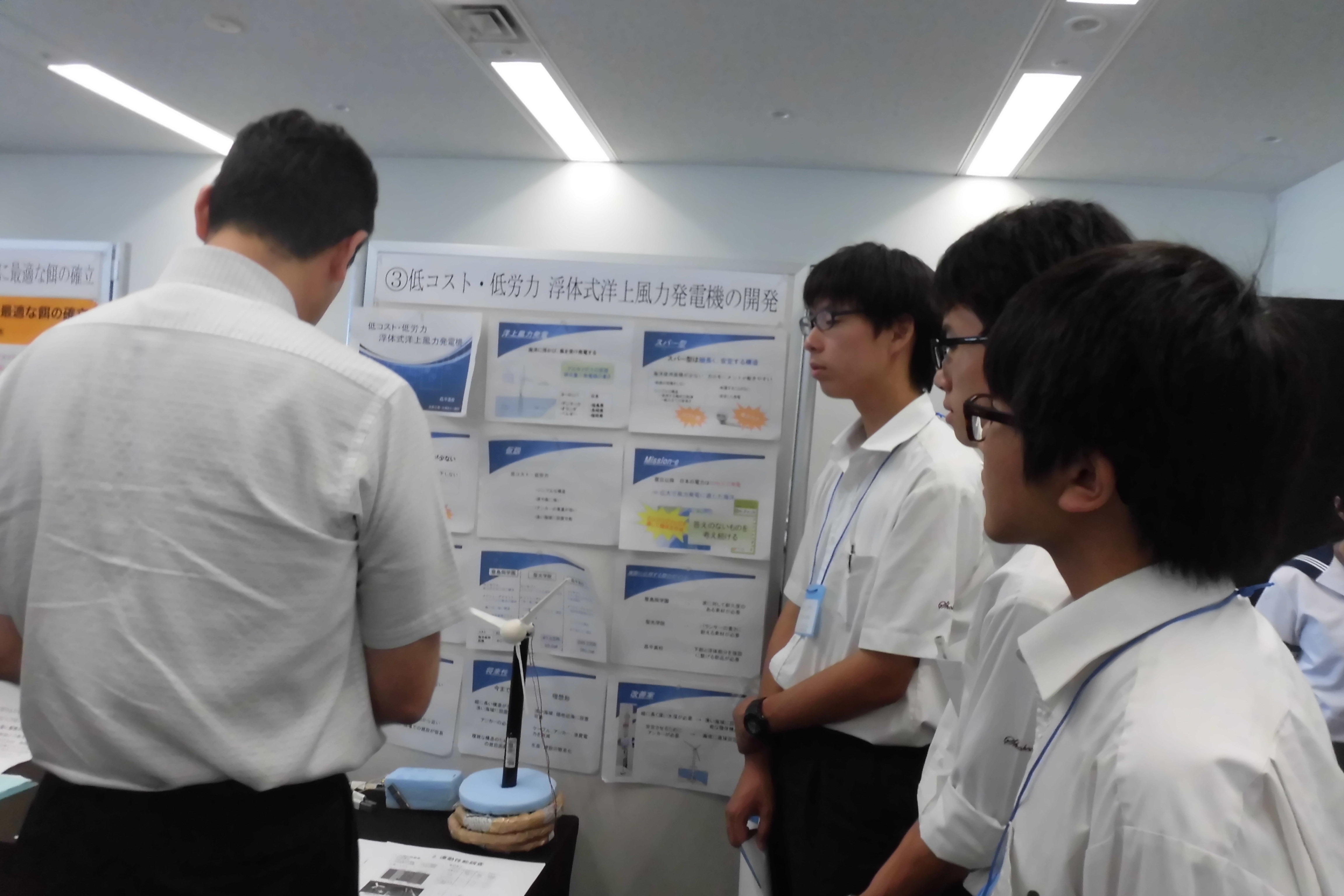7月31日に、横浜ランドマークタワーでマリンチャレンジプログラム関東大会が行われ、本校の生物化学部からは一貫クラスの遠藤君、八鍬君、沢瀬君が出場しました。関東各地から16チームが参加し、海に関する研究とその成果について発表が行われました。昌平チームは「低コスト・定労力の浮体式洋上風力発電の開発」というテーマで研究を行い発表しました。上位3チームに入ることができず、全国大会に出場することはできませんでしたが、他校の取り組みや審査委員の方々の話から、諦めずに粘り強く取り組むことの大事さや挑戦し続けることの大事さを学ぶことができました。