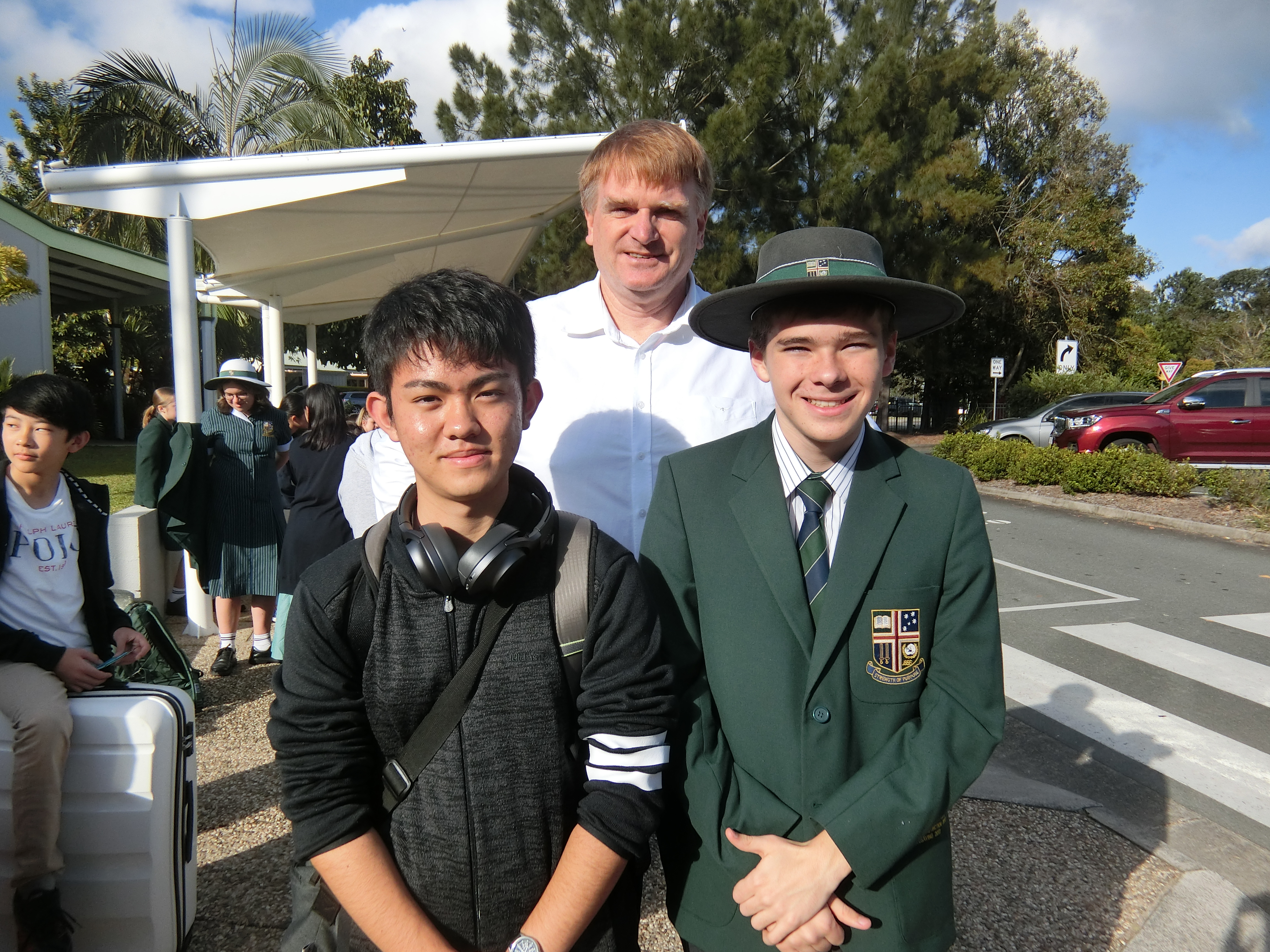 本日は学校にてホストファミリーとの最後の挨拶をし、お別れをしました。連絡先を交換して日本を案内する等の約束をしたり、写真を撮ったり、そしてお世話になったホストファミリーとのお別れに涙する生徒もたくさんいました。たった10日間のステイだったかもしれませんが、温かく、優しく、毎日おいしい料理を作ってくれて、本当に楽しく過ごすことができました。ホストファミリーからも、お手伝いをしてくれて助かった、本当に優しい子、英語が上手になったよ、など嬉しい言葉をたくさんいただきました。サンシャインコーストグラマースクールとはすでのホームページでお伝えした通り、昌平にとって2校目となる姉妹校提携の調印が今回の研修中に行われ、本当に意味のある語学研修となりました。姉妹校としてのプログラムで昌平に来た際は、ぜひ今度は日本を案内してあげましょう!ホストファミリーとお別れをした後、ブリスベン市内へと移動し、それぞれ観光を楽しみました。市内を楽しそうに散策する姿や、お土産をたくさん買う様子(お菓子が多かった気もしますが…)も見られました。ぜひ日本で、彼らのお土産と思い出話を楽しみにしていてください。