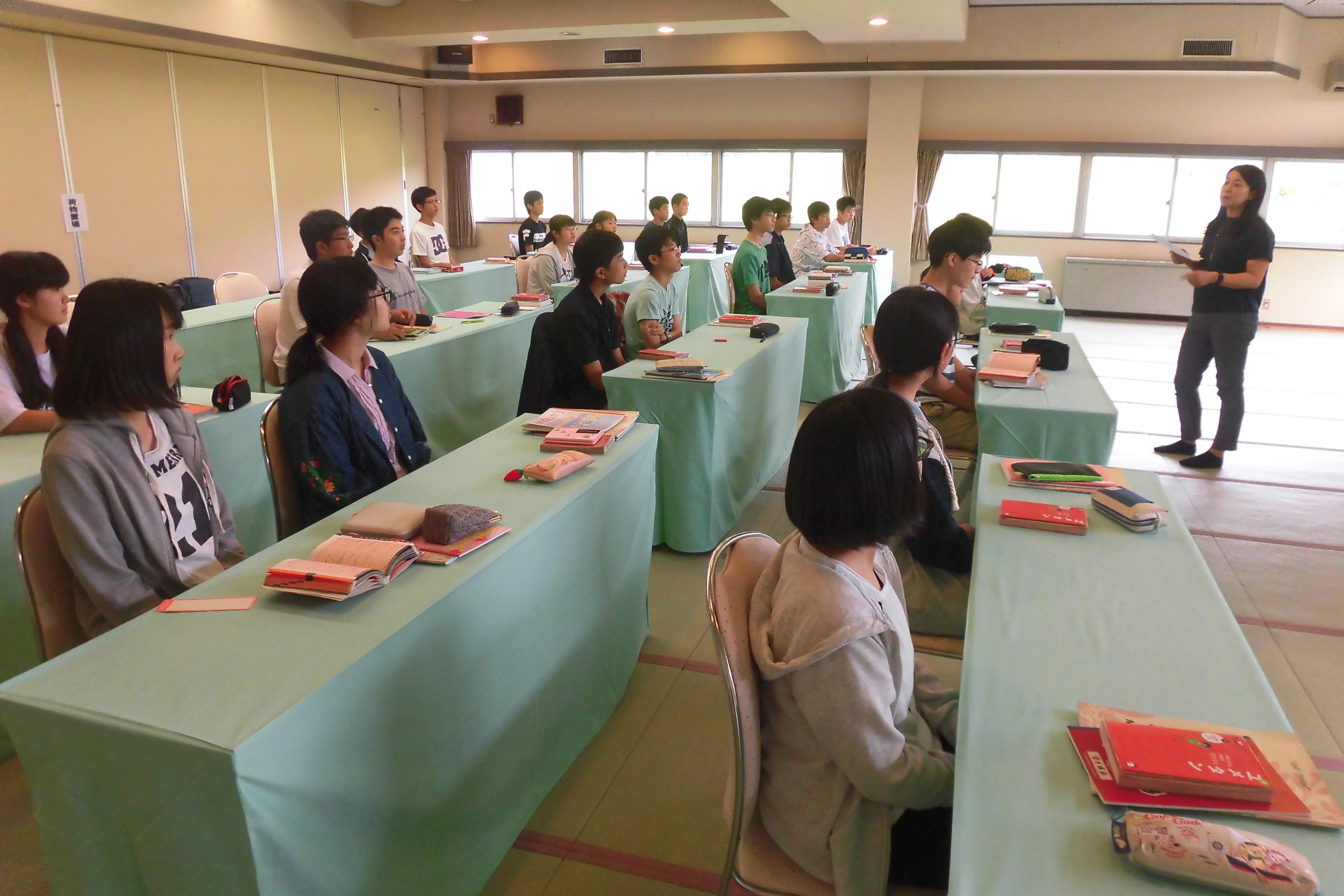 本日より、中学3年生の学習合宿が群馬県みなかみ町の『千の谷』で始まりました。中学3年生は希望者対象の合宿となっていますが、大半の生徒が自主参加しており、昨日から合宿が始まった高校の一貫生を合わせると200近くの大人数になります。合宿中は、英語と数学の講義に加え、自習の時間や学習に関する講話の時間が設けられています。