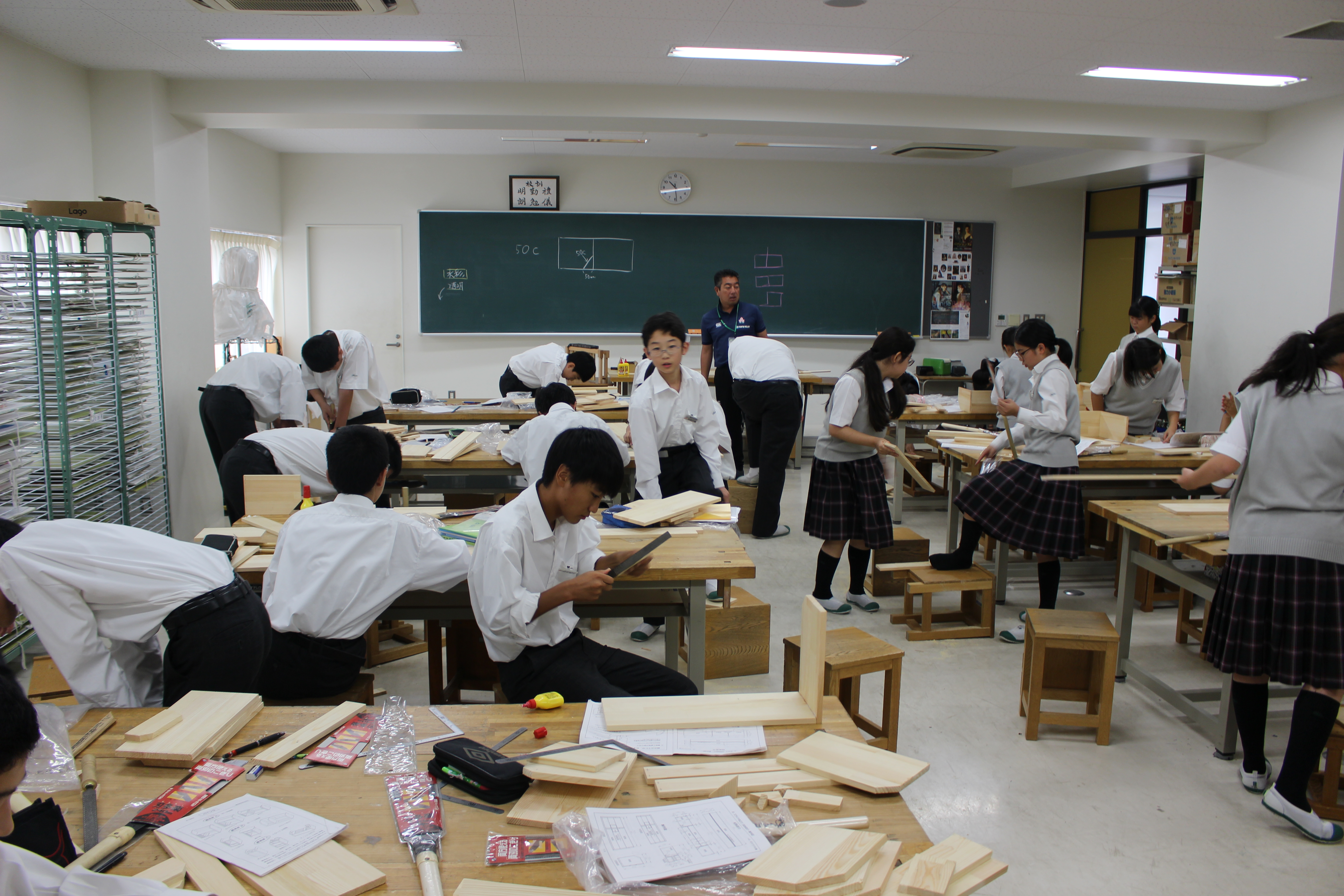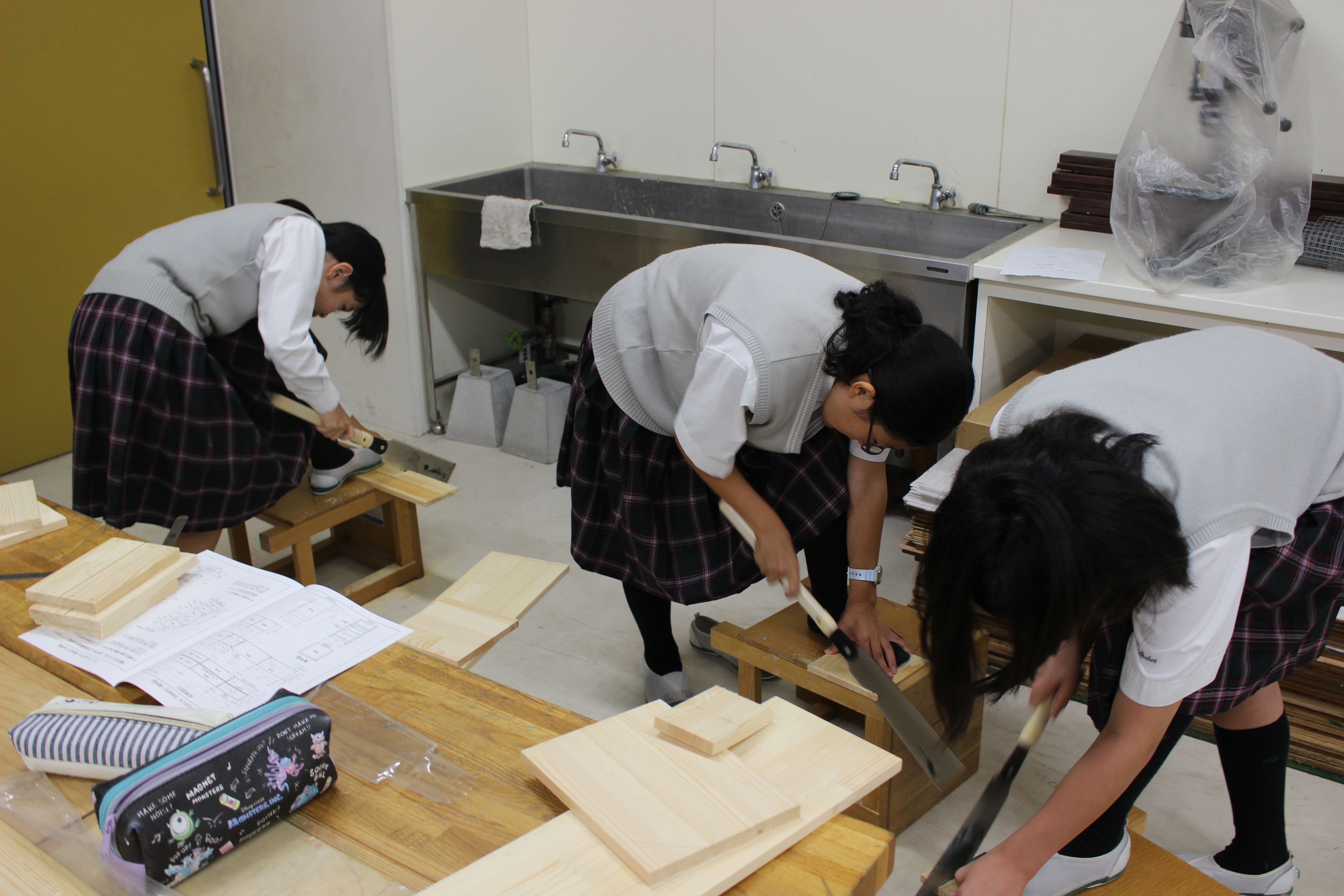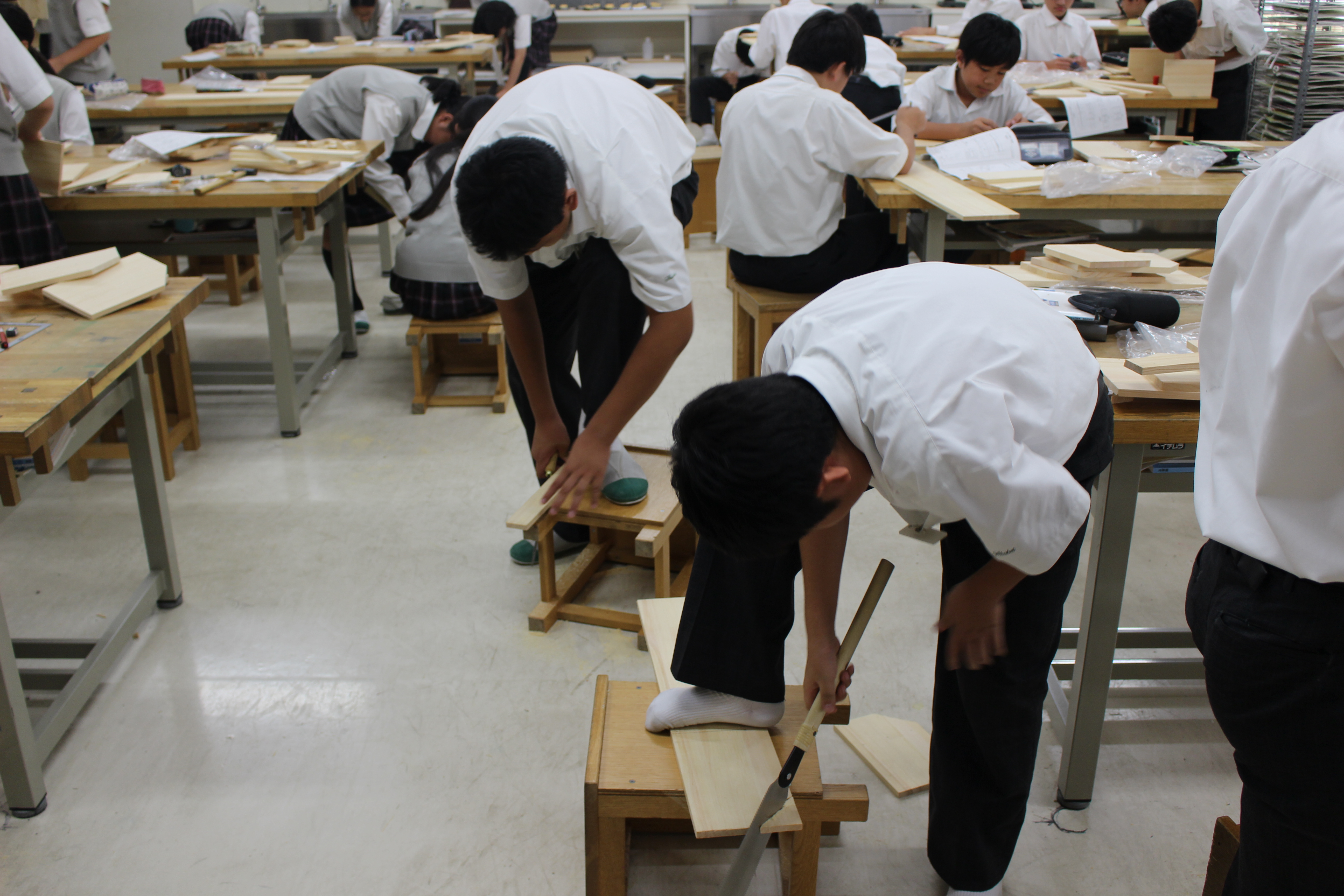初めて見る工具で戸惑いながらも、慣れない手つきで木材加工を行いました。なかなか、まっすぐに木材が切れずに四苦八苦しながらも、周りの友達と助け合いながら作業を行っていました。ただ木材を切るのではなく、やすりなどを用いて細部まできれいに仕上げようとする生徒も見られ、出来上がりが楽しみです。