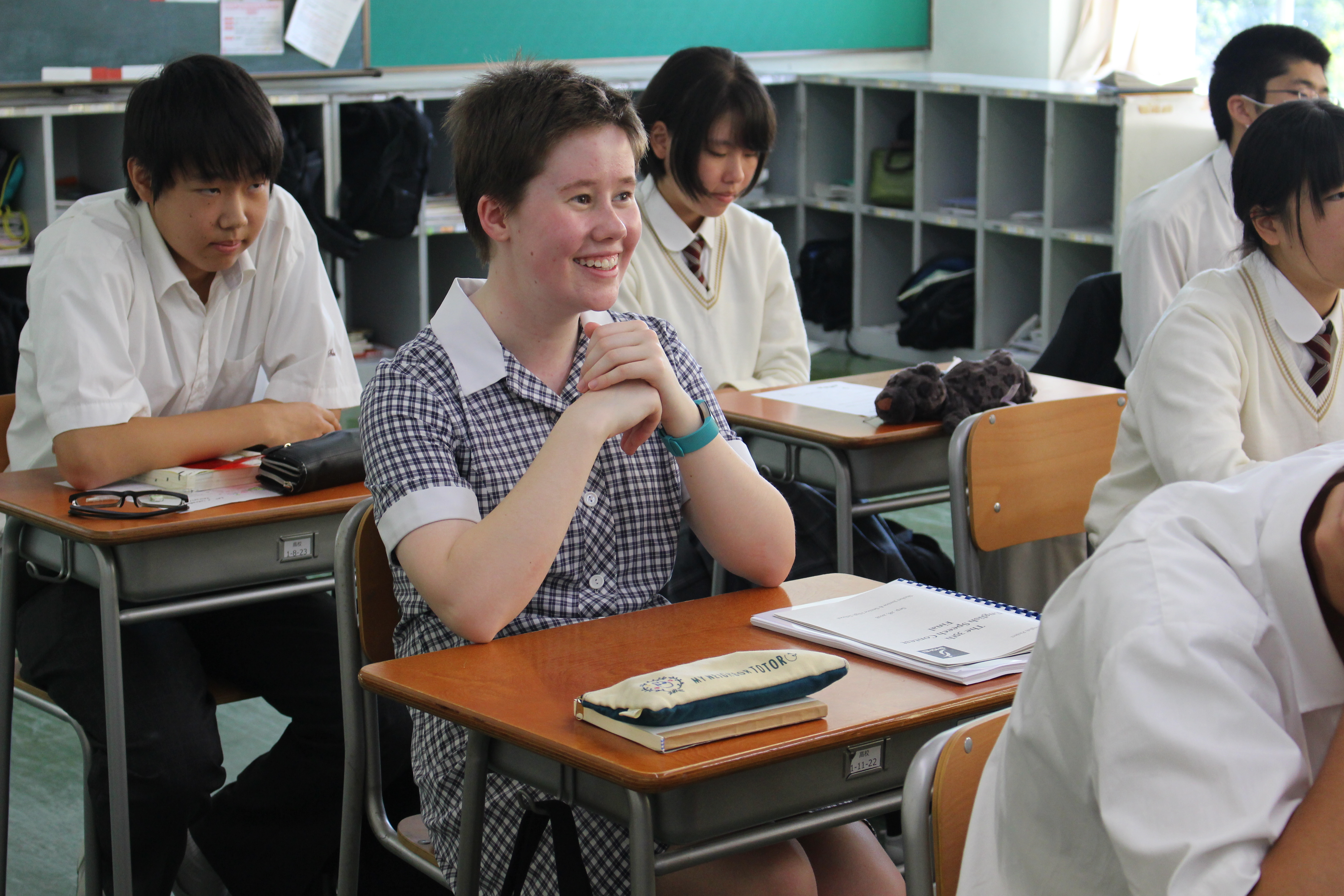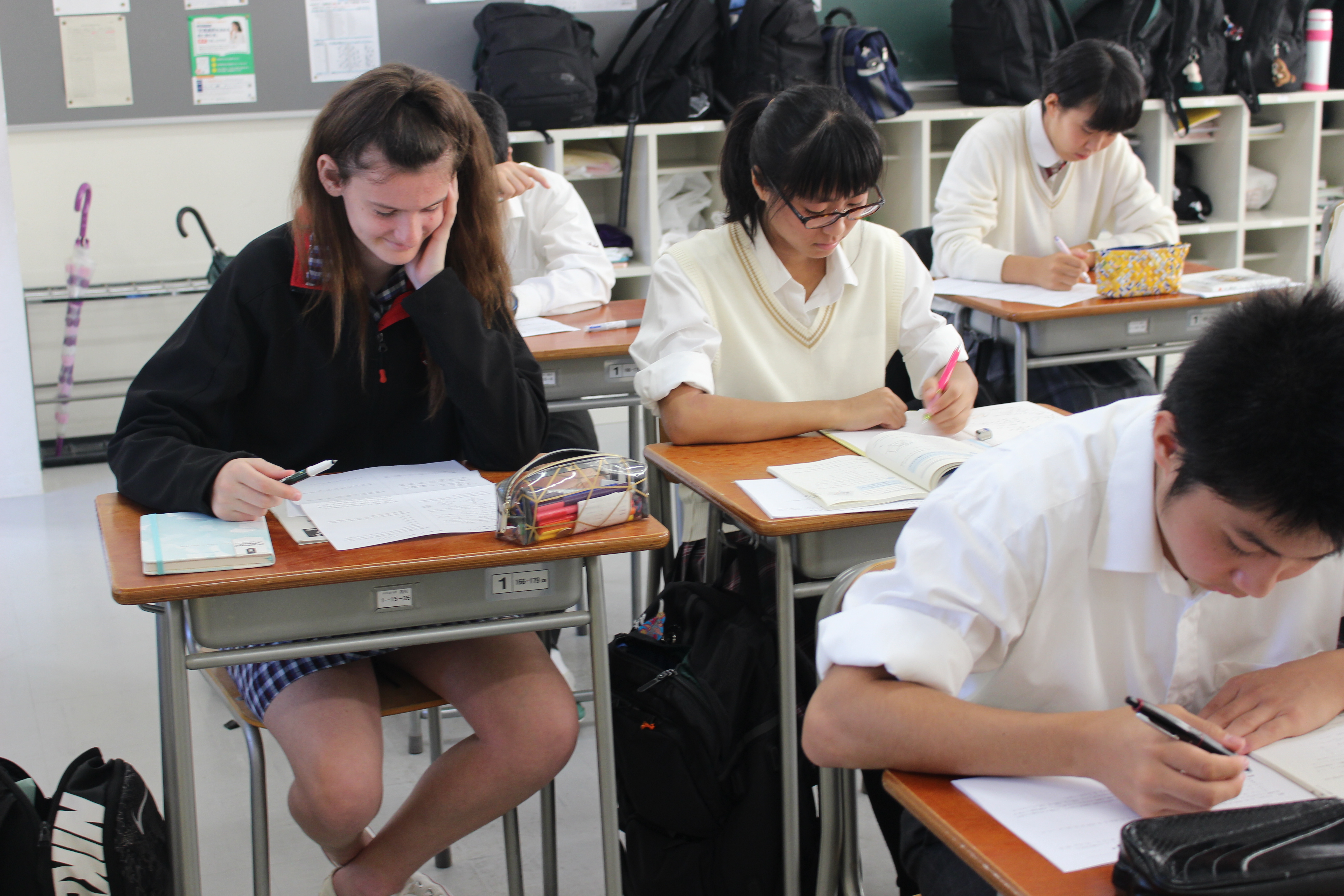 スコッツスクールの生徒は登校2日目で、クラスの雰囲気に少しずつ慣れ日本での授業を積極的に体験し、時折、笑顔を見ることができました。本日は、土曜日課で午前授業のみですので、午後はホストファミリーと出かけたり、また週末を楽しく過ごしてくれることを期待します。