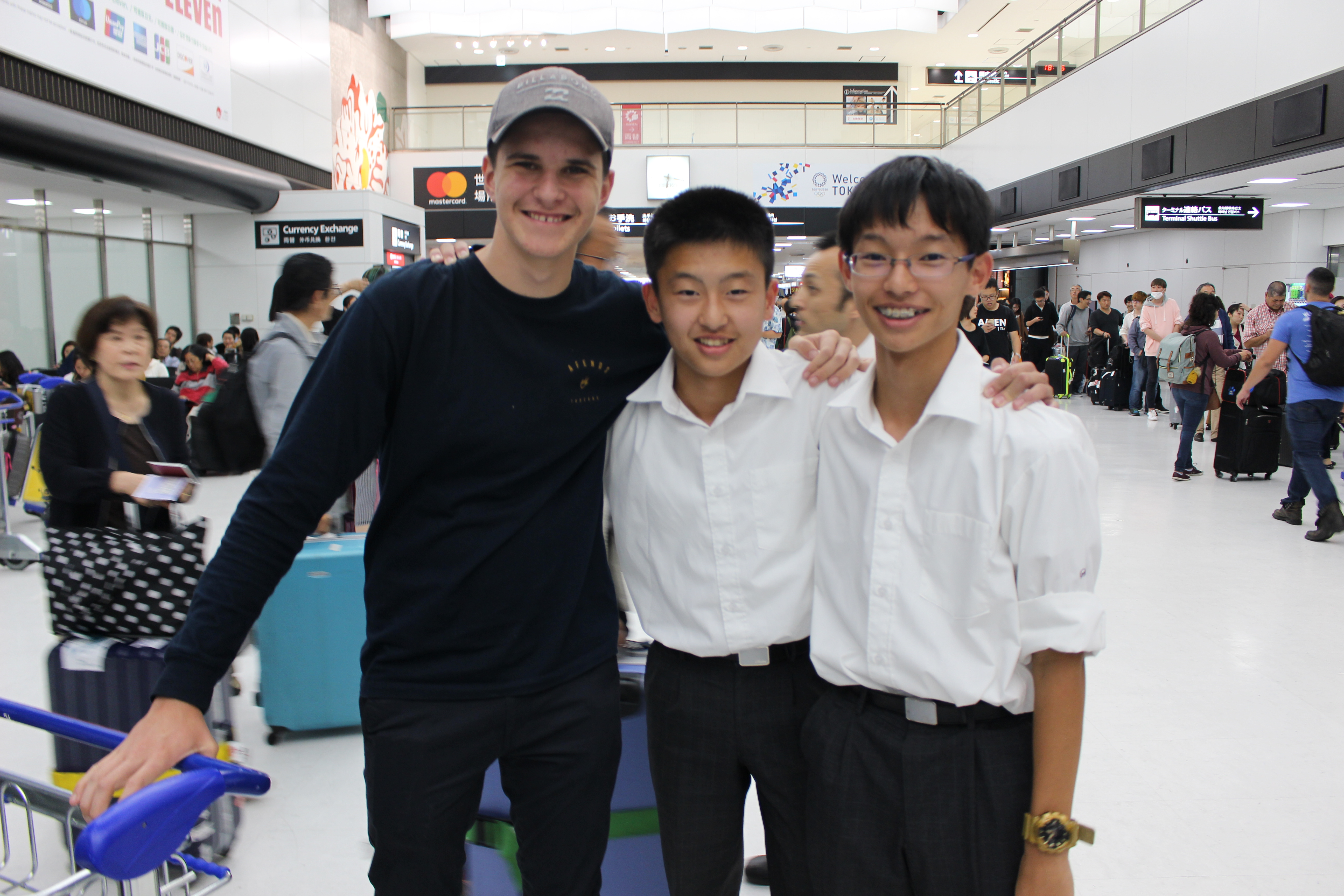 今年の夏に3年間の交流を経て姉妹校になったオーストラリアのクイーンズランド州にあるサンシャインゴーストグラマースクールから3名の生徒が来日しました。昌平からは高1の内田くんが約2ヶ月交換留学生としてお世話になりました。成田空港でホストファミリーと対面した3名の生徒はさっそく明日から始まる昌平での学校生活にワクワクしている様子でした。3ヶ月滞在します。日々の何気ない学校生活の中でもお互いの絆を声を掛け合い深めて欲しいと思います。