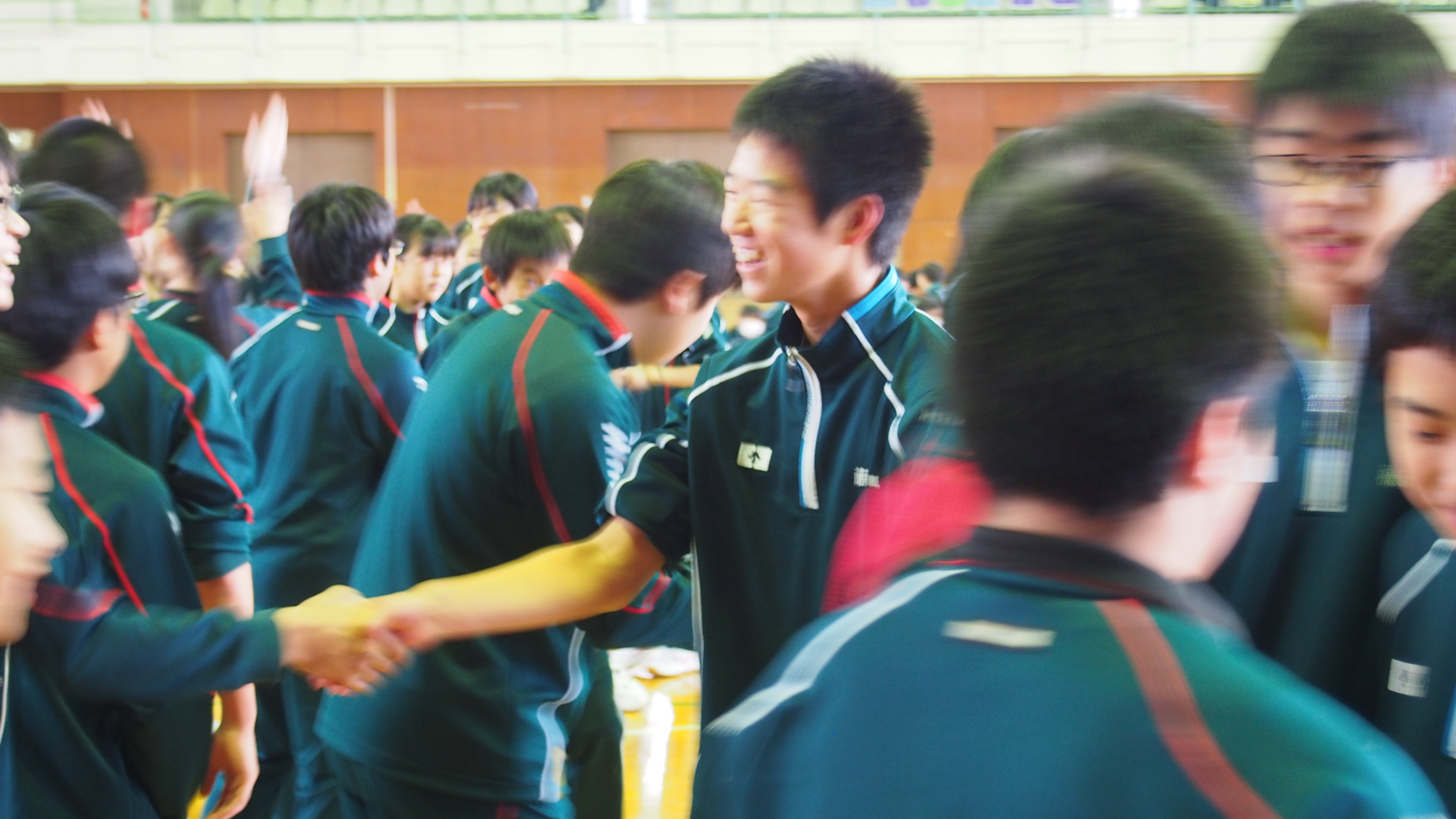 中学校全クラスが参加して、球技大会(ドッジボール)が行われました。学年を超えて対戦するこの大会では、1,2年生も3年生に負けまいとクラスが団結し一生懸命に競技に参加しました。作戦を立てて臨んだクラス、勢いで頑張ったクラス、様々なクラスのカラーがよく出ていました。他のクラスの試合の時も大きな声で応援し非常に盛り上がりました。結果は次の通りです。1,2年生も大健闘でした。優勝:3年2組、2位:2年1組、3位:1年1組でした。