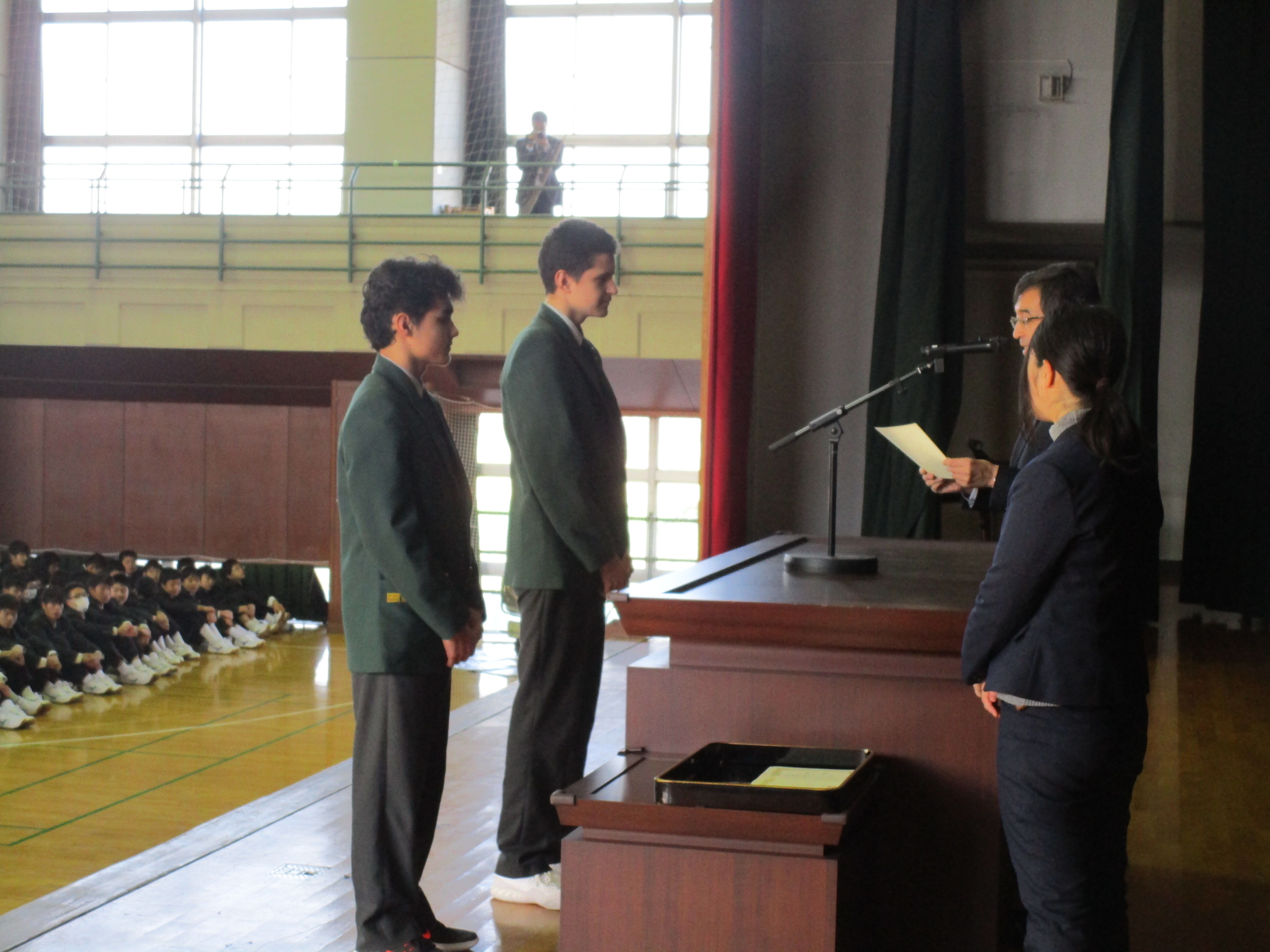 10月から3か月間、姉妹校のサンシャインコーストグラマースクールから来ていた交換留学生2人の修了式が行われました。高校1年生のクラスに所属し、授業、行事、部活動などをしながら昌平生と過ごしました。日本語で感謝のスピーチをし、校長先生から修了証を受け取りました。2人は1月2日に帰国します。多くのホストファミリーのご協力に心より感謝申し上げます。今後もお互いの学校を行き来しながら交流をさらに深めていきましょう。