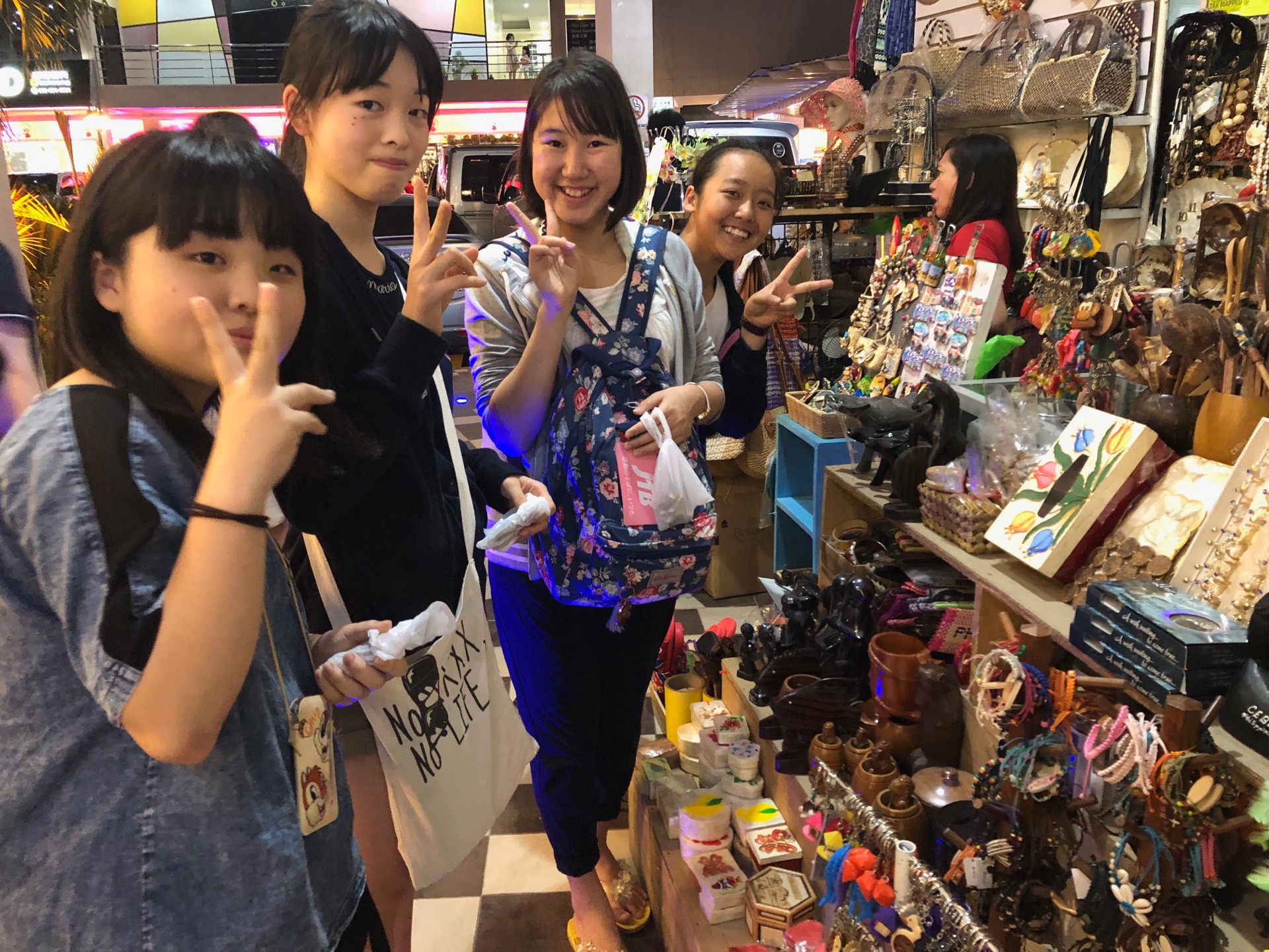 夕食後は、中学生・高校女子チームが買い物に出掛けました。レッスンで先生に聞いたオススメを探したり、自分のものばかりではなく、参加させてくれたご両親、家族のものを真剣に選んでいたりと、楽しんでいた様子でした。