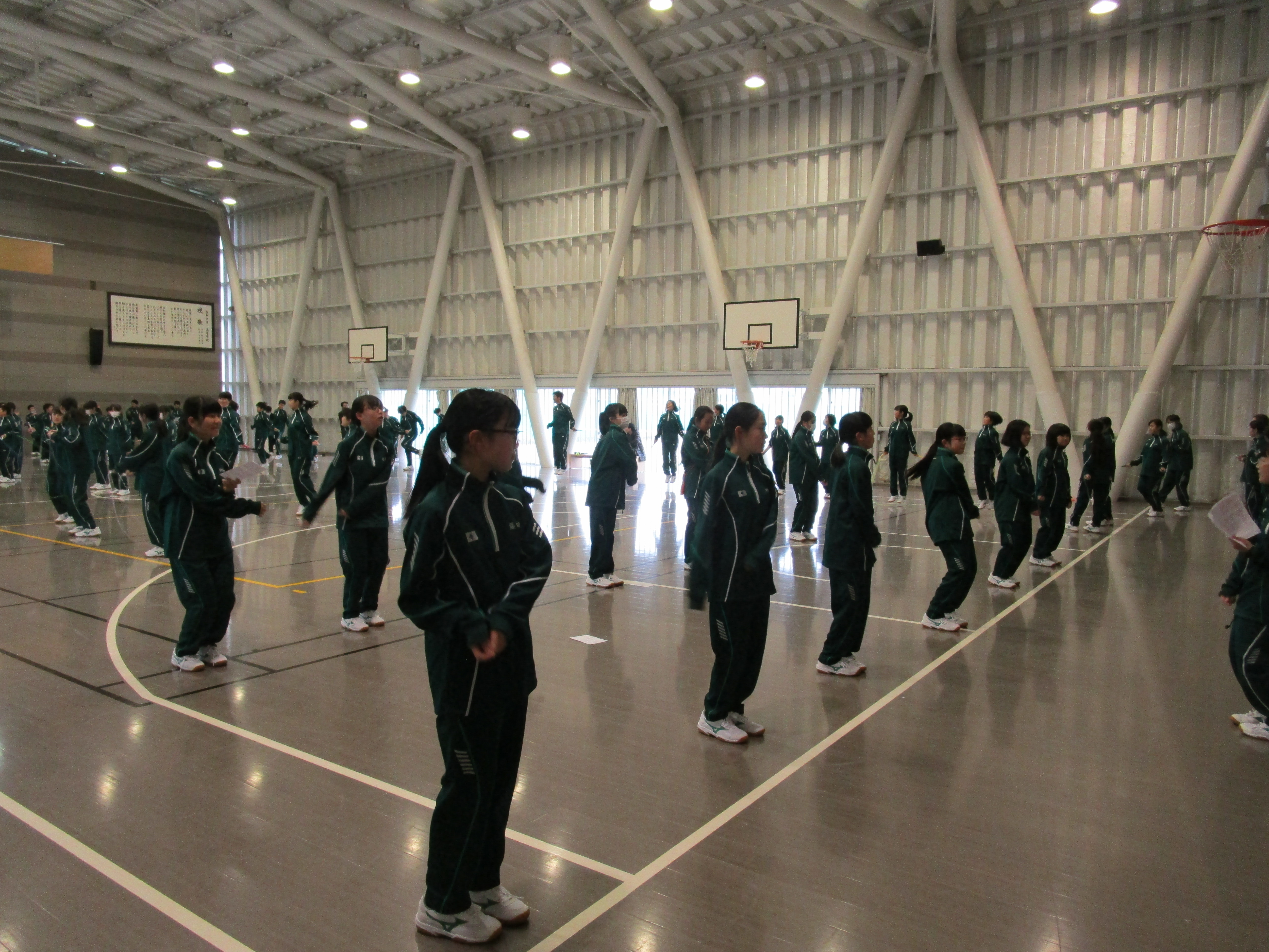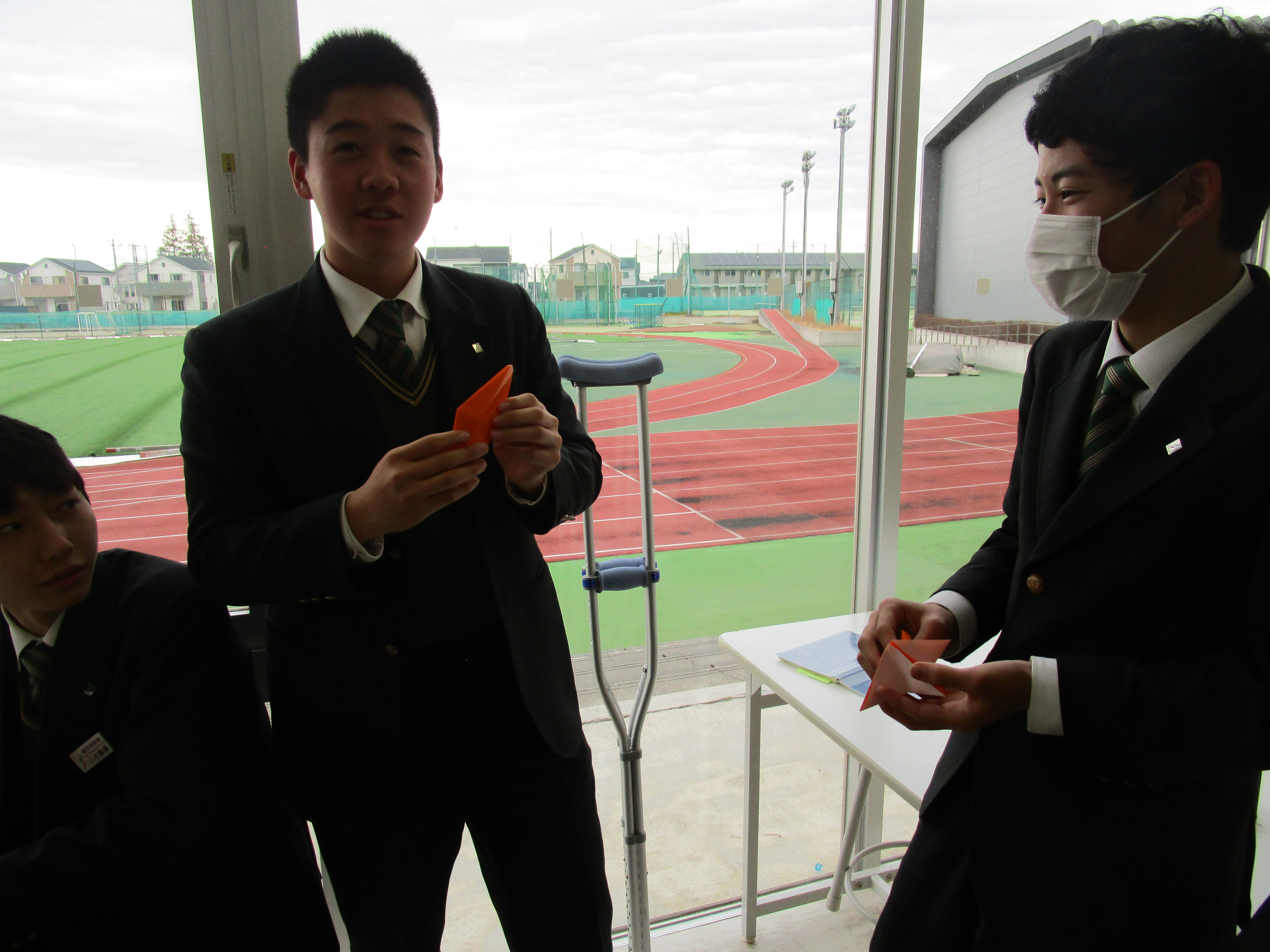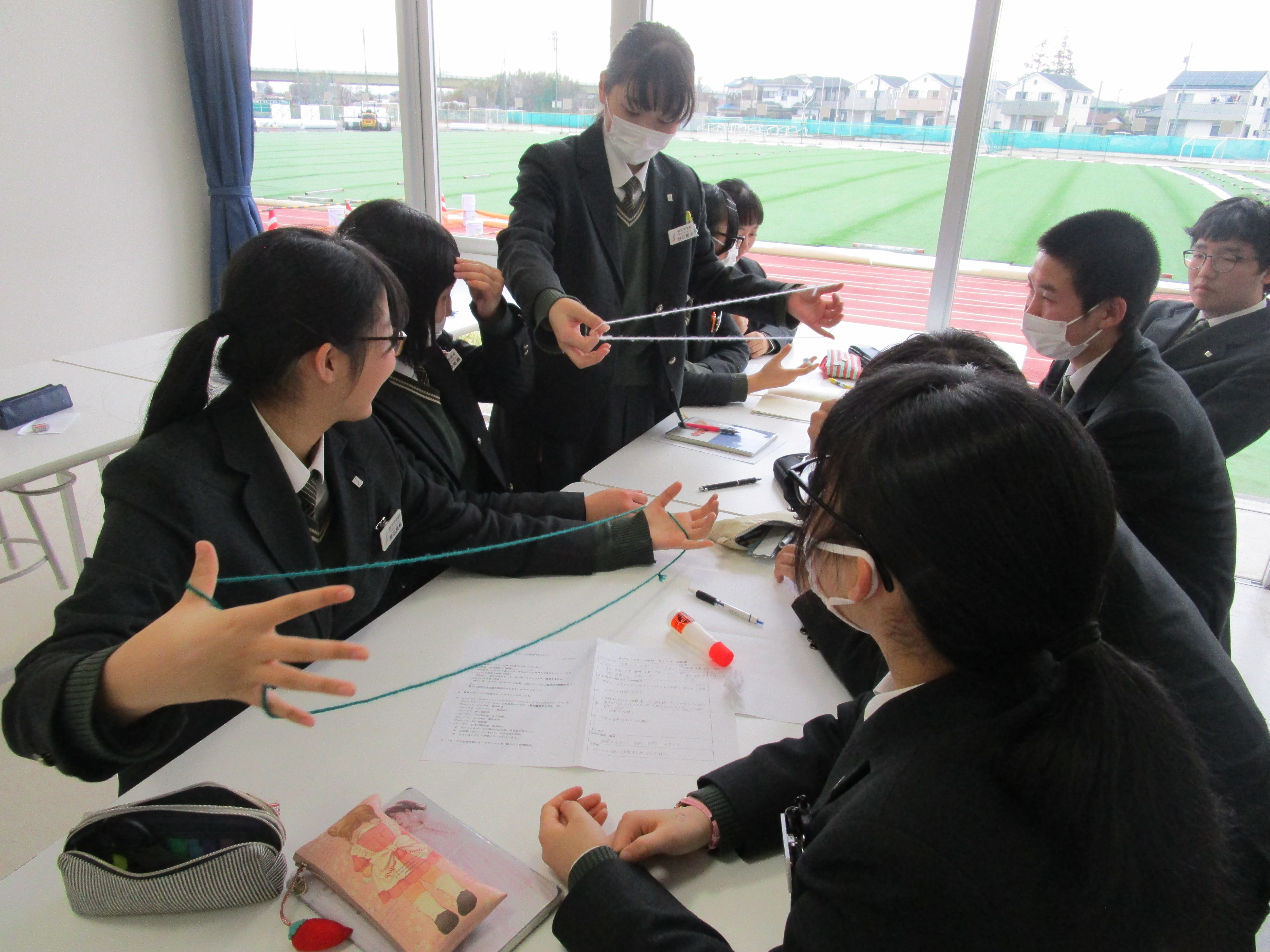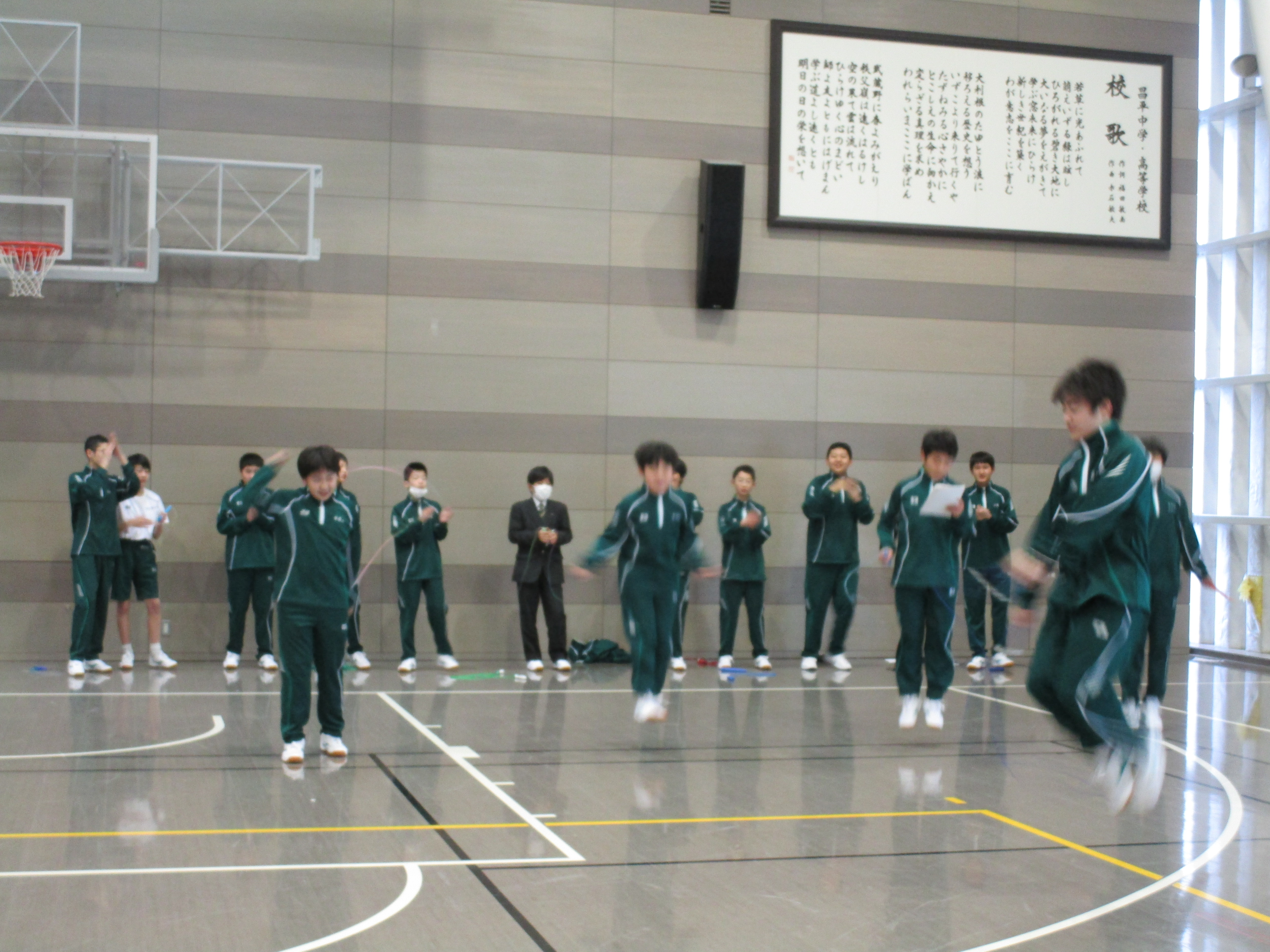 金曜日の6限は中高全クラスがLHR(ロングホームルーム)です。クラスや学年で活動をします。中1は5時間目が体育でリズム縄跳びをしていたので、そのままリズム縄跳びをしました。IB(国際バカロレア)の科目でもある体育の授業は、自分達で調べたり創作したりすることが求められます。縄跳びを音楽に合わせて飛び、自分達でオリジナルの飛び方を考えています。その後は、中高一貫生の3期生である東京大学と横浜市立大学に在籍する先輩が来ていたので、学校生活や勉強のアドバイスをもらいました。中3は3月に修学旅行でニュージーランドを訪れます。現地の学校で交流もするので、その準備をグループで行ないました。折り紙、けん玉、二人羽織などを披露する予定です。