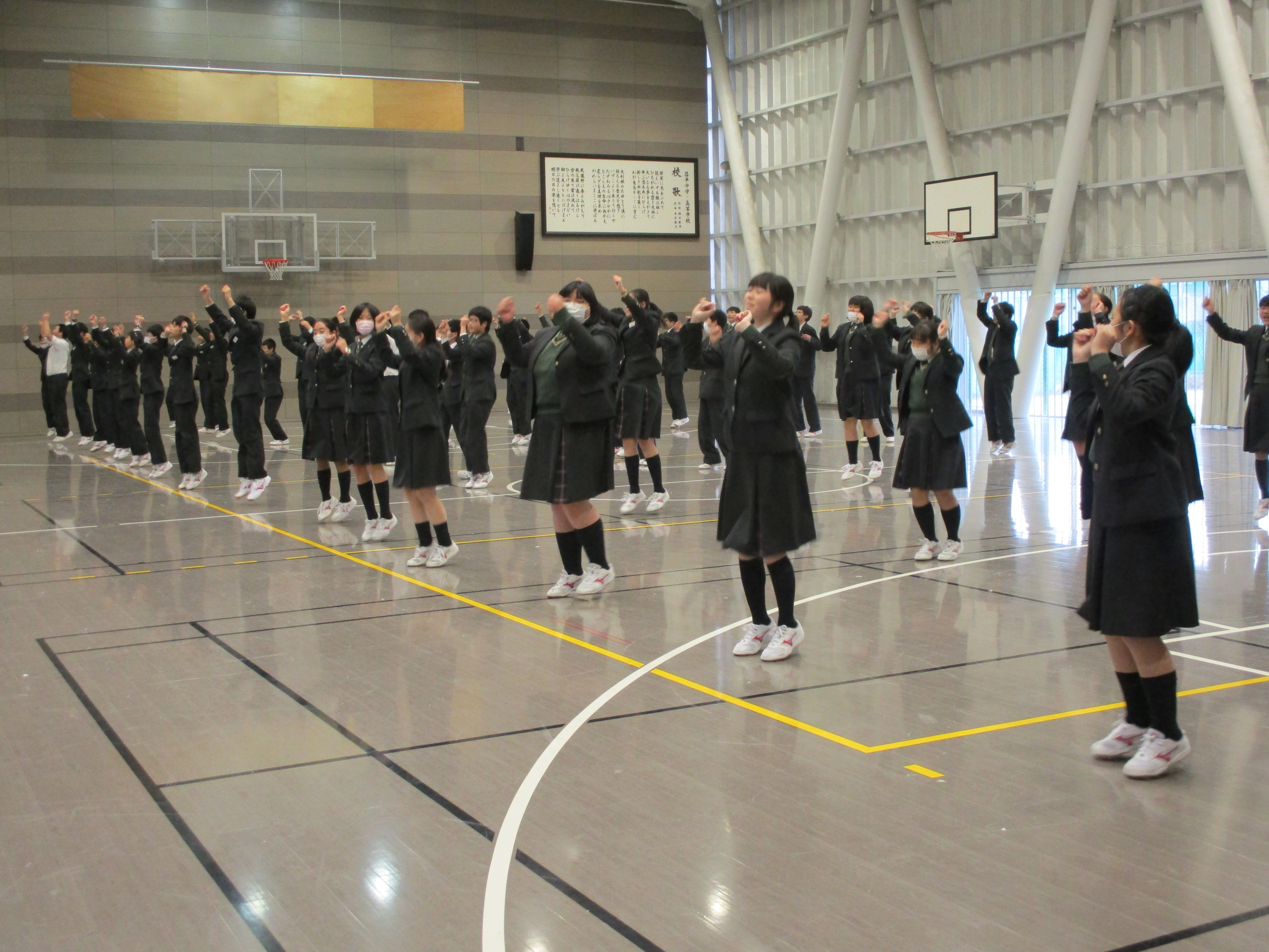 中学3年生は3月6日(水)から14日(木)の日程で、ファームステイを中心とするニュージーランド修学旅行に出かけます。このプログラムには現地校訪問も含まれ、歓迎セレモニーと日本文化のワークショップが実施されます。今日のLHRでは3クラス合同で「校歌のアカペラ合唱」と「昌平よさこい」を練習しました。みんなで大きな声を出し、昌平中の生徒らしく元気に堂々と発表できそうです。