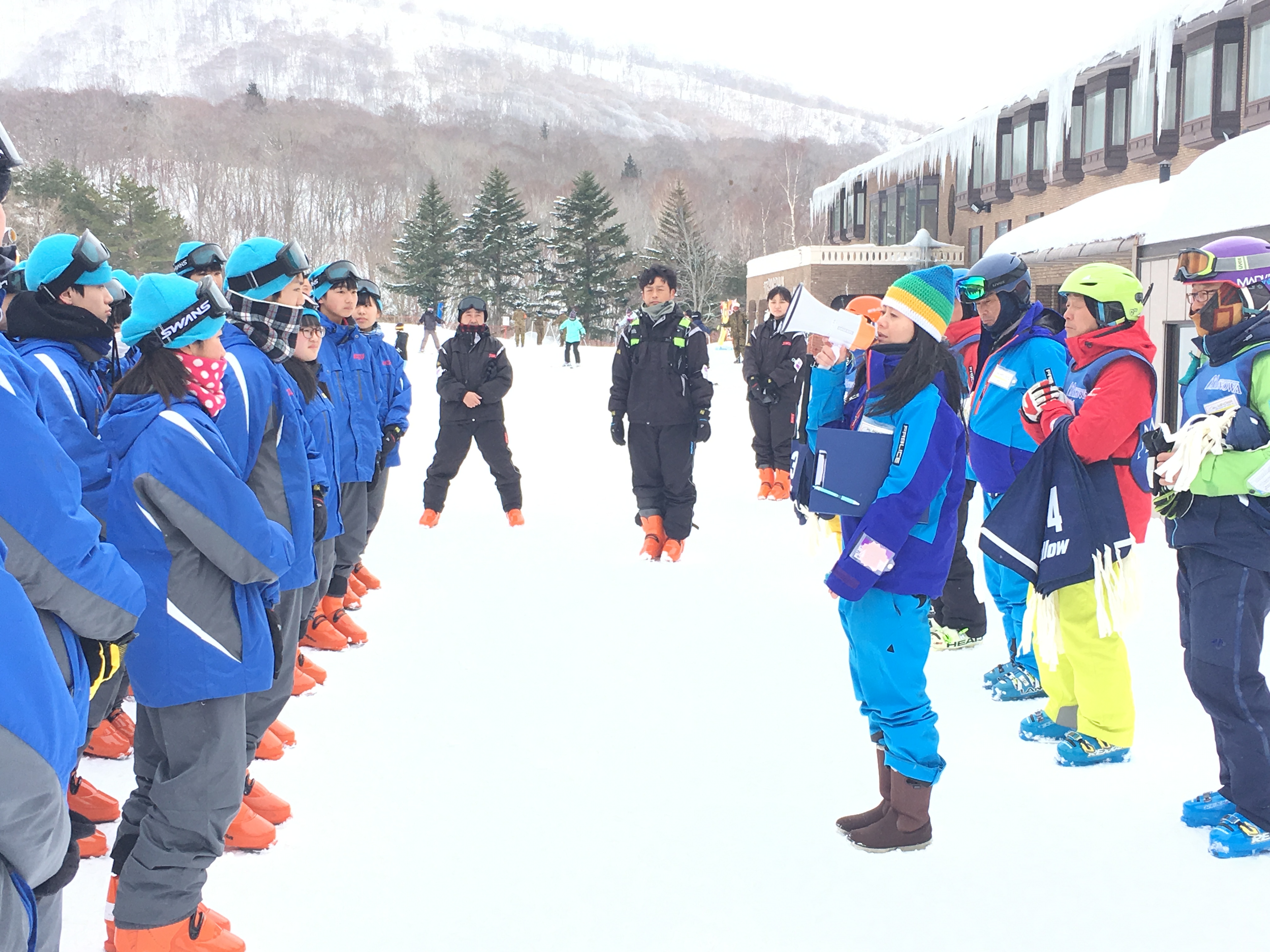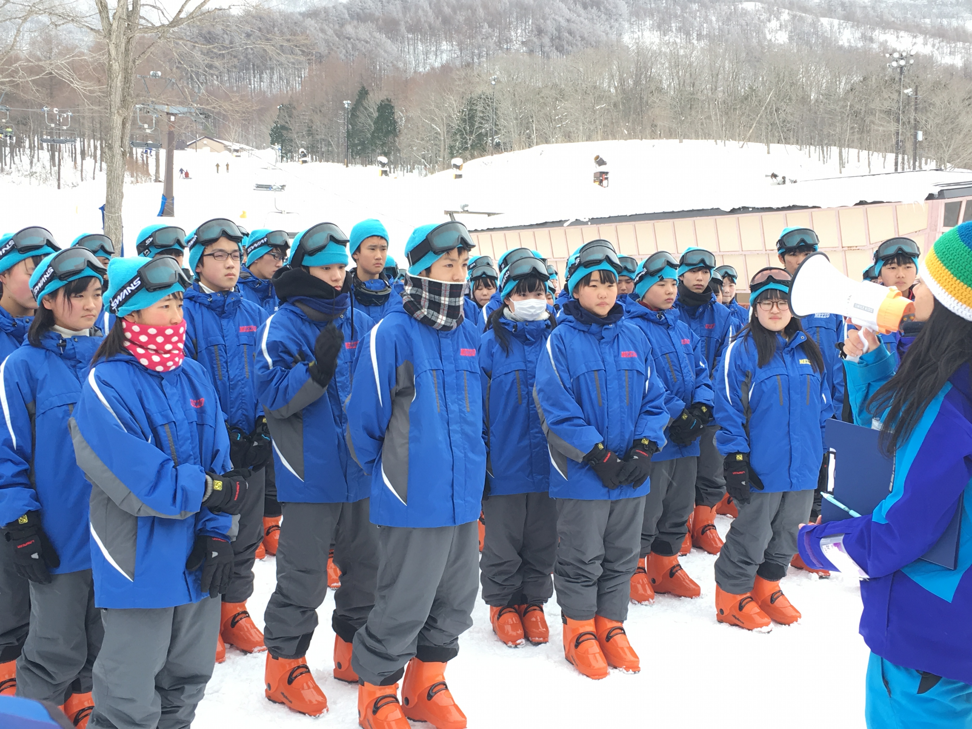 交通渋滞もなく、予定時刻にホテルに到着し昼食を摂りスキー教室に入りました。慣れないスキーウェアやブーツの装着で四苦八苦をしながら、それぞれの班に別れ、各インストラクターの指導を受けました。生徒たちは、和気藹々とお互いコミュニケーションを摂りながら、1日目ながらも滑ることができるようになった実感があるようです。体調管理もしっかり行い全員が検定級を取れるように残り2日間頑張ります。
