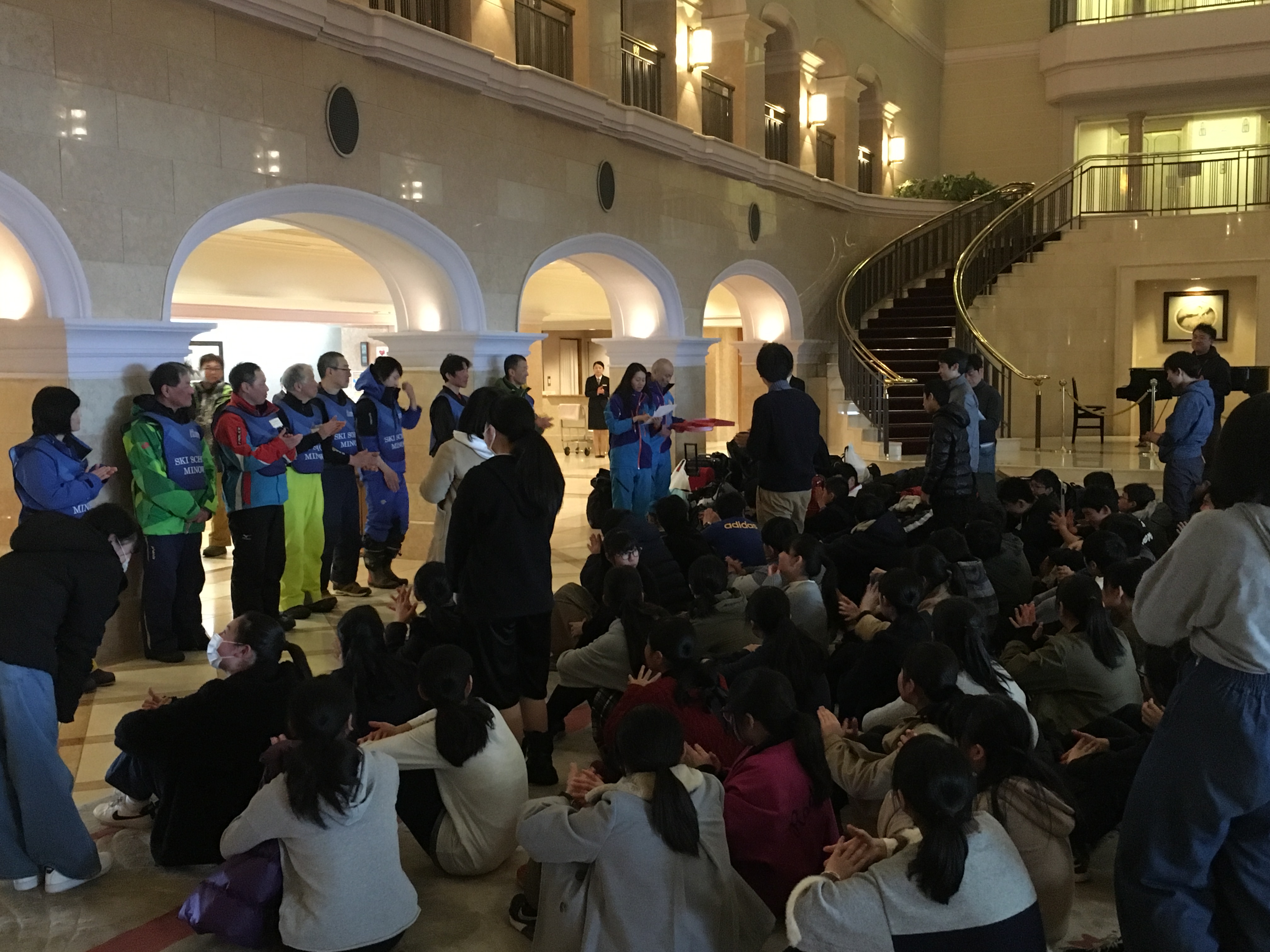 検定試験を前に少し緊張気味でリフトに乗り込みました。いざ、滑り出すと練習の成果を発揮し、軽快に滑走するたくましい姿や笑顔で通過する姿が見られました。最後の表彰式では、全員が無事検定級を取得することができました。この三日間、全員が怪我や病気をすることなく無事スキー教室を終えることができました。ありがとうございました。