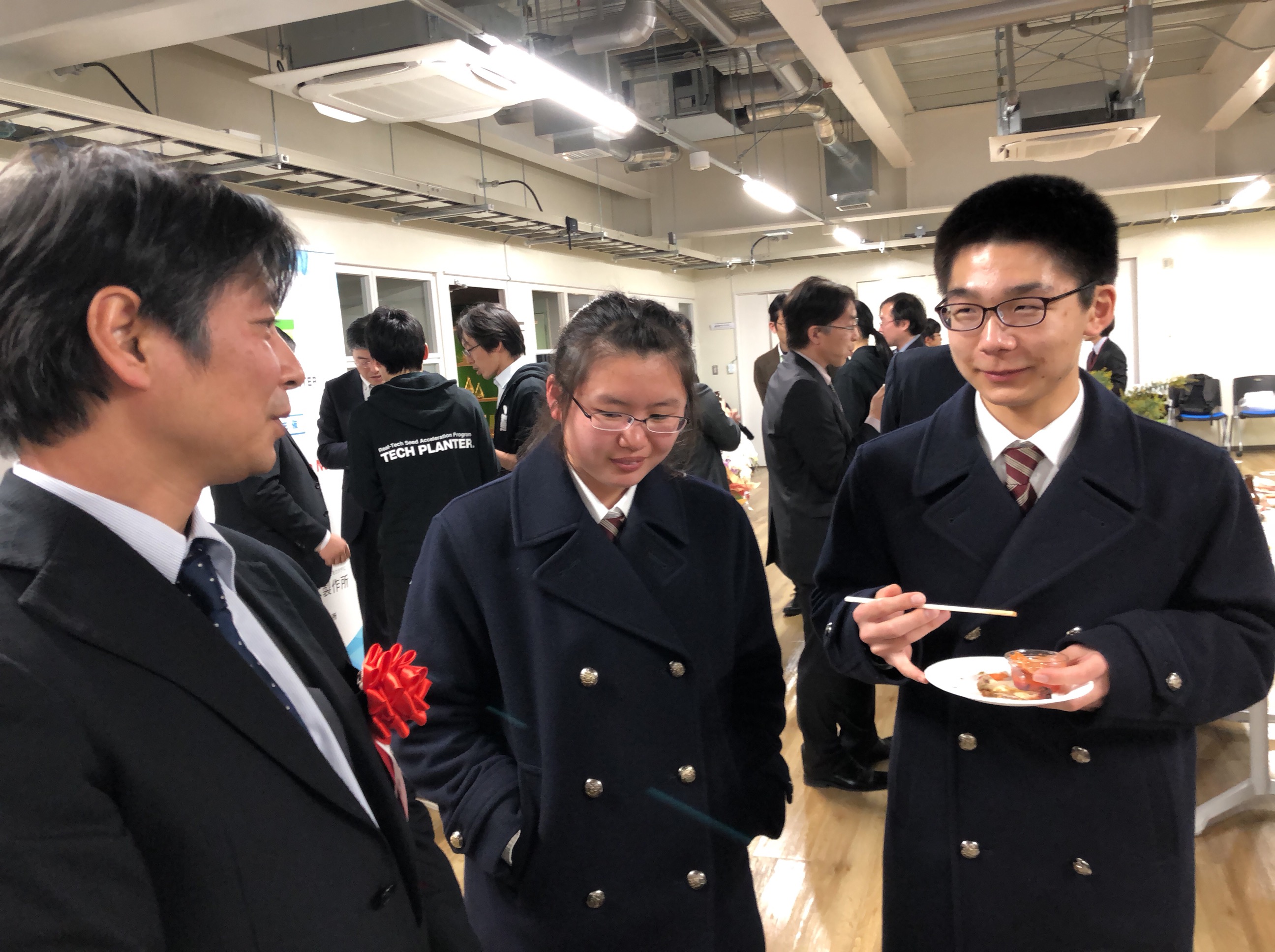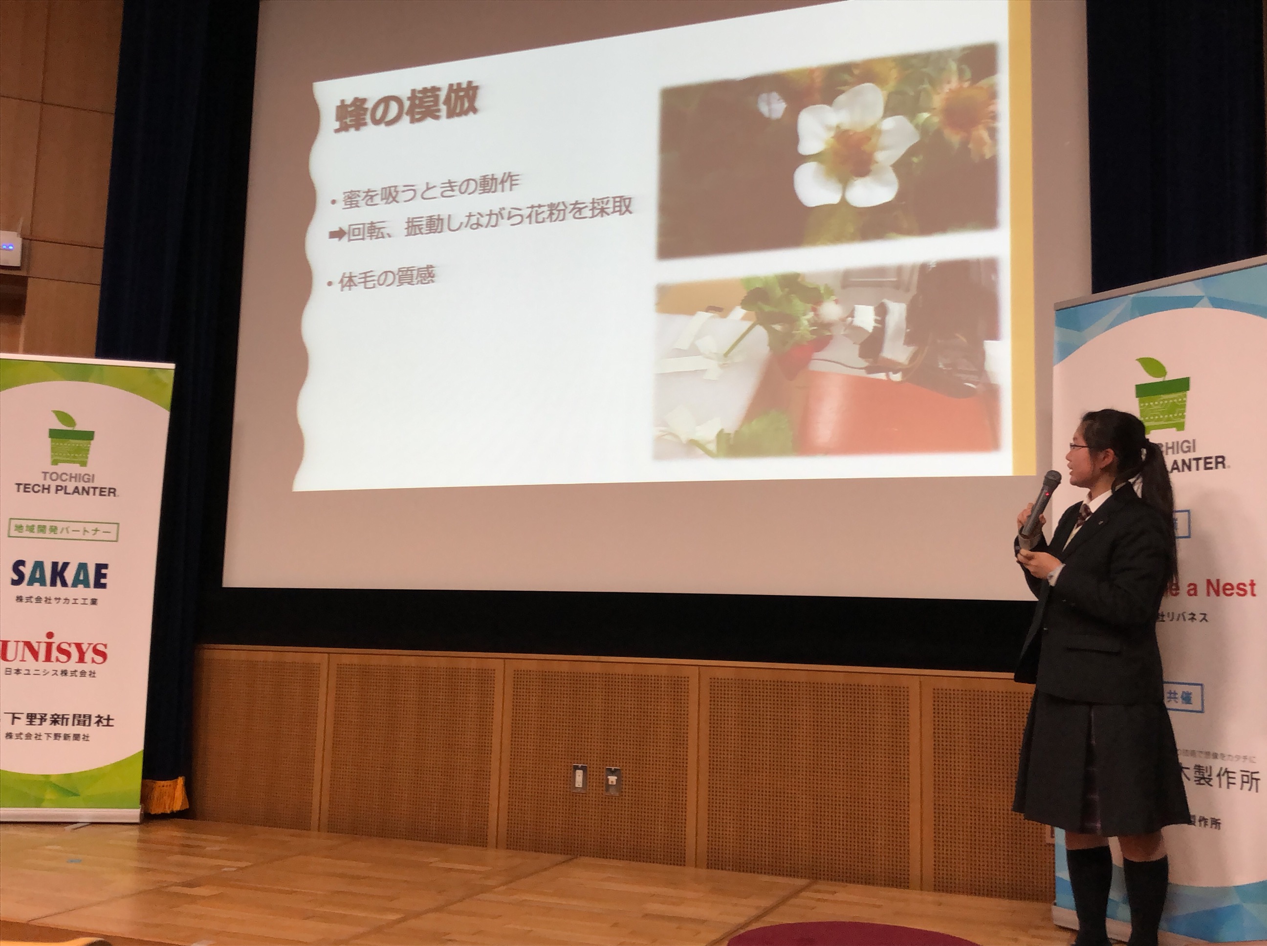 生物化学部は、2019年2月23日(土)、宇都宮大学にて開催された「栃木テックプランター」に参加し、プレゼンとポスター発表を行いました。テックプランターは、起業前の個人・ベンチャー企業を対象として、技術や情熱を持った人を発掘・育成する取り組みです。技術と情熱を持った大人達が集まり、世の中を変える技術を本気でプレゼンしあい、協力できる仲間探しをしていました。発表者は,大学の研究者がほとんどで,生物化学部は高校生での唯一の発表者となりました。