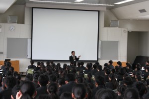 5月13日(月)。1限目は中学3学年合同で道徳の授業を行いました。名雲教頭先生の選んだテーマは「思えば招く」。まず夢をあきらめず、ロケット開発を実現している植松電機社長の植松努さんの講演会の動画を鑑賞しました。幼少からの悲しい体験、苦しい体験からそれらをどう克服していったか。一つひとつの言葉の重みを噛み締めながら生徒たちは見入っていました。視聴した感想をまとめる姿も真剣そのもの。大いに感じるところのあった授業でした。「人は誰でも努力と学習次第で自分の夢を叶えることができる。そこには人それぞれの創意と工夫が必要である。」と教頭は仰いました。