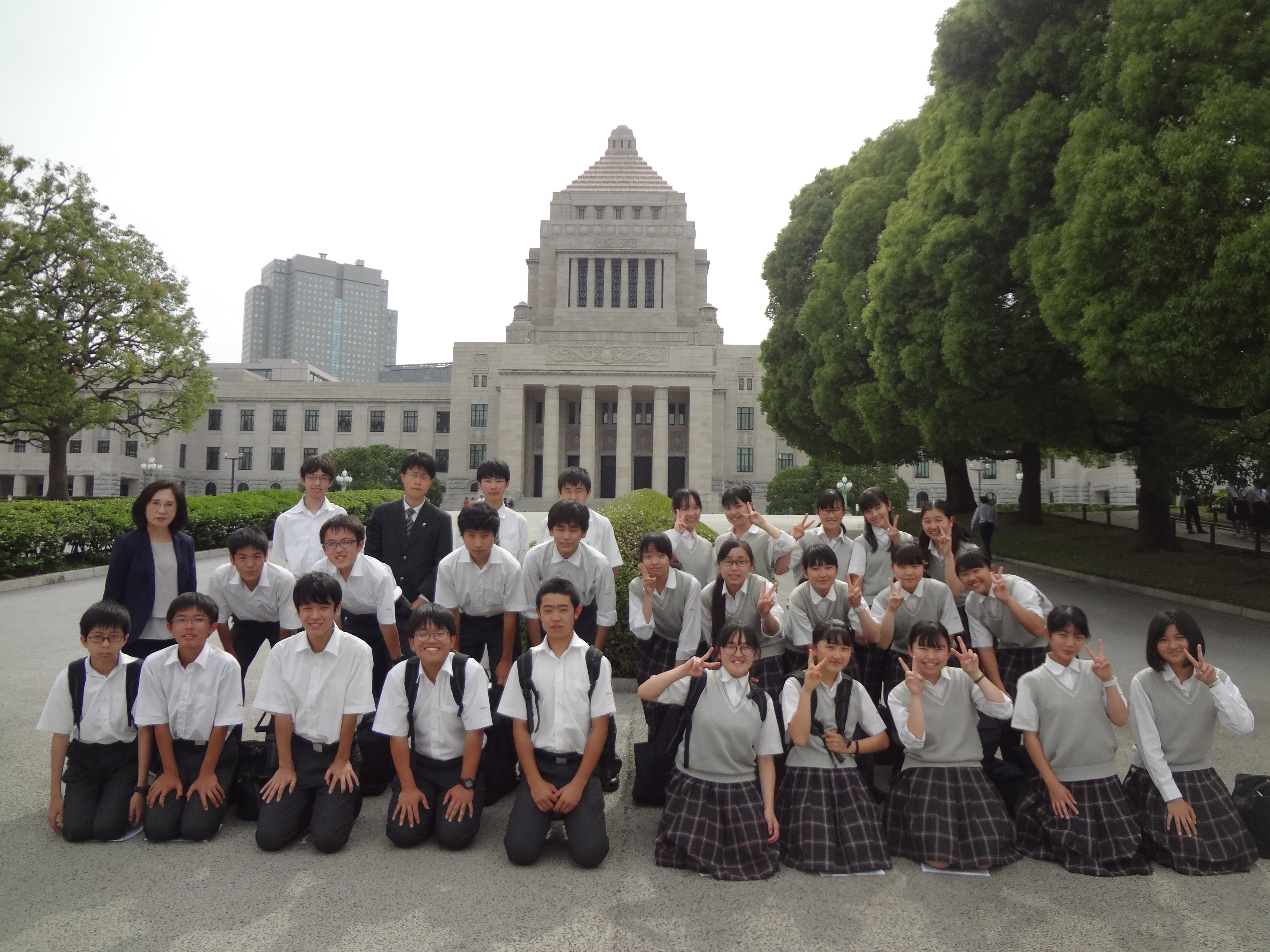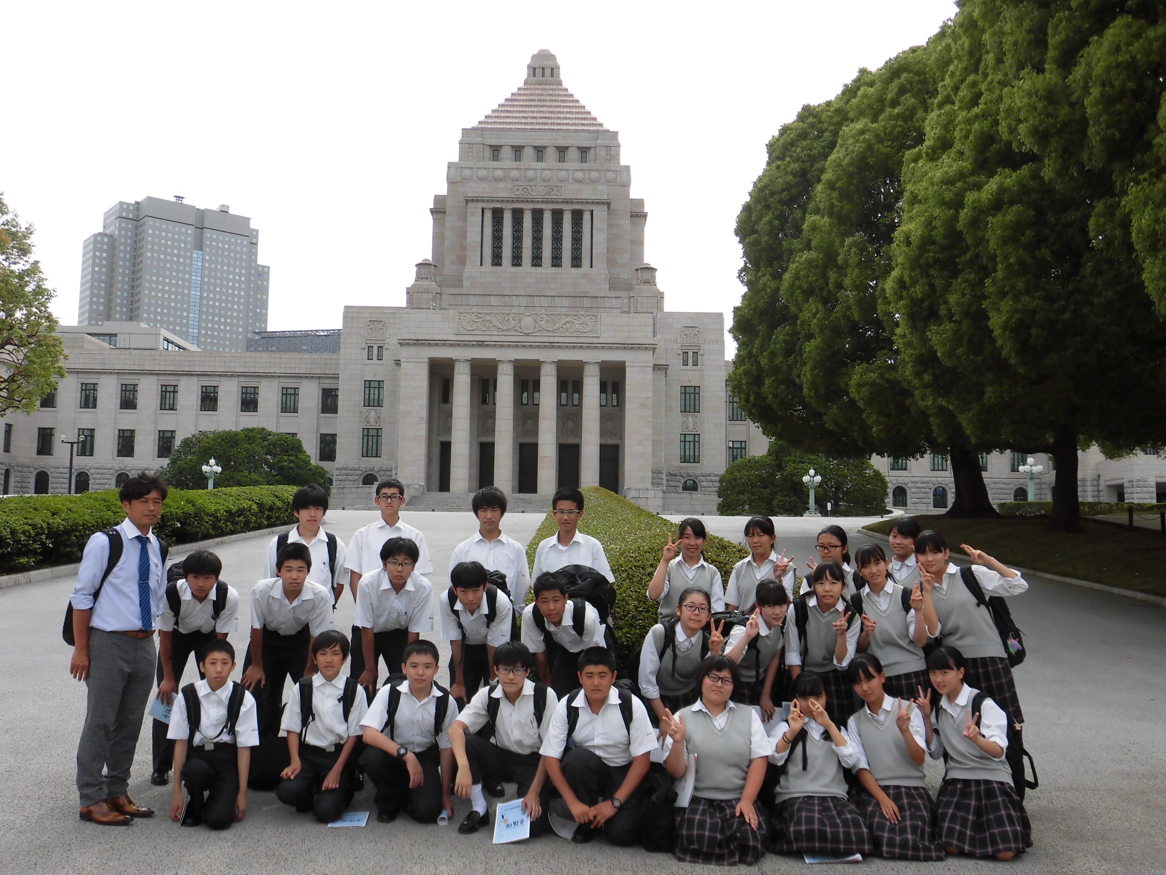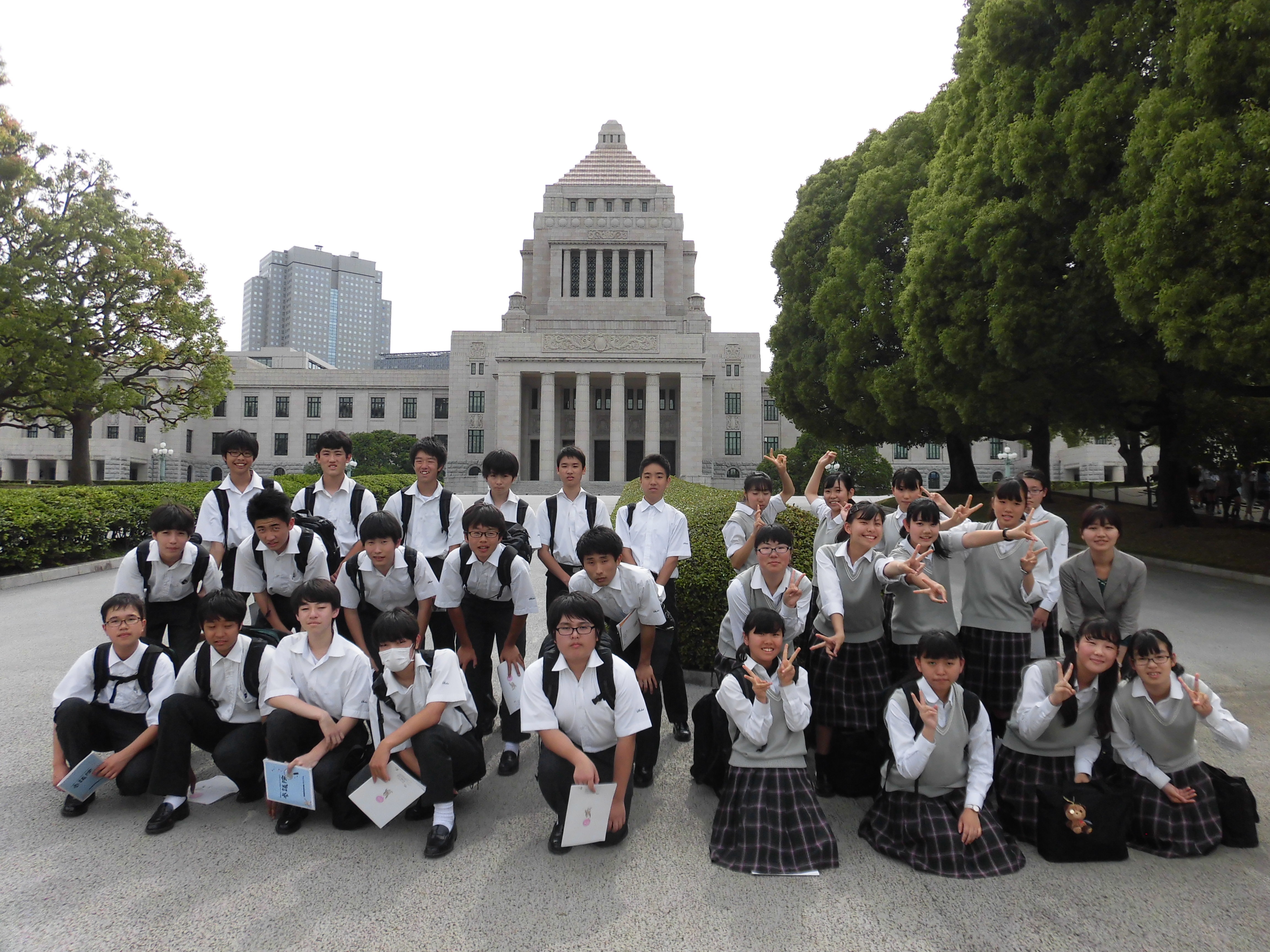 6月5日の校外学習で、中学3年生は霞ヶ関の東京地方裁判所、憲政記念館、参議院を訪問しました。東京地方裁判所では実際の裁判を傍聴しました。張り詰めた空気に緊張しながらも、興味深そうに傍聴していました。参議院では法律ができるまでの過程を学習し、模擬法案プログラムとして代表生徒数名が法案を審議するロールプレイングを行いました。その後、国会議事堂(参議院)の見学を行いました。今回学んだことをもとに、7月10日には校内で模擬裁判が行われます。