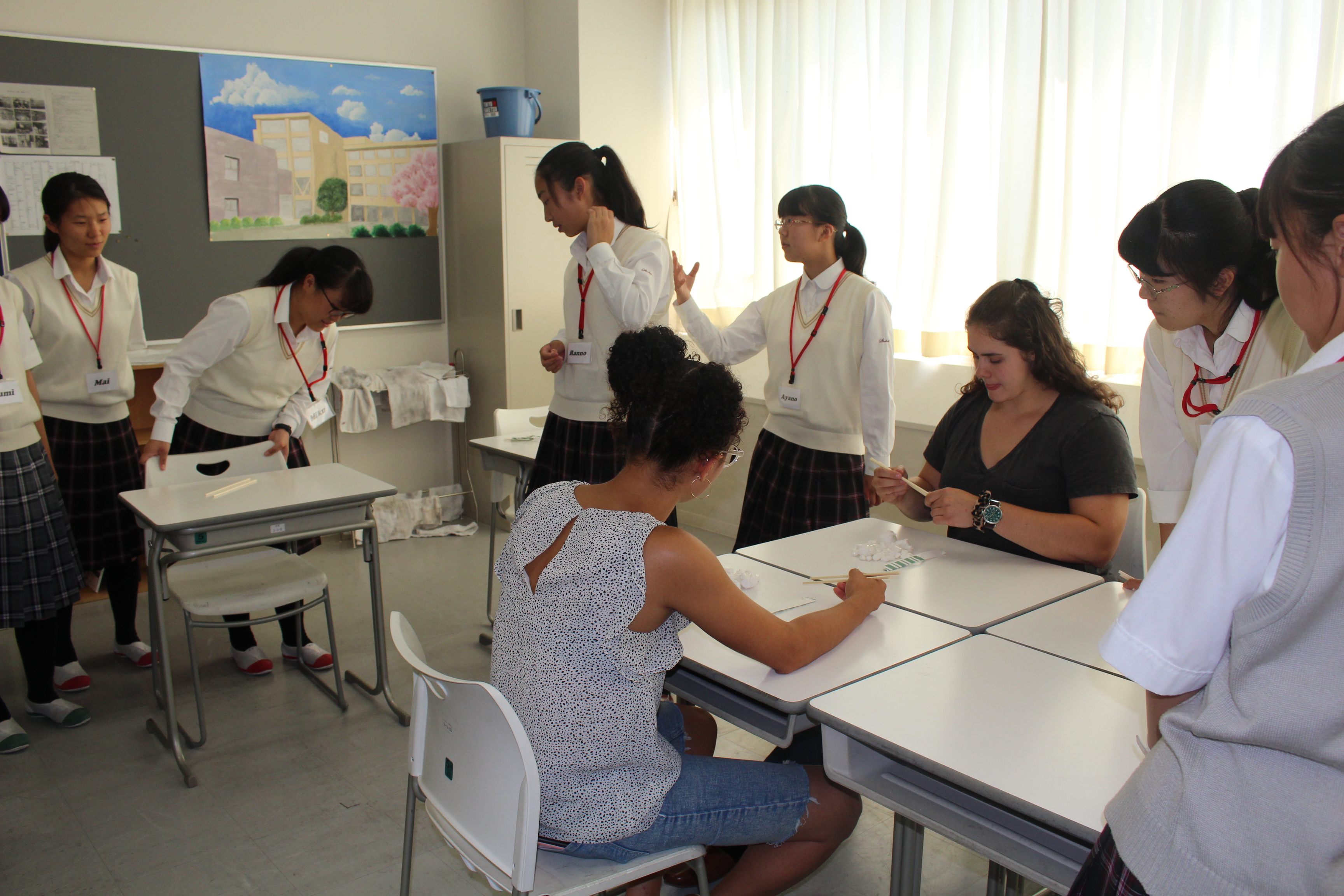本日はハーバードサマースクール2日目でした。1日目は少し緊張気味の生徒たちも本日は少しリラックスした様子でハーバードの学生たちとかかわっていました。ワークショップではストレスを軽減する方法や、美しさの定義とそれはどこから来るものなのか、また女性のリーダーシップなどについて皆で考え、議論し、発表を行いました。昨日よりも生徒たちは議論することにも慣れ、積極的な発言が見られました。また、ランチタイムのあとには、レクリエーションとして生徒たちが日本の文化についてハーバードの学生たちに教える活動を行いました。お箸の使い方やよさこいなど、一緒になって楽しんでいる様子でした。