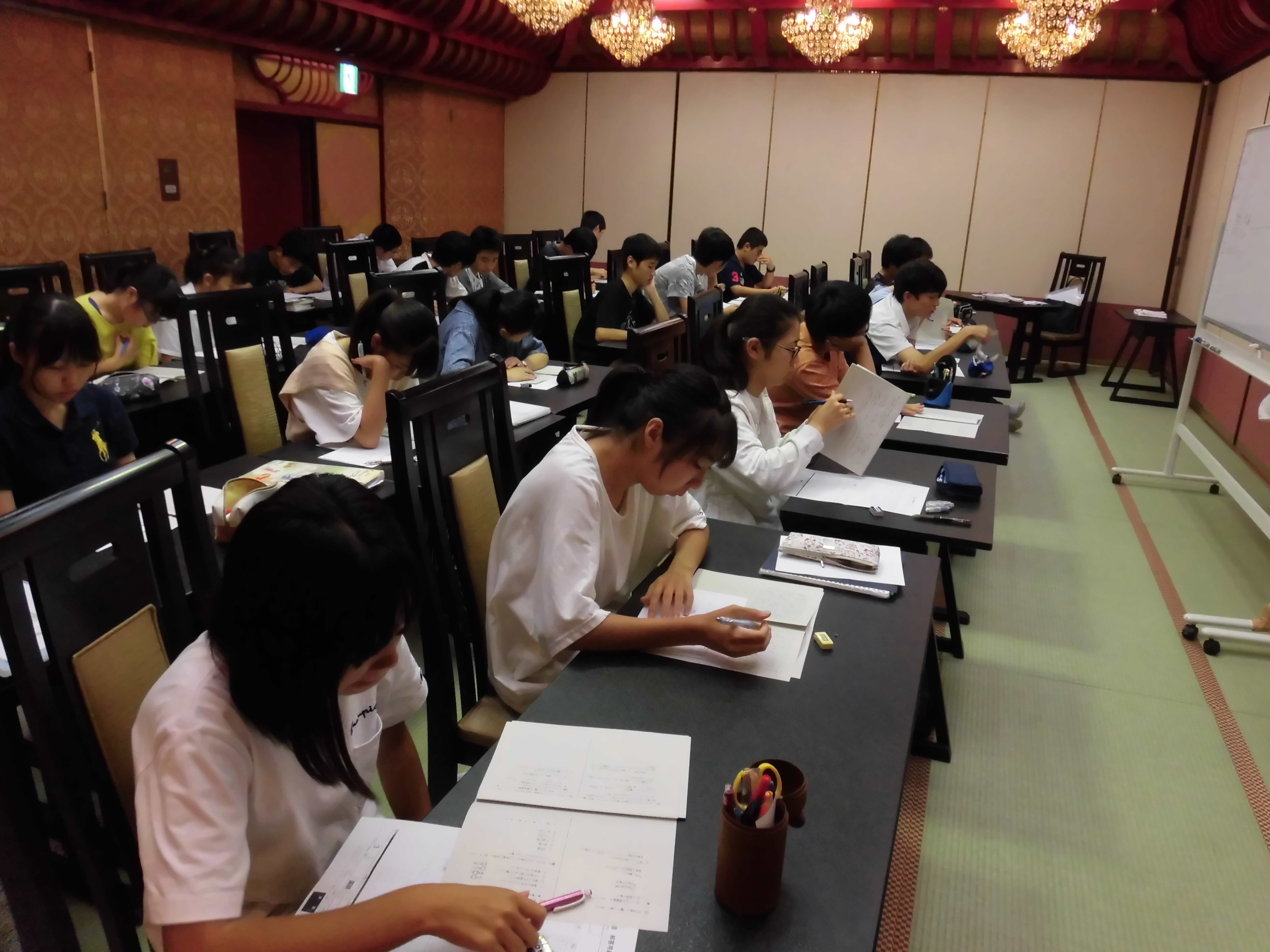 本日より、中学3年生の学習合宿が始まりました。合宿中は、英語・数学・国語の講習や自習の時間が設けられており、いつもとは異なる環境においても、初日から真剣に学習に取り組む様子が見られました。