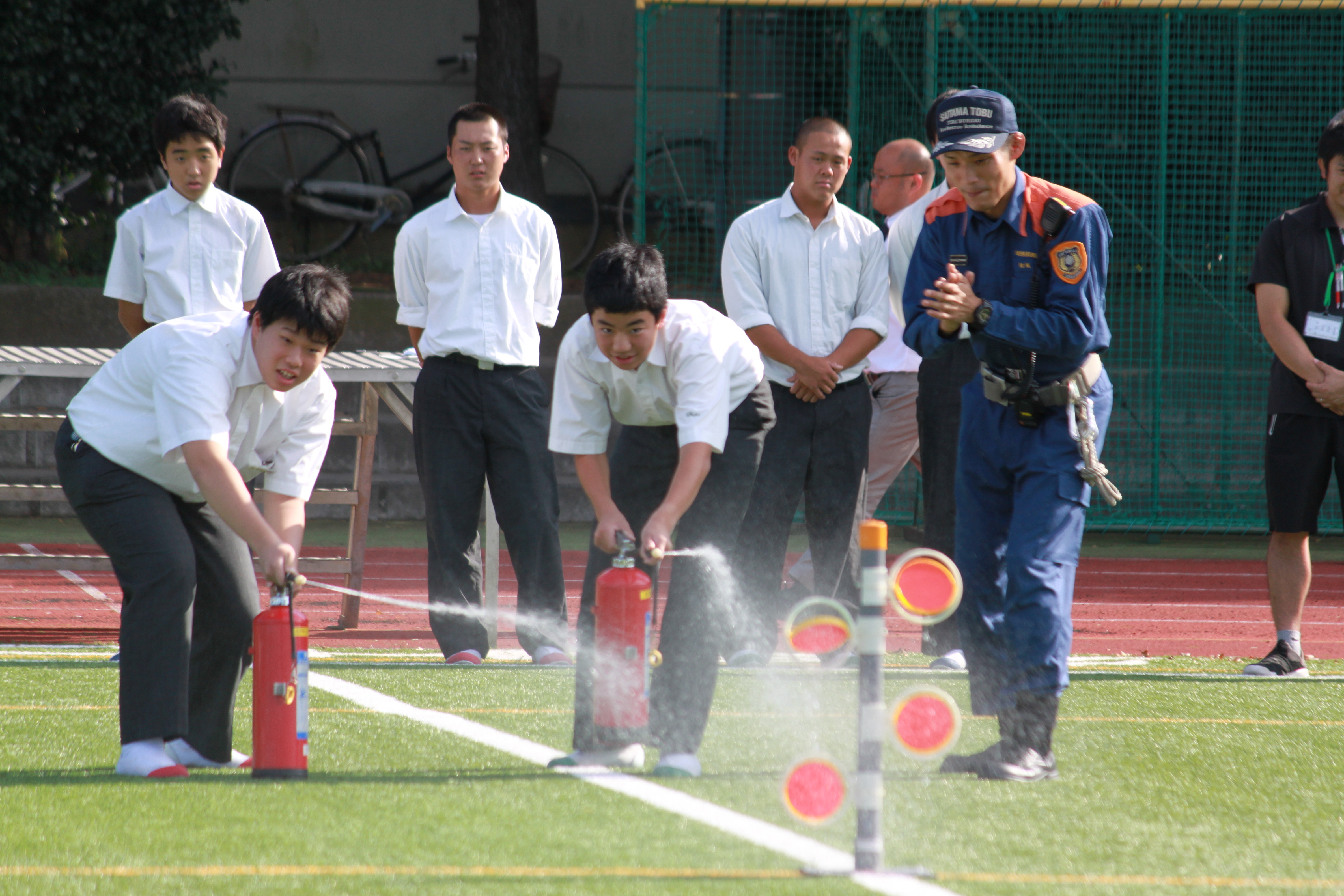 本日6限目、杉戸消防署のご協力のもと避難訓練を行いました。生徒たちは静かに迅速に避難していました。消防署の方から消火器の使い方や避難時の注意事項などの説明がありました。そして、生徒代表6名、教員3名による消火器を使用した消火実演もしました。本日学んだことを、万が一の時に生かせるように心掛けます。