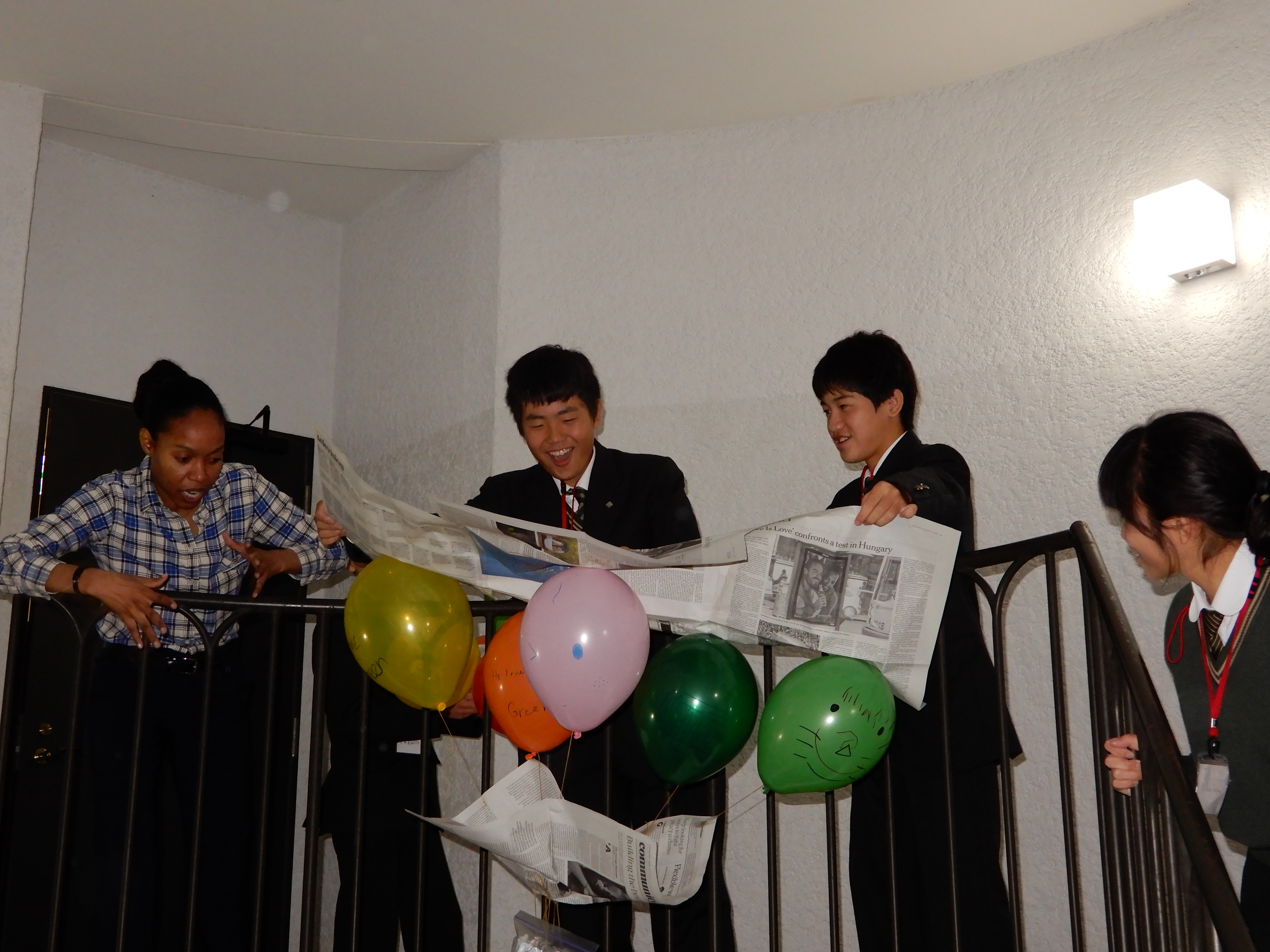 研修2日目の今日は、あいにくの濃霧と雨の中、様々なレッスンが行われました。サイエンスチャレンジでは、1000ポンドの予算で生卵を三階の高さから落としても割れない仕掛けを先生とやりとりしながら作りました。選択レッスンではスコーンやキャンドル、エコバック、カードなどを作るレッスンやブリティッシュスポーツのレッスンがありました。初日に現地の先生方やスタッフより先に、引率教員に助けを求めようとしていた生徒もいましたが、今日は誰も引率教員をあてにしていなく、少し頼もしさを感じました。しっかり食べ、よく寝て明日の最終日に備えて欲しいと思います。