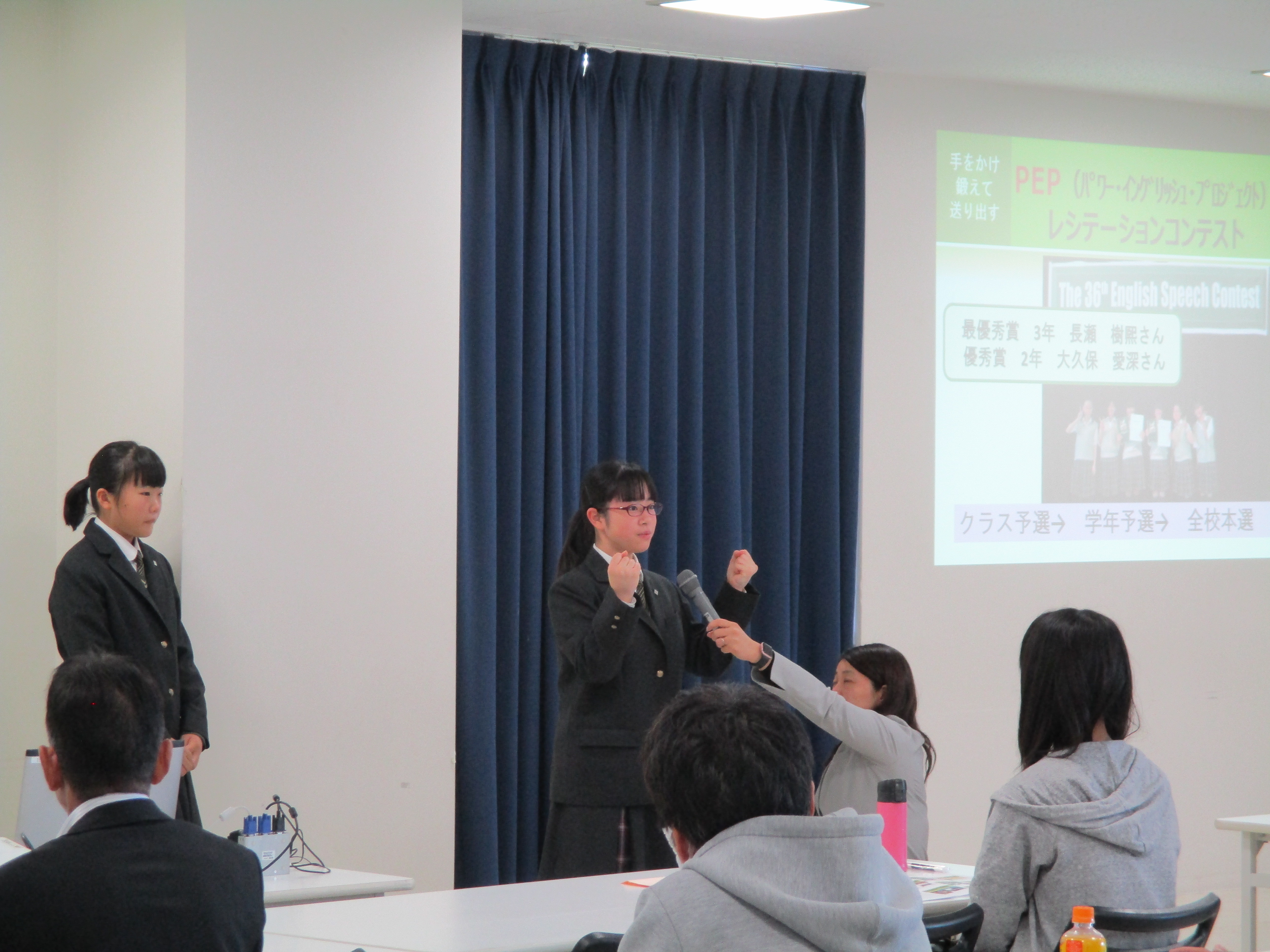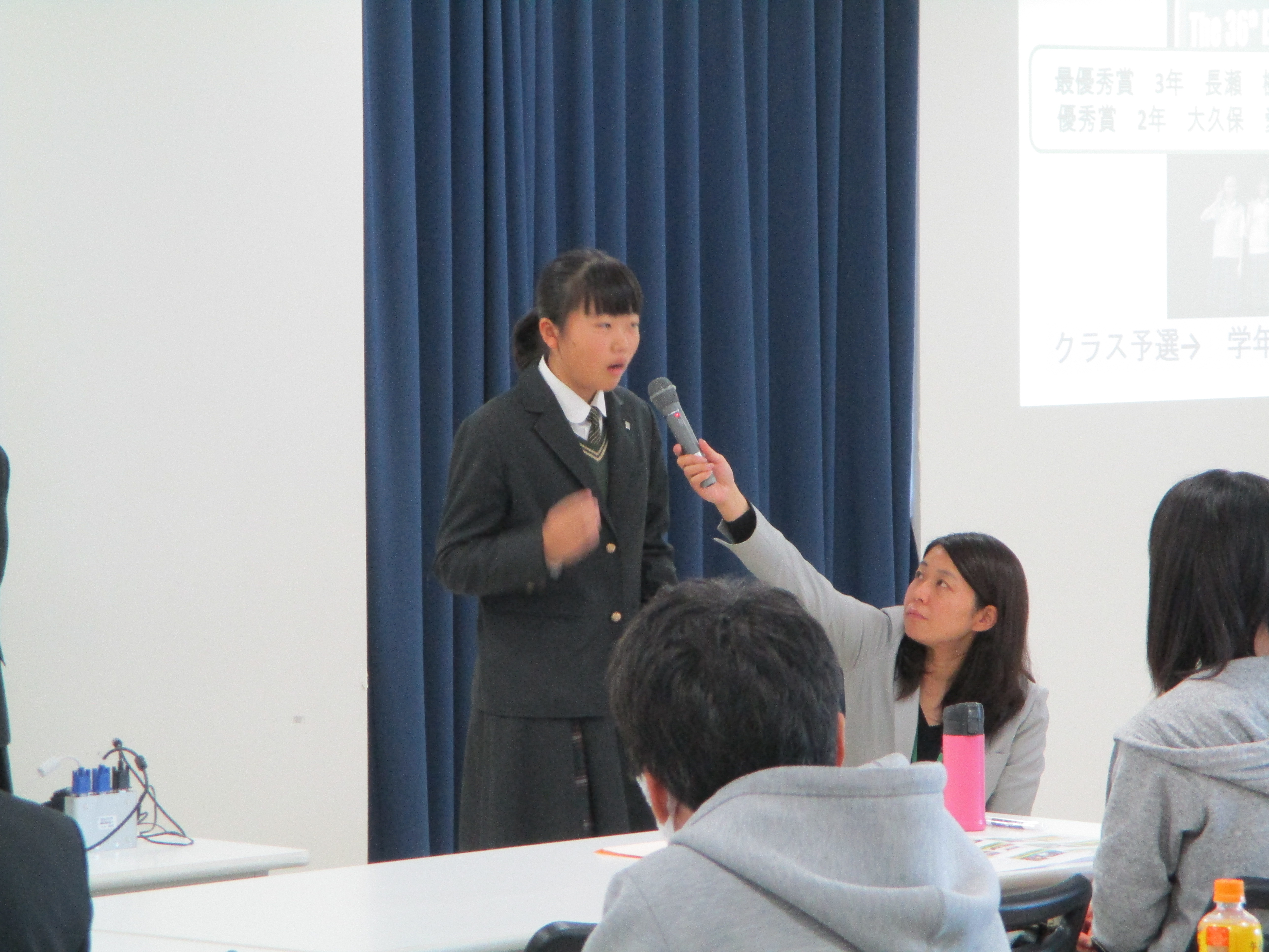 本日は午前中に、第8回学校説明会と第3回腕だめしテストを実施いたしました。たくさんの方々にご来校いただきありがとうございました。学校説明会では、城川校長による取組みの説明のほか、パワー・イングリッシュ・プロジェクト(英語力強化のための独自のプログラム)の説明をさせていただきました。また、再来校の方には、IB教育、国語教育、理科教育についてのさらに具体的な説明をさせていただきました。初来校の方には本校の概要と特徴がよくわかる工夫を、再来校の方にはさらに具体的な内容と授業の様子がよくわかる工夫をしてお話しさせていただいています。また、本校のレシテーションコンテストで優秀賞と最優秀賞を受賞した生徒のレシテーション(暗唱)をご披露いたしました。さらに、6期生(現高2)の今年度交換留学生2名に英語でインタビューをしました。次回の学校説明会は11月30日(土曜日)に行い、この日は授業見学も可能です。ご来校をお待ちしています。