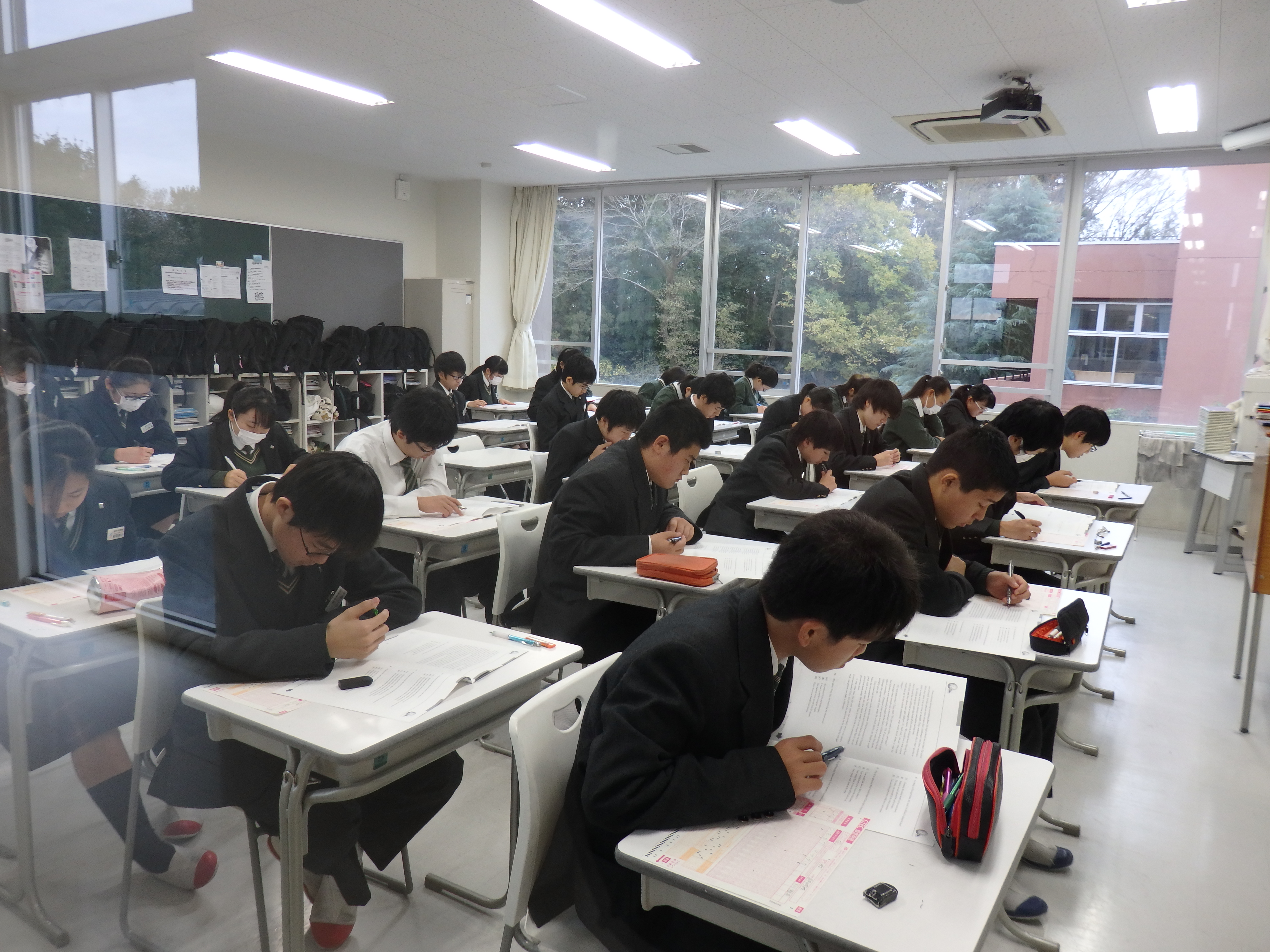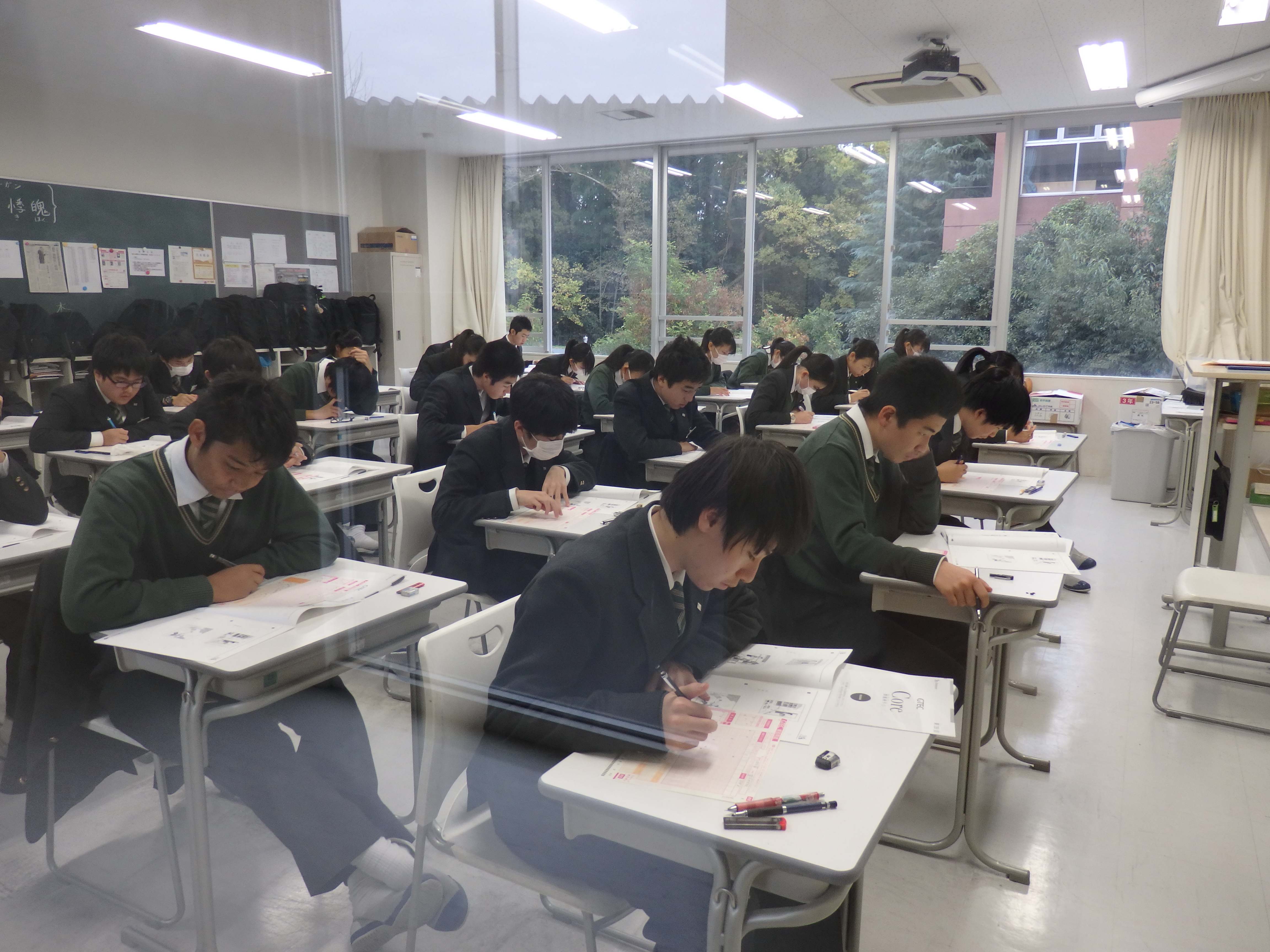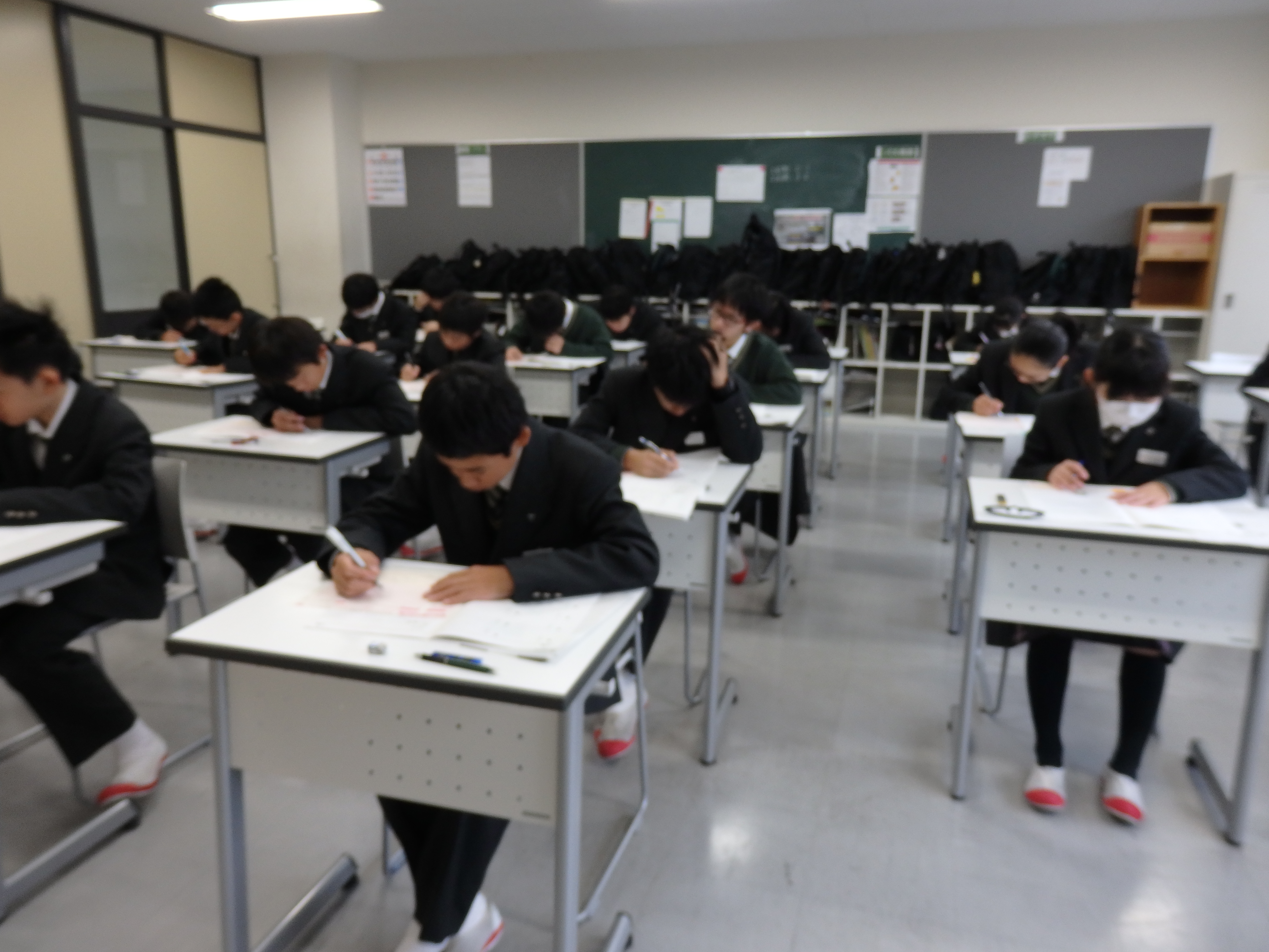 先日タブレットを使ったGTECのスピーキングテストを行ないましたが、本日はリーディング、リスニング、ライティングのテストに挑戦しました。GTECは4技能の今の自分の力を測るテストです。高校生のGTECのスコアは大学入試の一部に使う大学もあります。中学生は自分の力を知り、その結果を普段の英語学習に活かしていきます。1年生は初めての受験でしたが、自分の今の力で真剣に取り組みました。結果が楽しみですね。