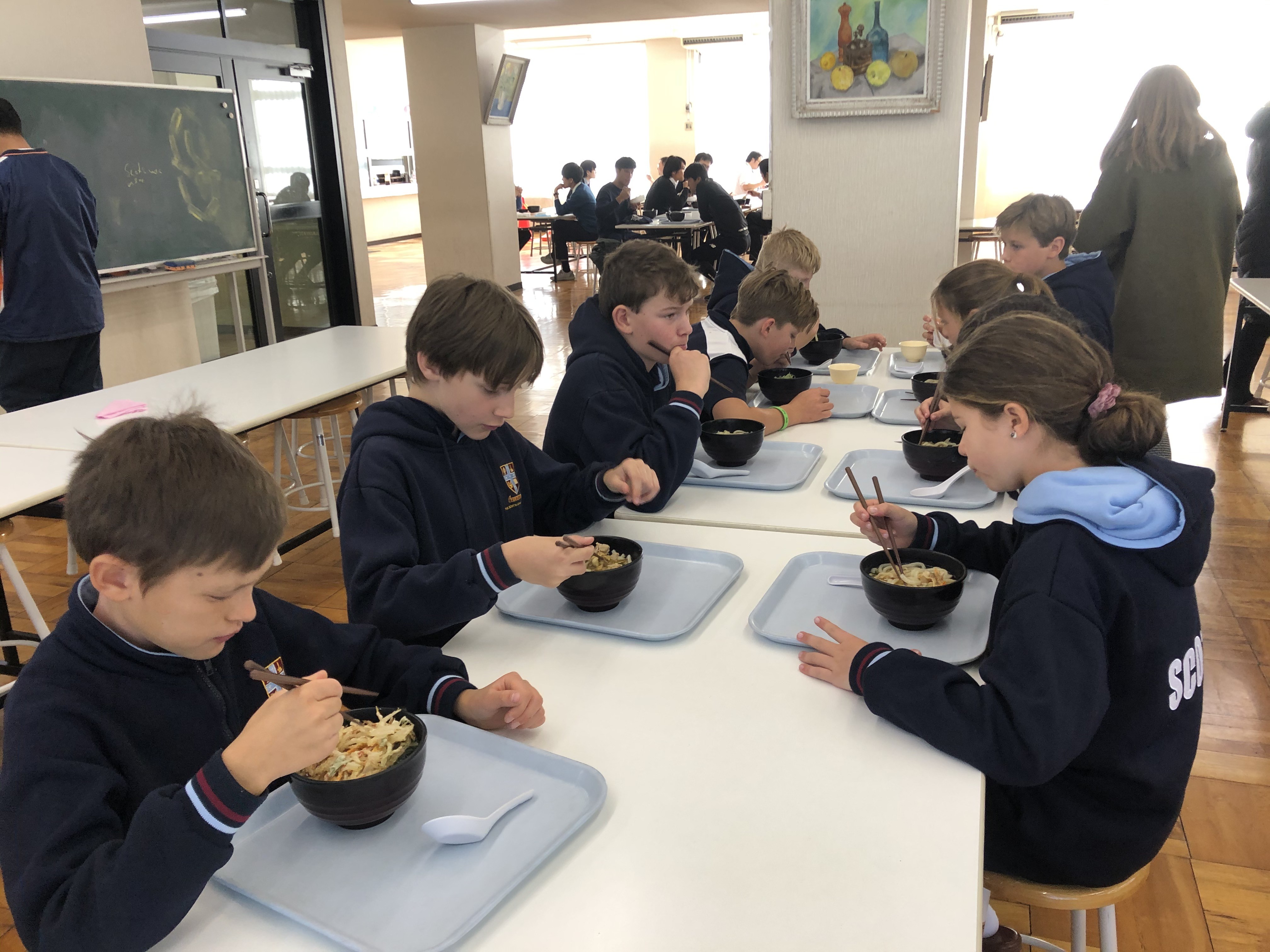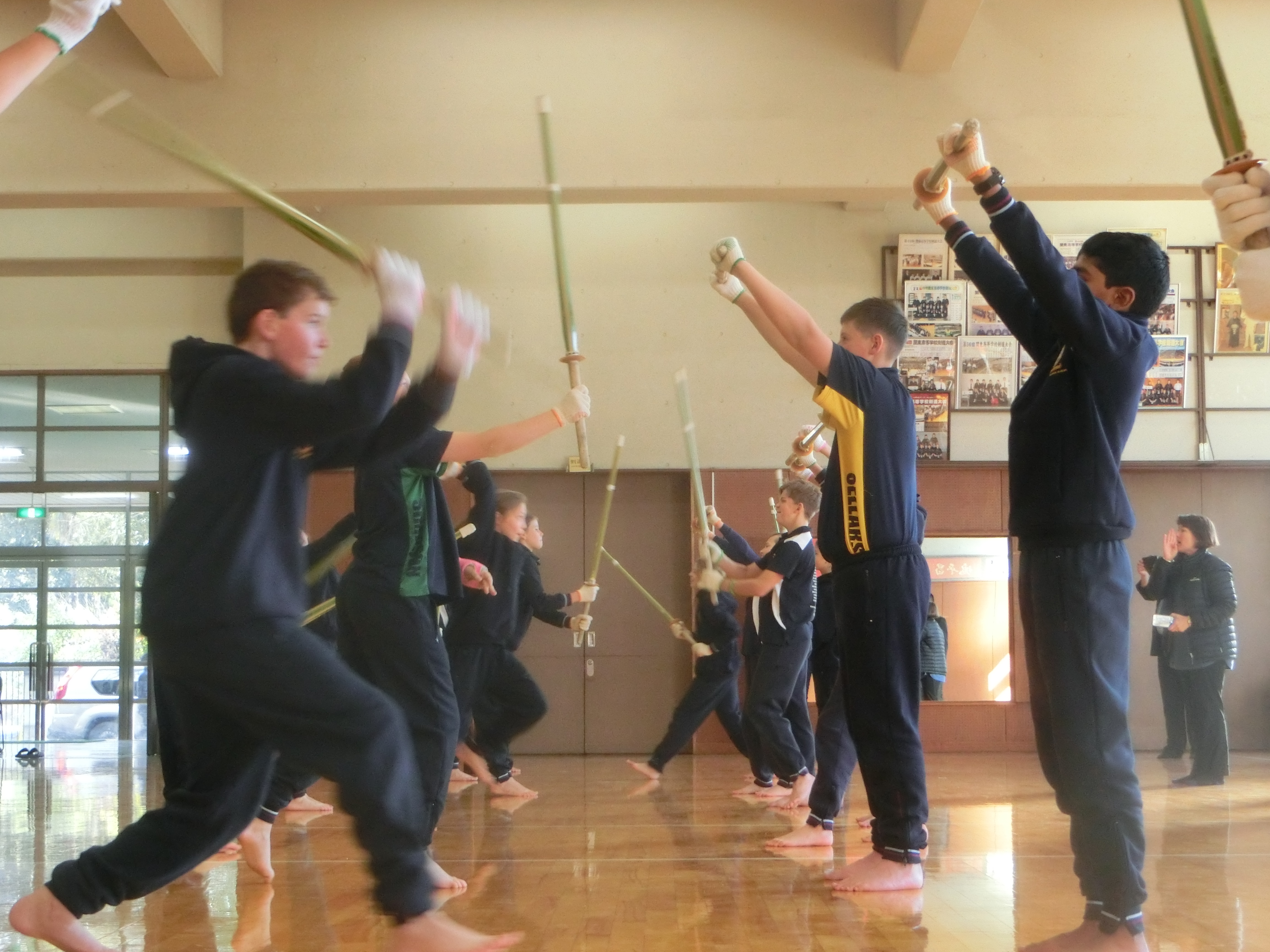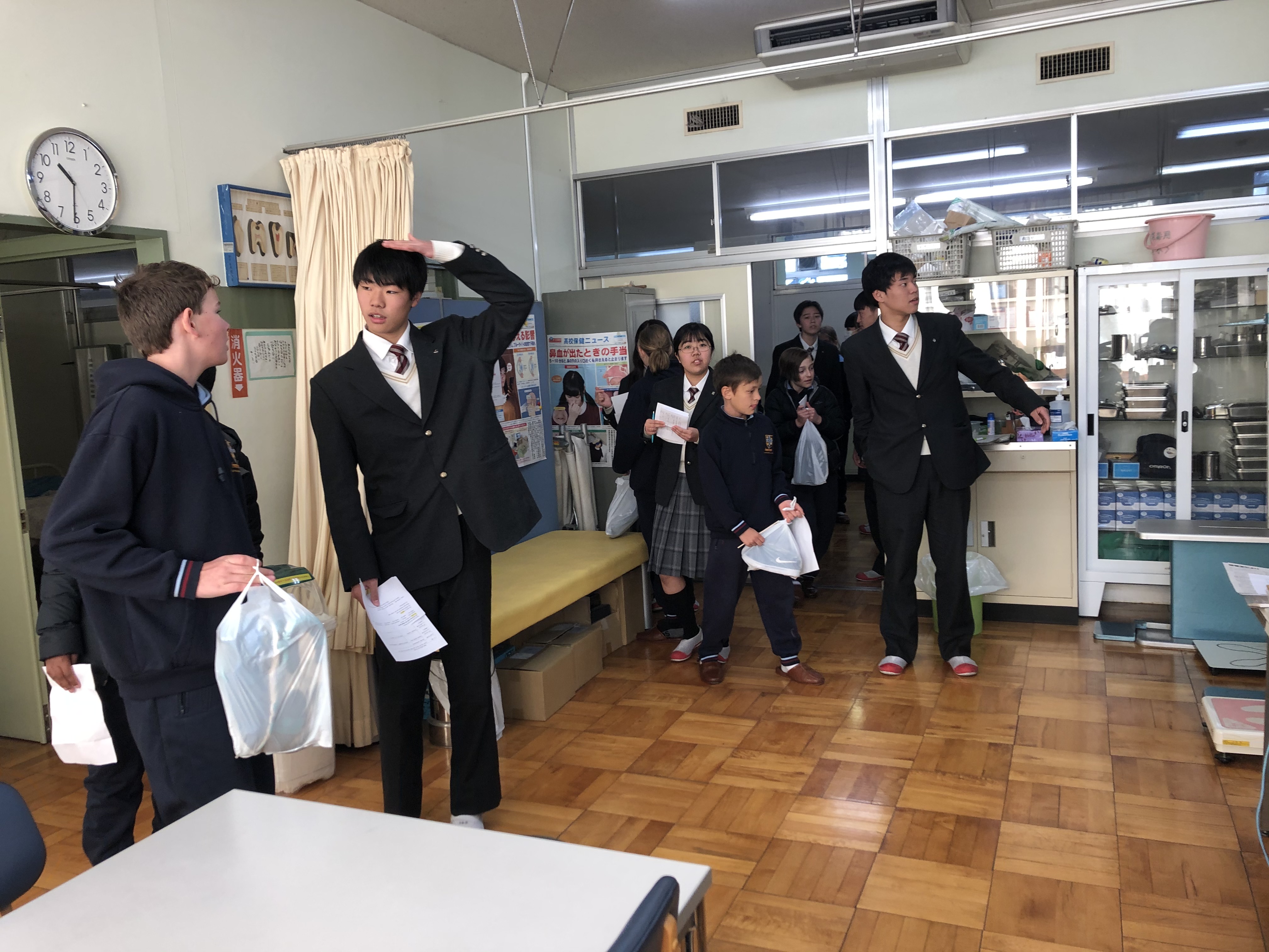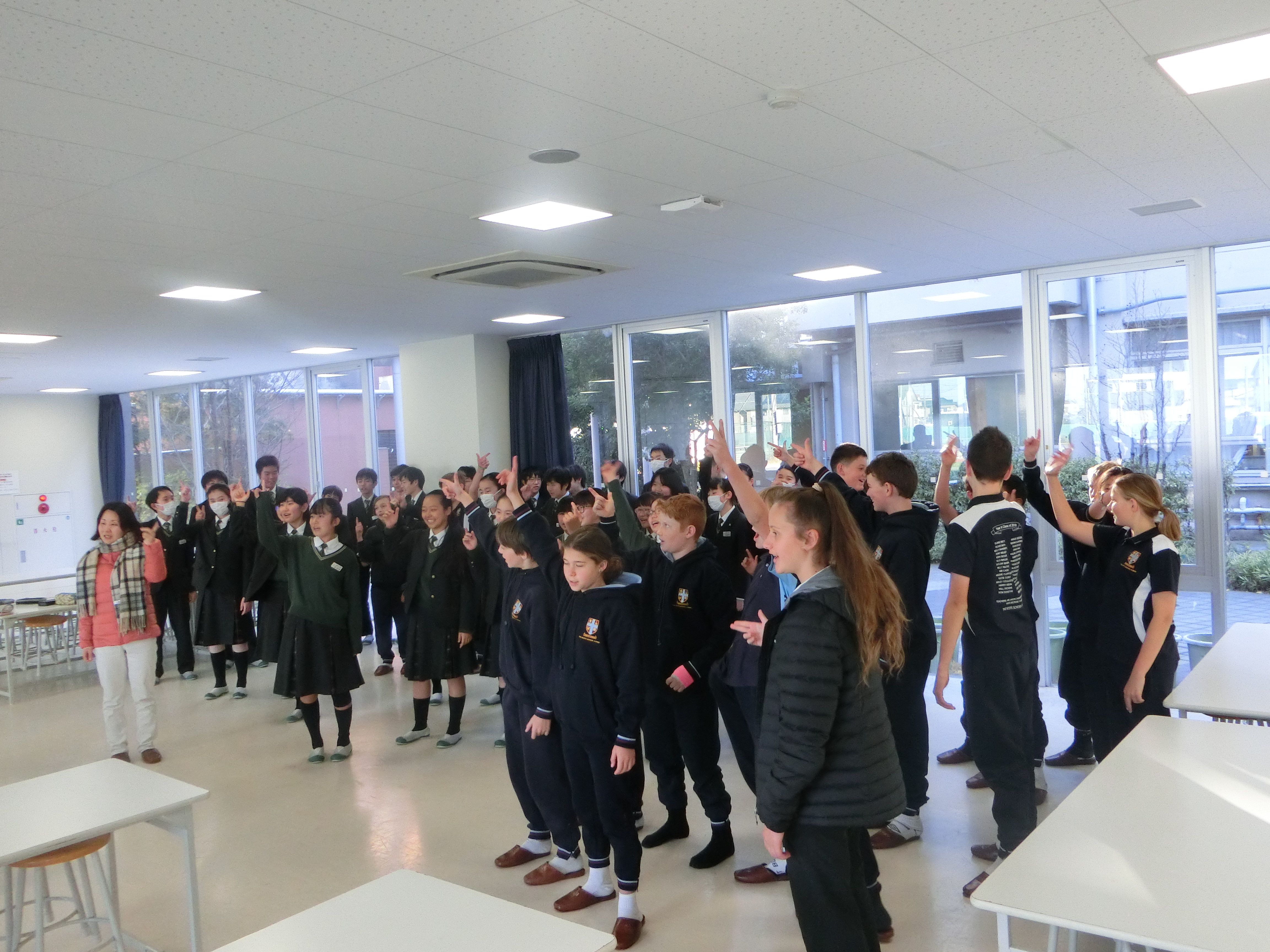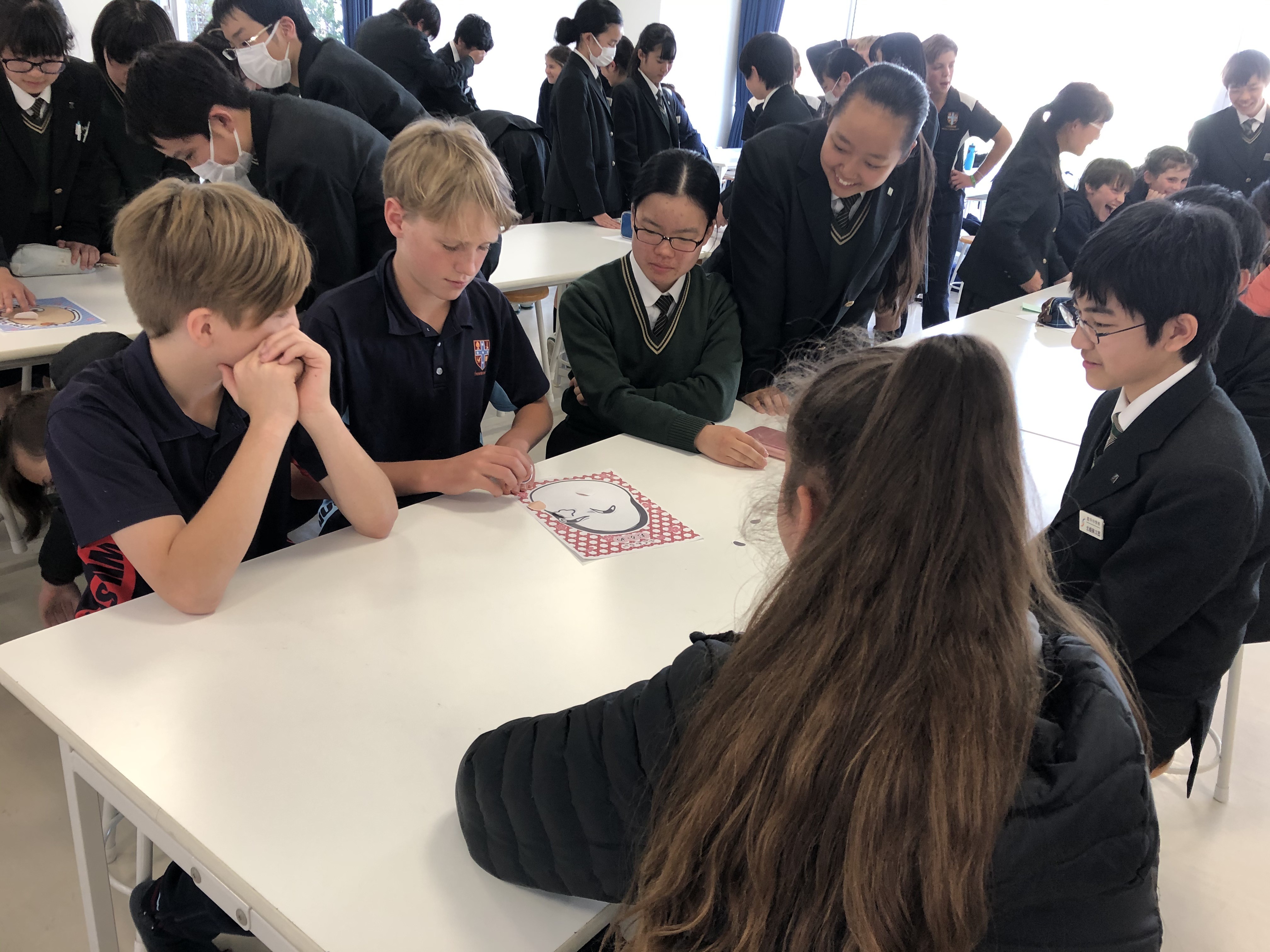 本校の姉妹校のスコッツスクールの21名の生徒が本日来校しました。例年は中高生が来校し10日間ほど、昌平生のご家庭にホームステイをしますが、今年度は小学5,6年生が1日昌平生と一緒にいろいろな授業を体験しました。午前中は高校生の体育の授業でのサッカーに混ぜてもらったり、スコッツからの交換留学生エマさんのいる1年15組とスクールガイドツアーをしたり、中1によさこいを教えてもらったりして交流しました。午後は剣道レッスンと中2とコミュニケーションをとってゲームをする授業を楽しみました。昌平生は中学生も高校生も積極的にコミュニケーションをとったり、手を振ってくれたりと、スコッツの小学生にとってはとても楽しく過ごすことができた一日だったようです。