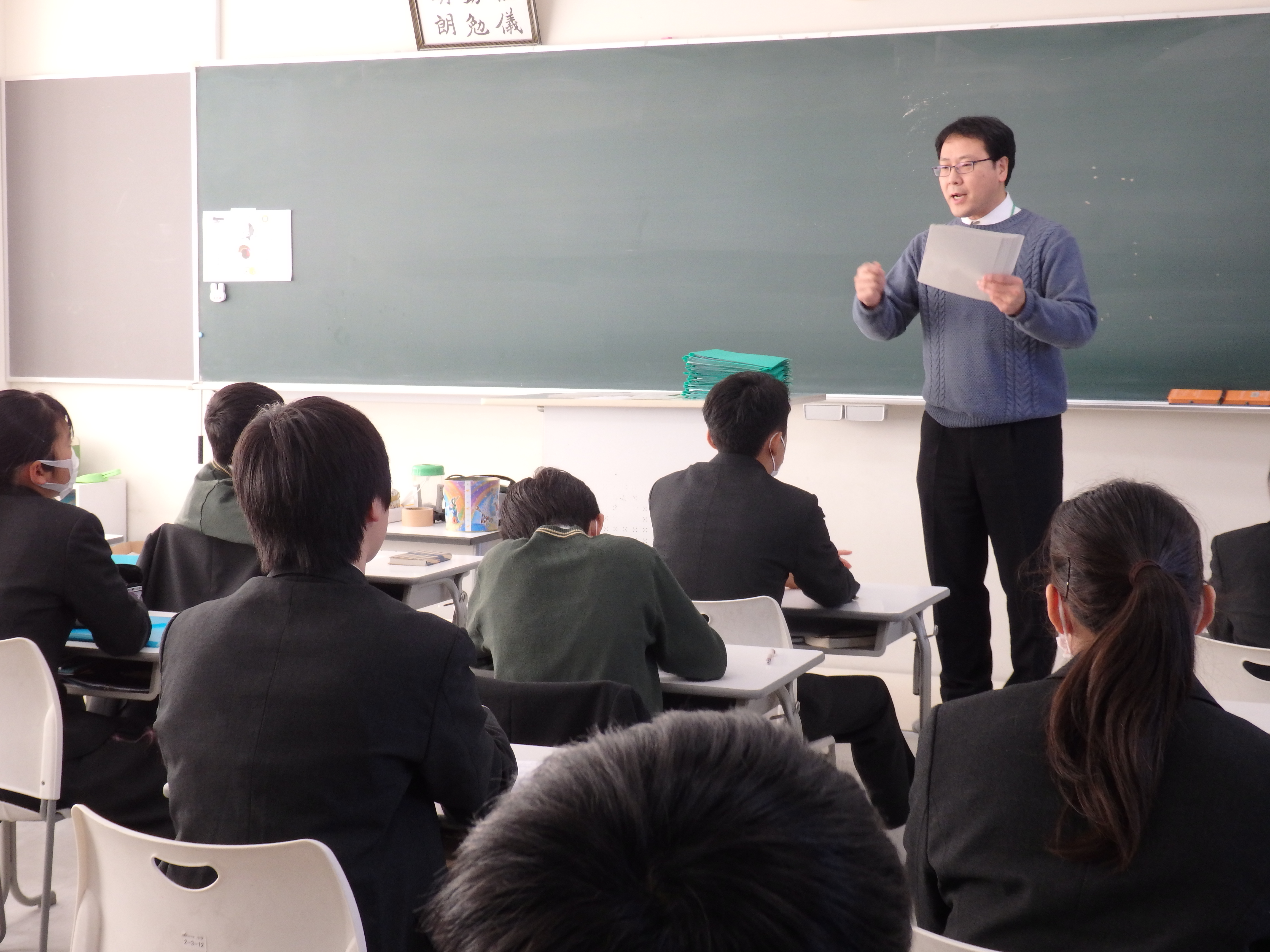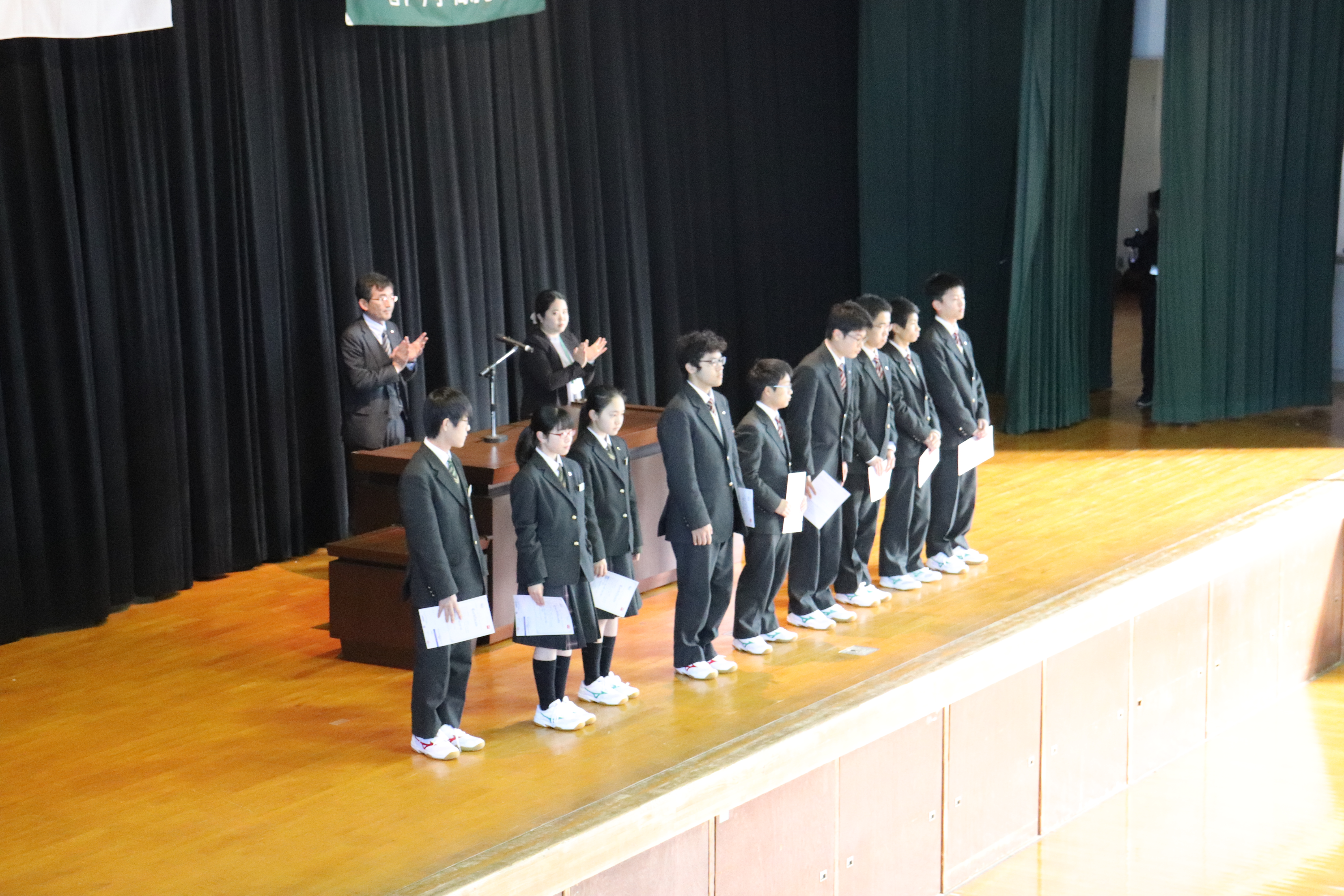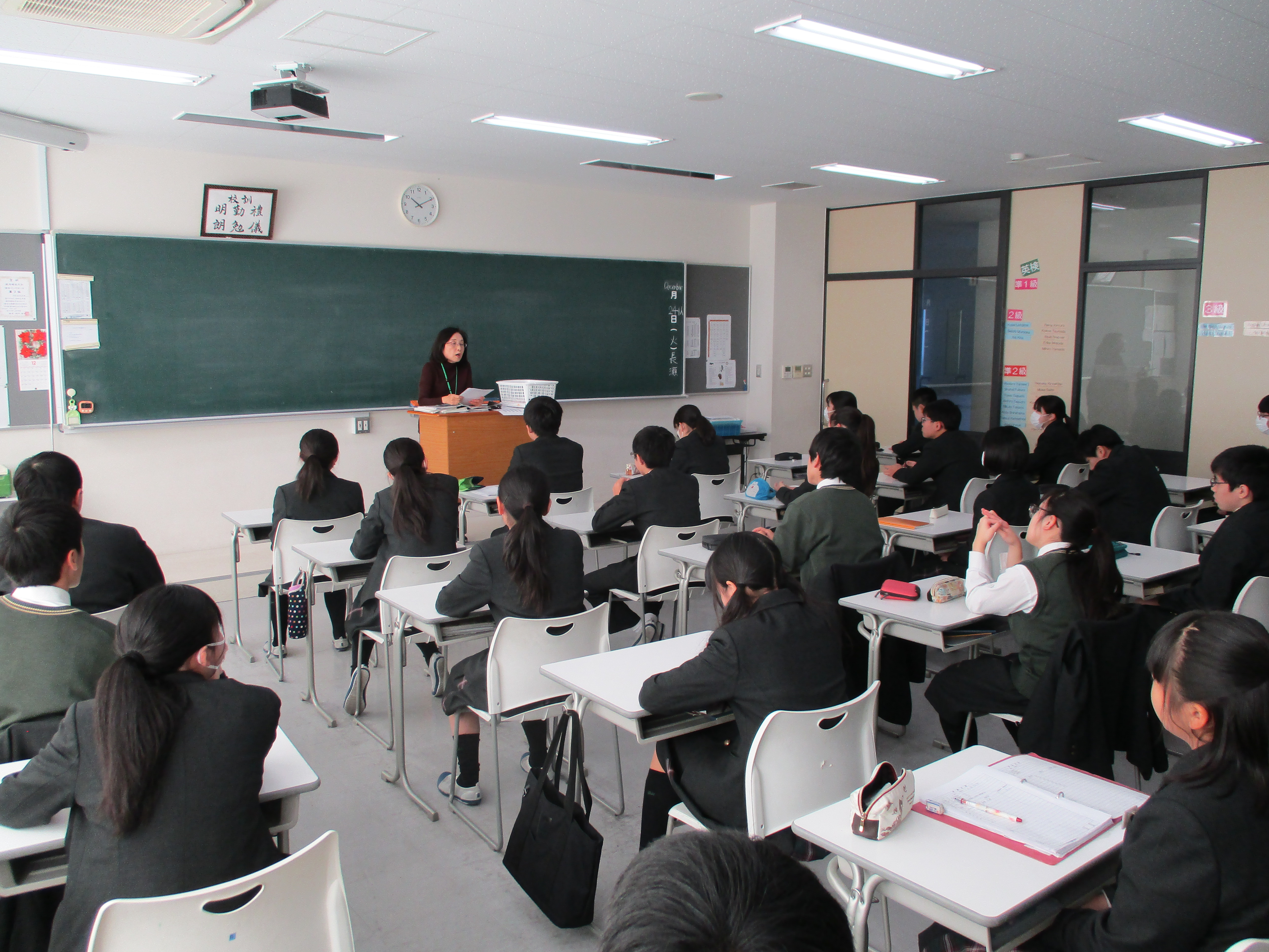 本日は2学期の終業式が行われました。式に先立ち、英語検定の表彰も行われ、中学校からは準1級を取得した生徒3名(1年生1名、2年生2名)が代表として校長先生から合格証を受け取りました。その後各クラスではホームルームで通知表を担任の先生から受け取ったり、学級通信や学年通信を読みながらお話をいただいたりして2学期を締めくくりました。2019年、様々な活動に全力で頑張った中学生全員に拍手ですね。明日から3日間の冬期講習はありますが、課題を計画的に取り組み、有意義な冬休みを過ごしてほしいと思います。