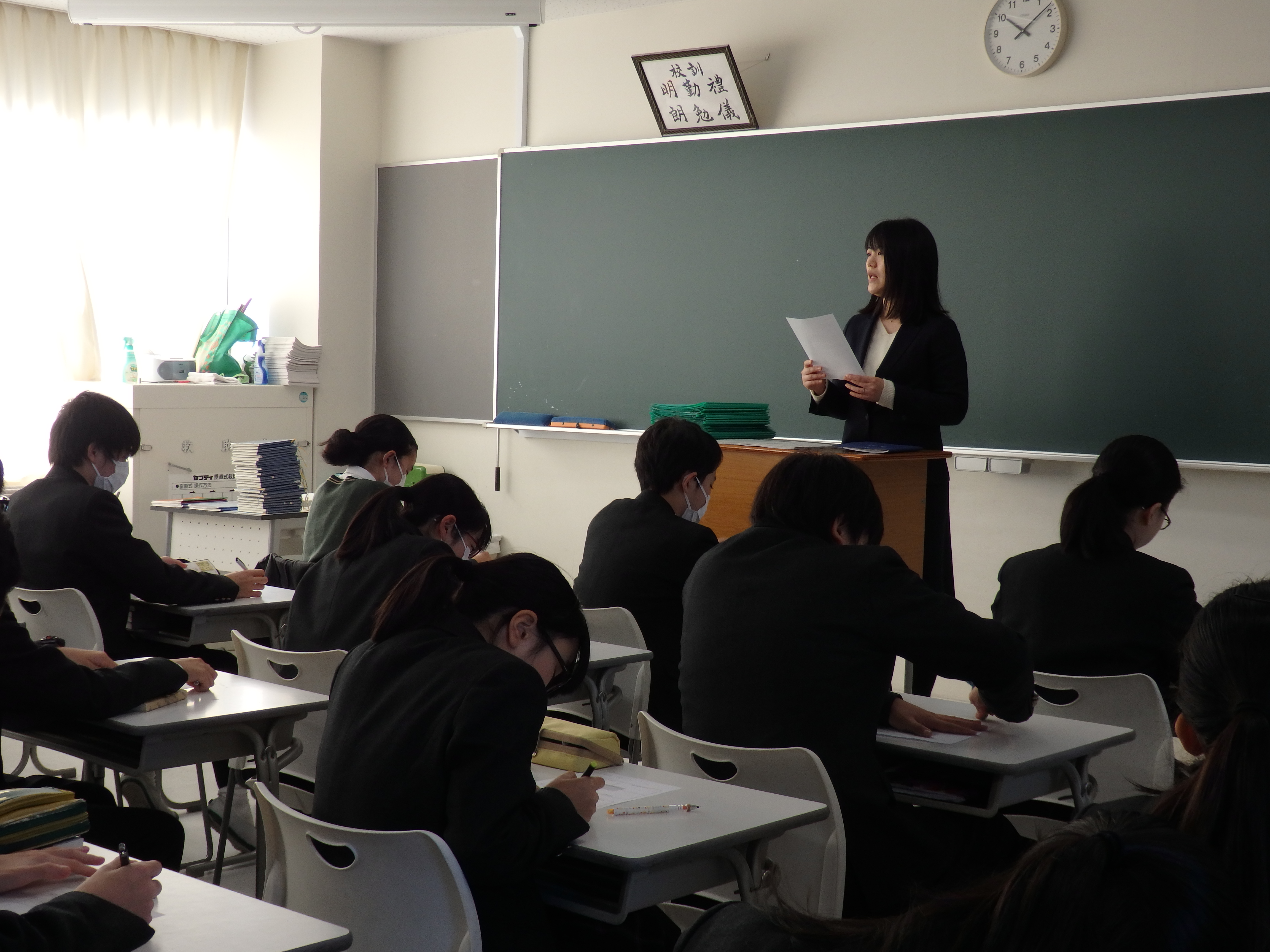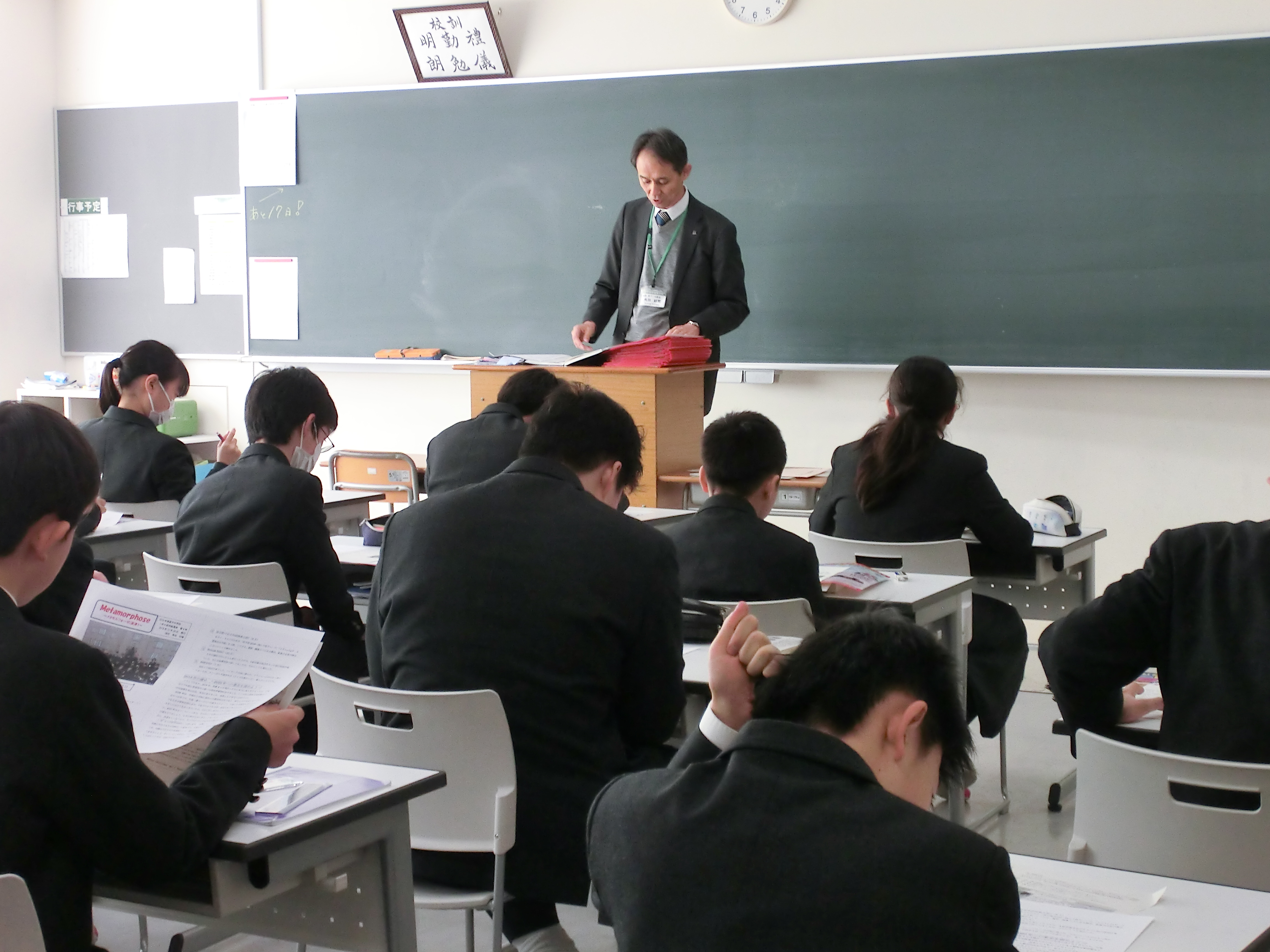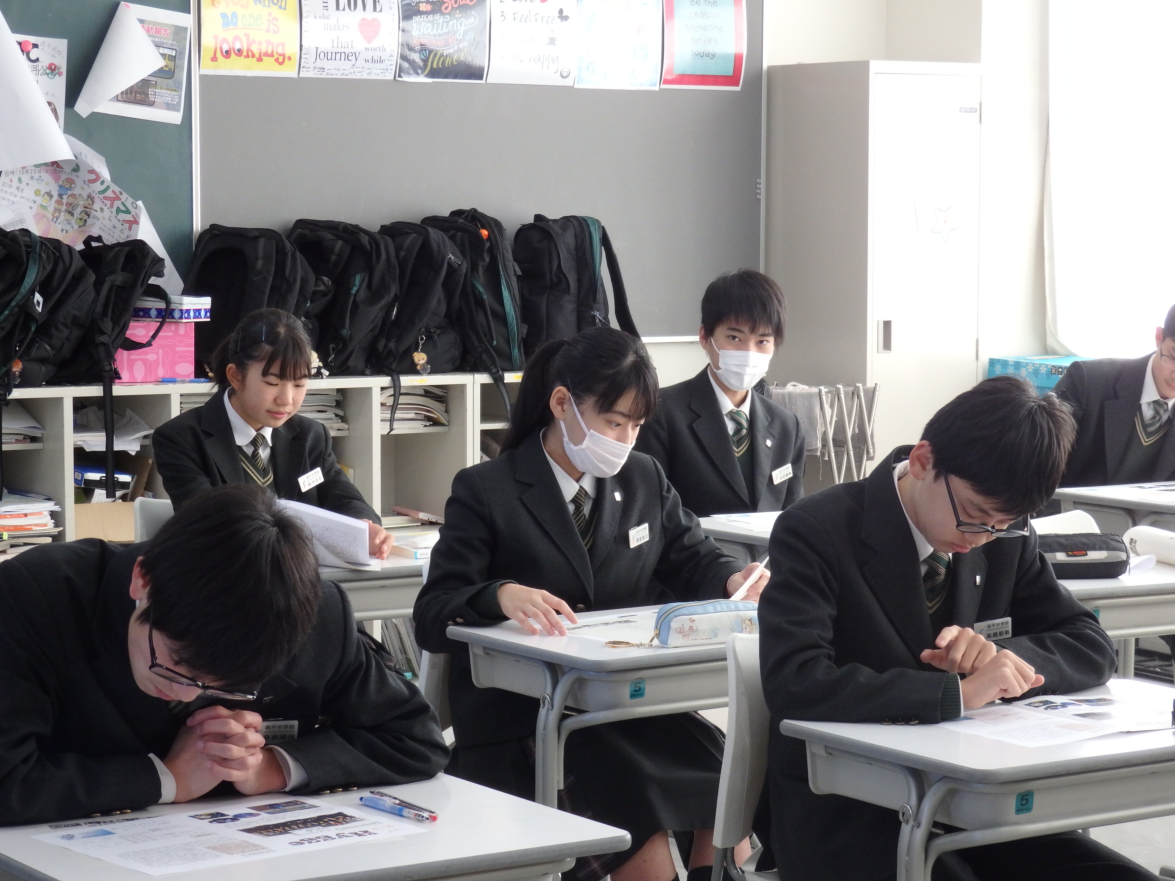 本日は2学期の終業式が行われました。式に先立ち、英語検定の表彰も行われ、中学校からは準1級を取得した生徒3名(1年生1名、2年生2名)が代表として校長先生から合格証を受け取りました。その後各クラスではホームルームで通知表を担任の先生から受け取ったり、学級通信や学年通信を読みながらお話をいただいたりして2学期を締めくくりました。2019年、様々な活動に全力で頑張った中学生全員に拍手ですね。明日から3日間の冬期講習はありますが、課題を計画的に取り組み、有意義な冬休みを過ごしてほしいと思います。