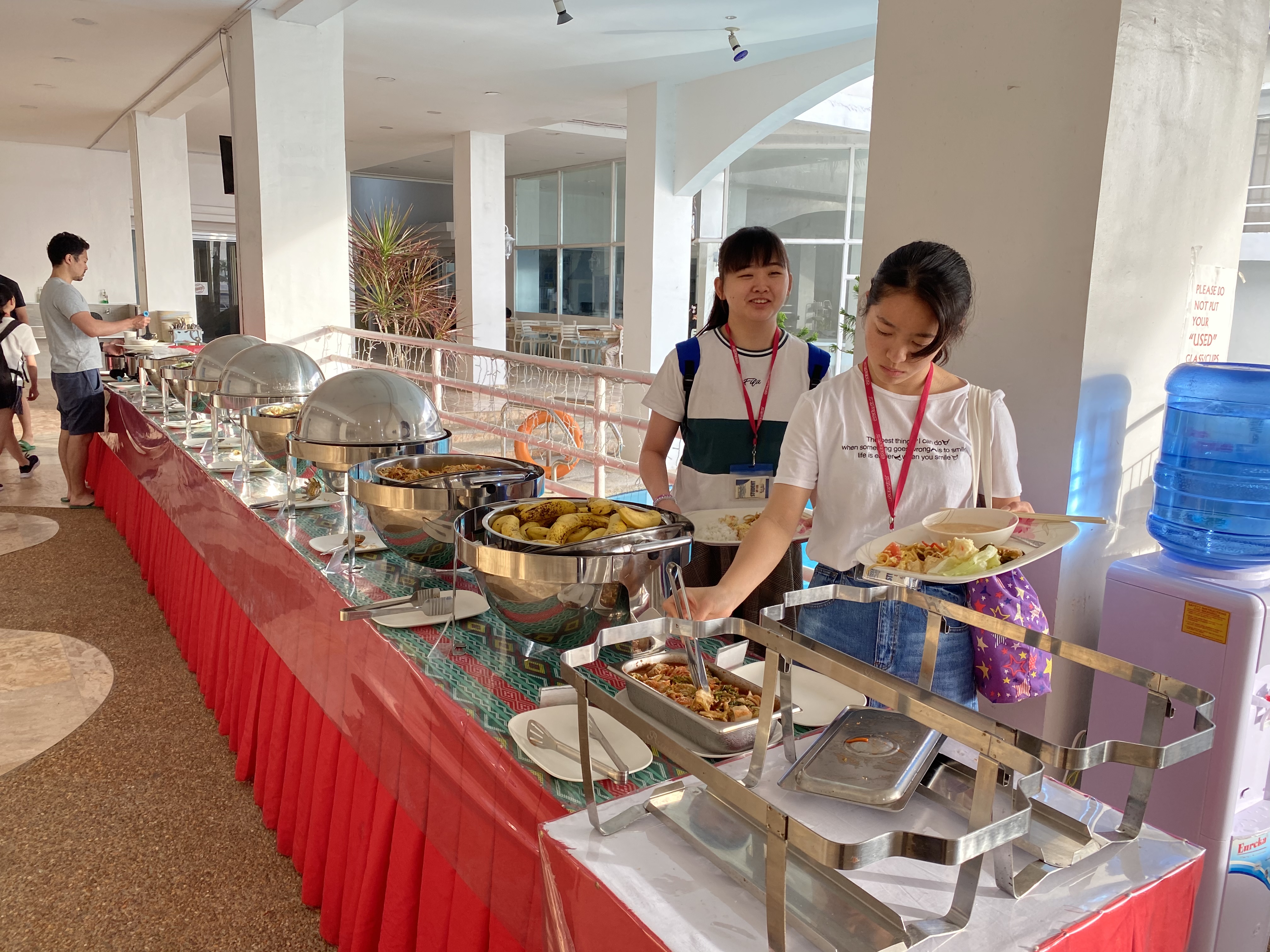 本日も朝から8時間のレッスンが行われました。生徒達は環境にも慣れてきた様子で、昨日より会話や笑顔が増えてきました。ここでは3食セルフスタイルで食事をとります。フィリピンの家庭料理をはじめ、韓国料理や中華料理も多く、異文化を感じることができます。英語を学ぶことは勿論ですが、食事や気候から世界を感じ、実りある研修にして欲しいと思います。